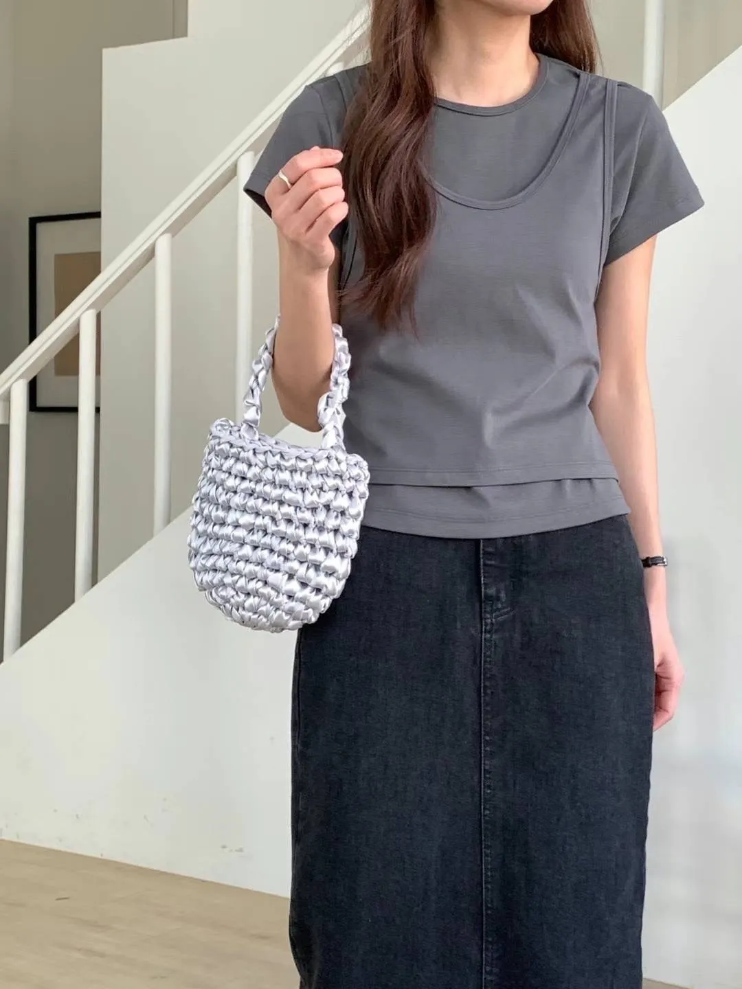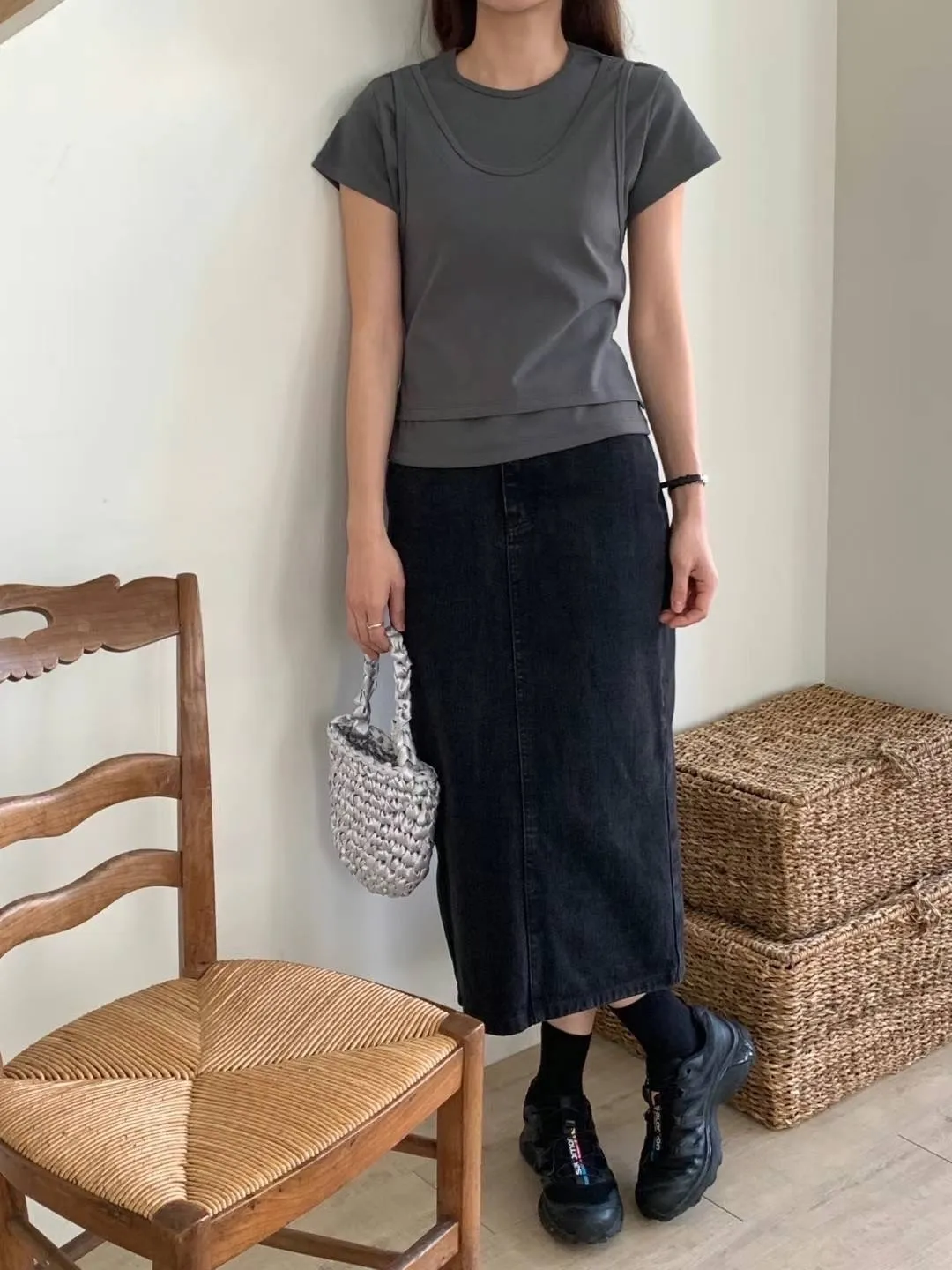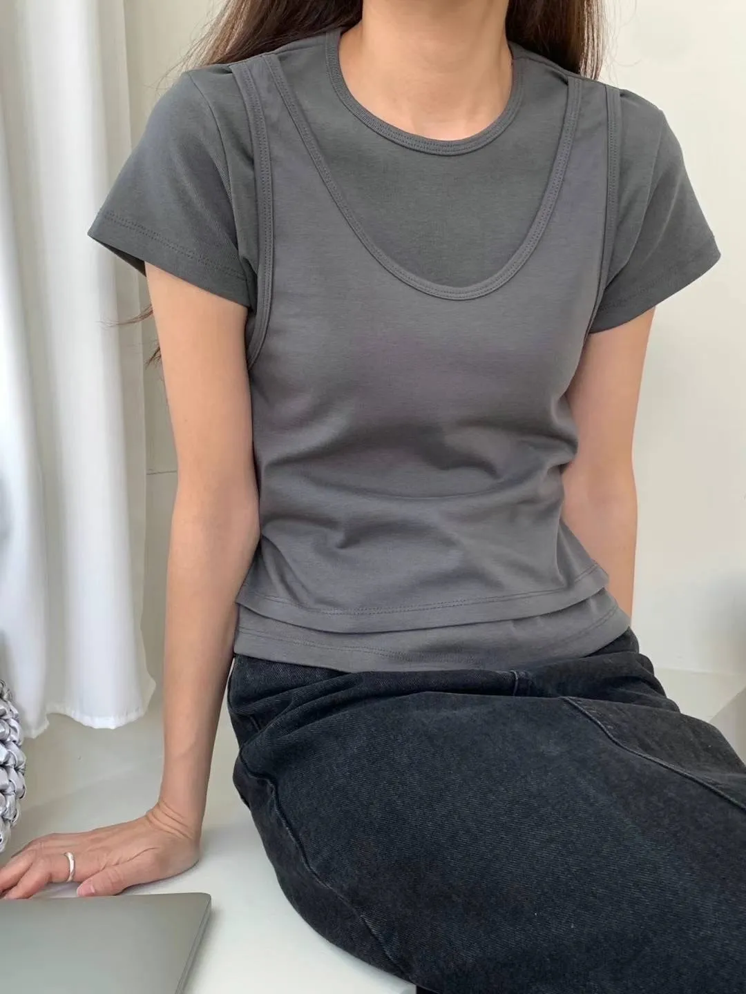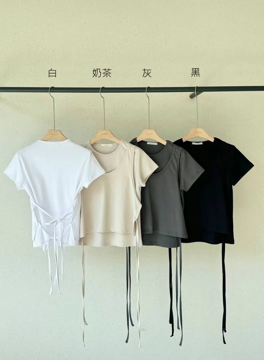 CM784層次假兩件式綁帶上衣 白 灰 黑 奶茶 原價$540 永恆甜甜價$490