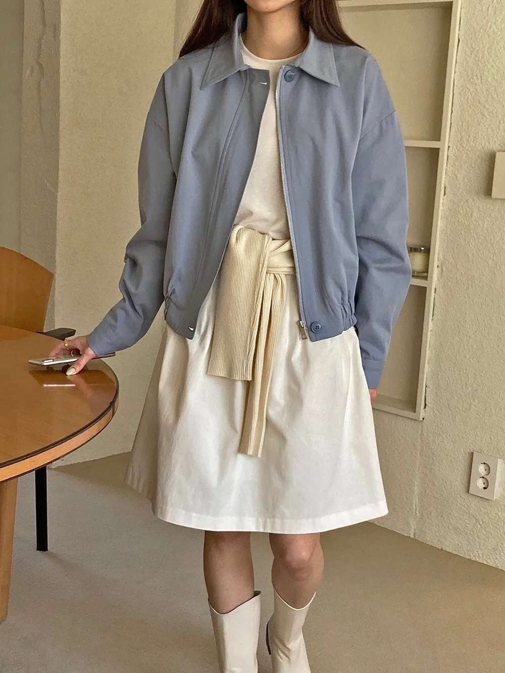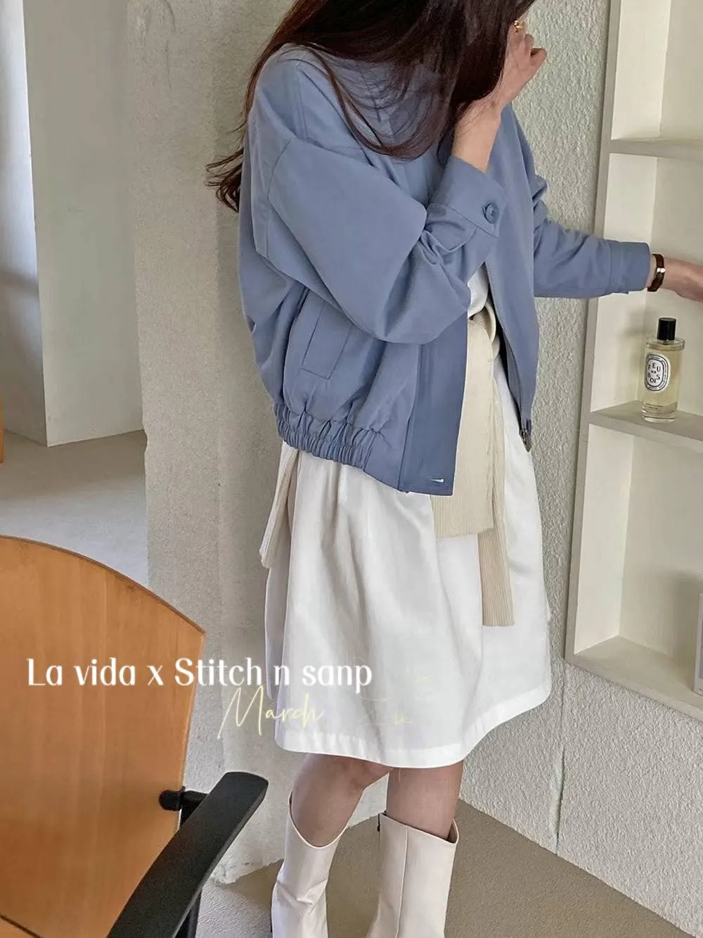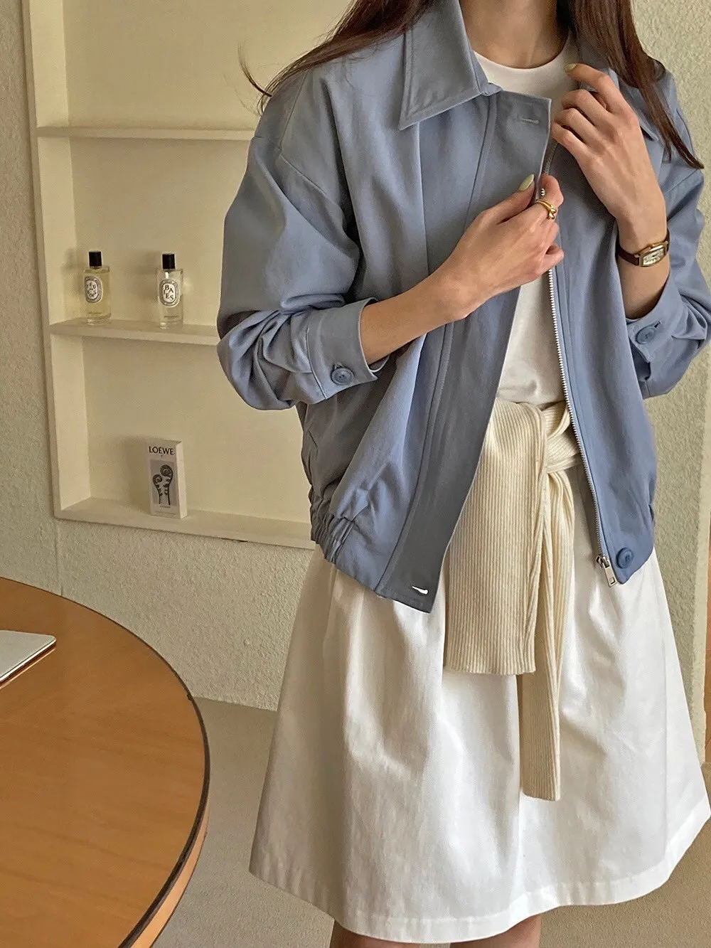 棉+聚酯 拉鍊穿脫 頂端單釦 腰有鬆緊 袖口有釦 襯衫領