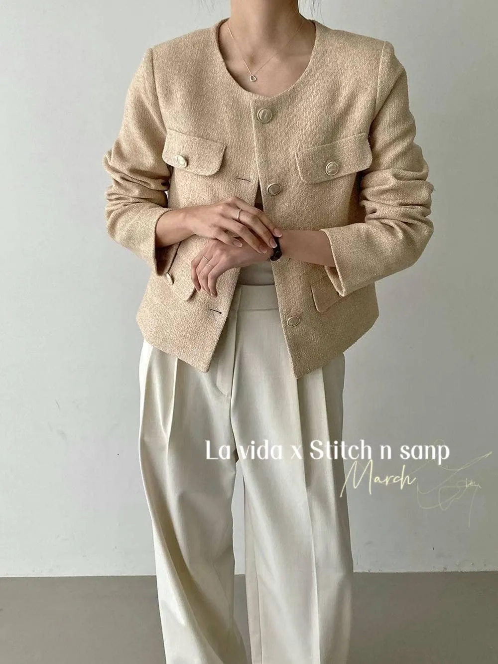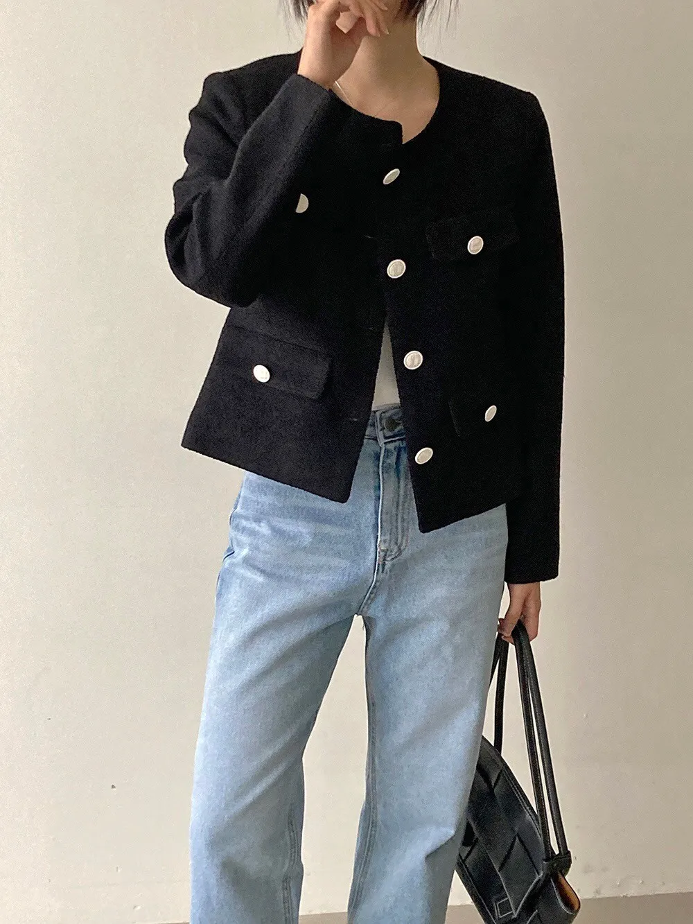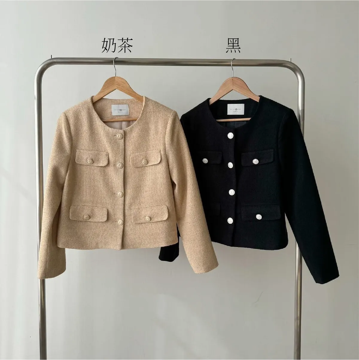 CM798小香風四口袋外套 黑 奶茶 原價$1620 線上價$1590