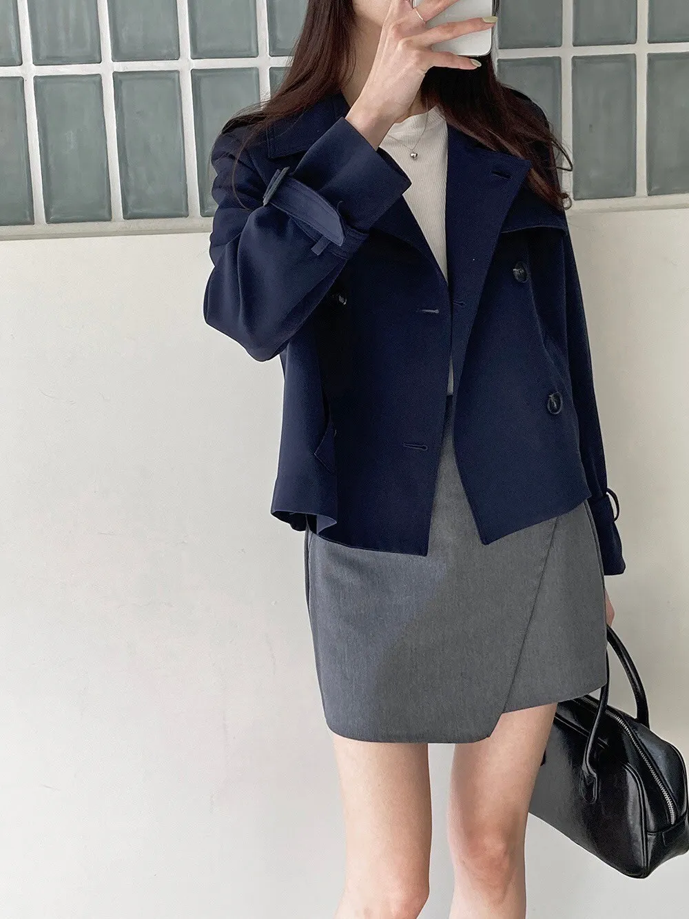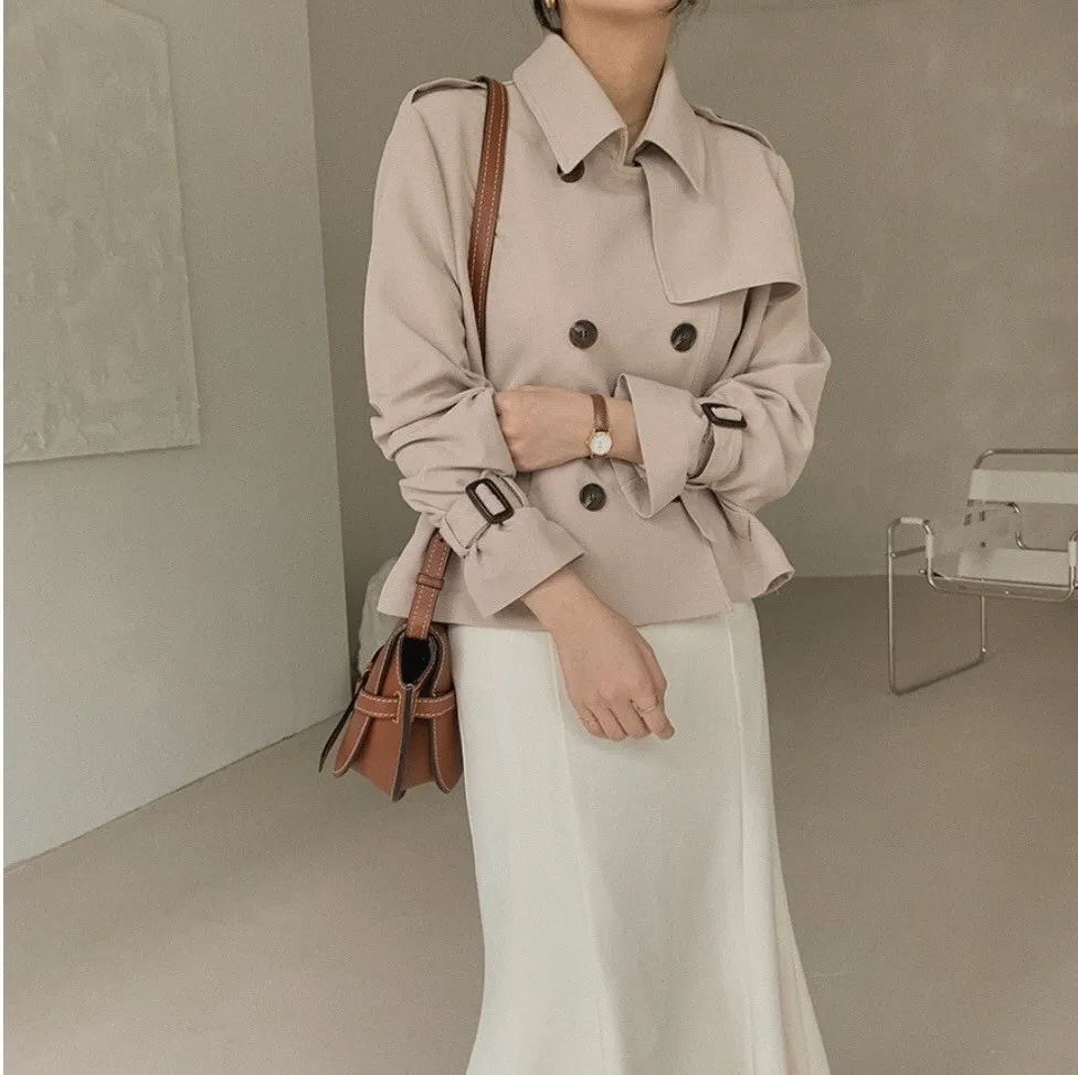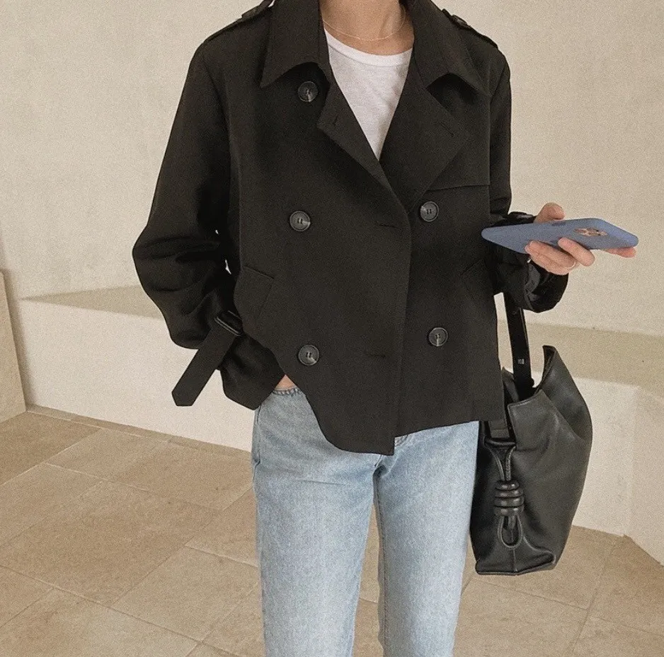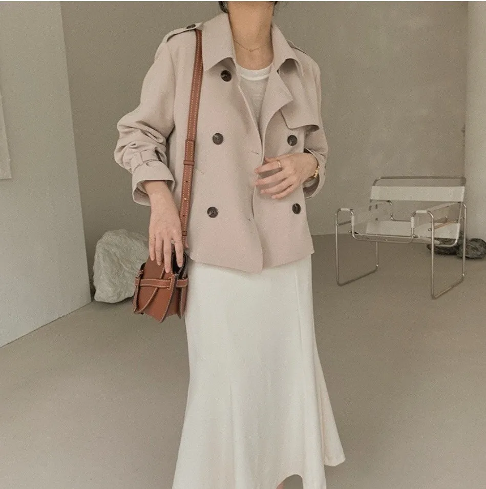 雪紡 薄款 前面有槍檔 不易皺面料 雙排釦 有口袋 宋宋出場穿奶茶