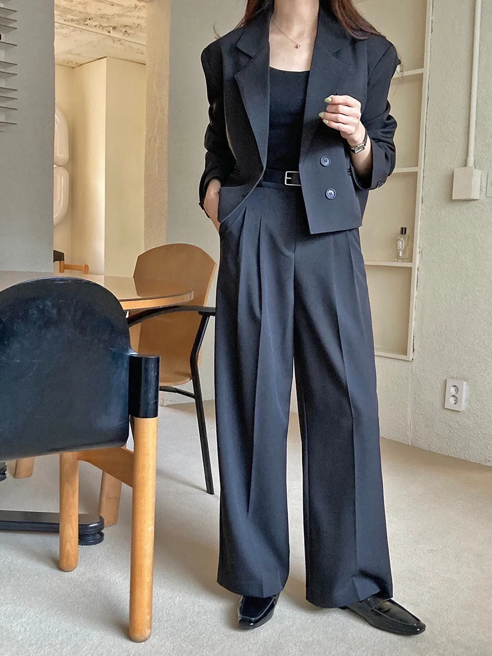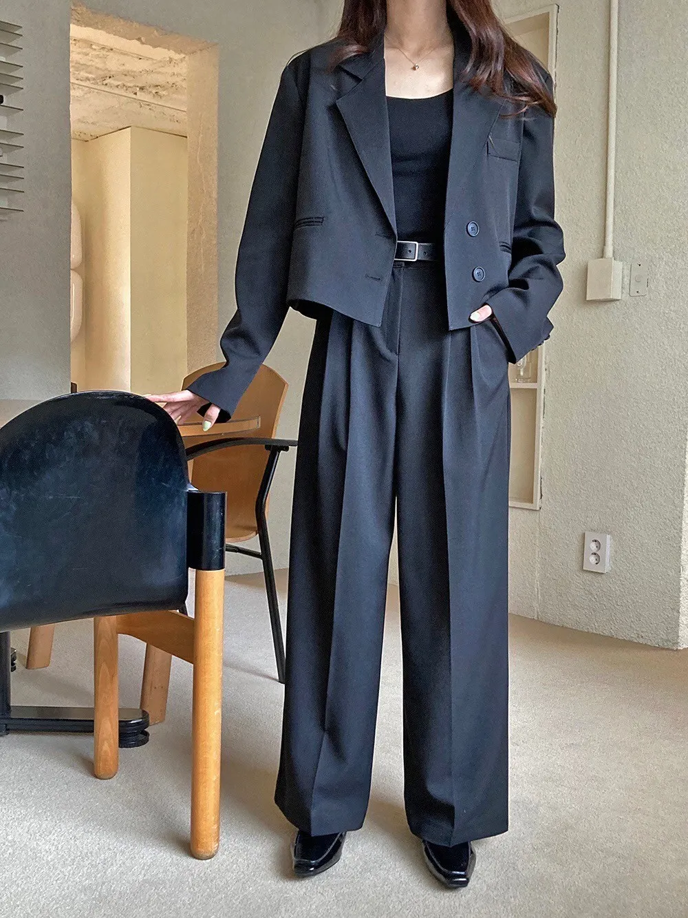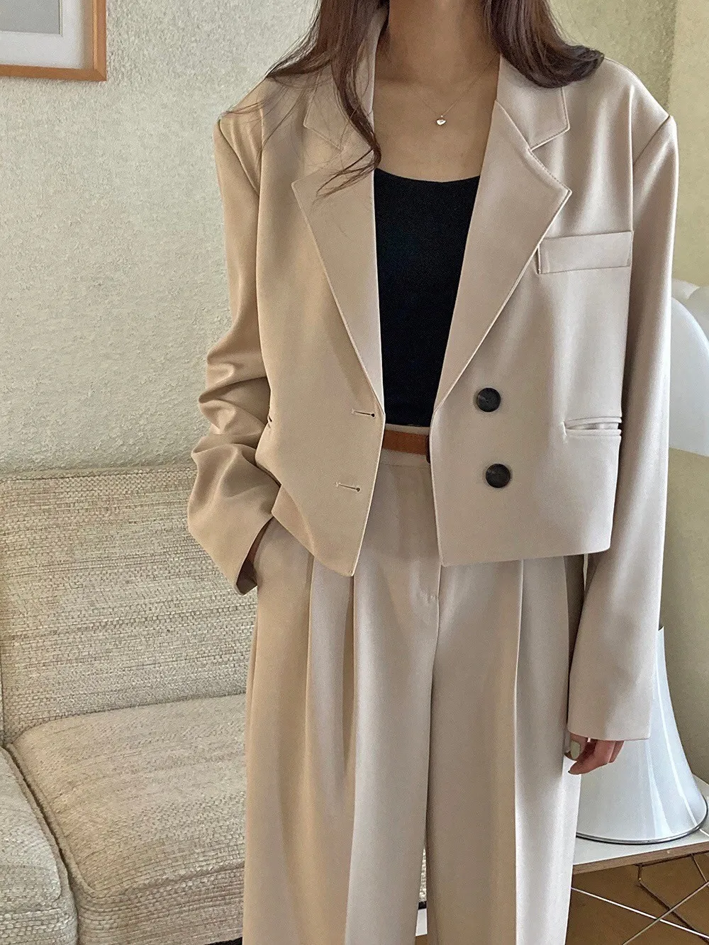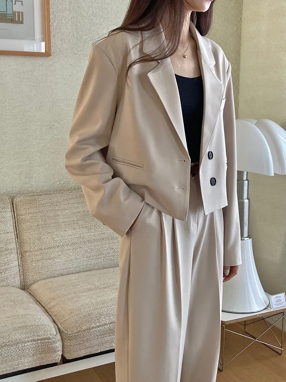 CM810新款冰涼感雙釦西裝短版外套 米 黑 原價$1190 線上價$1160