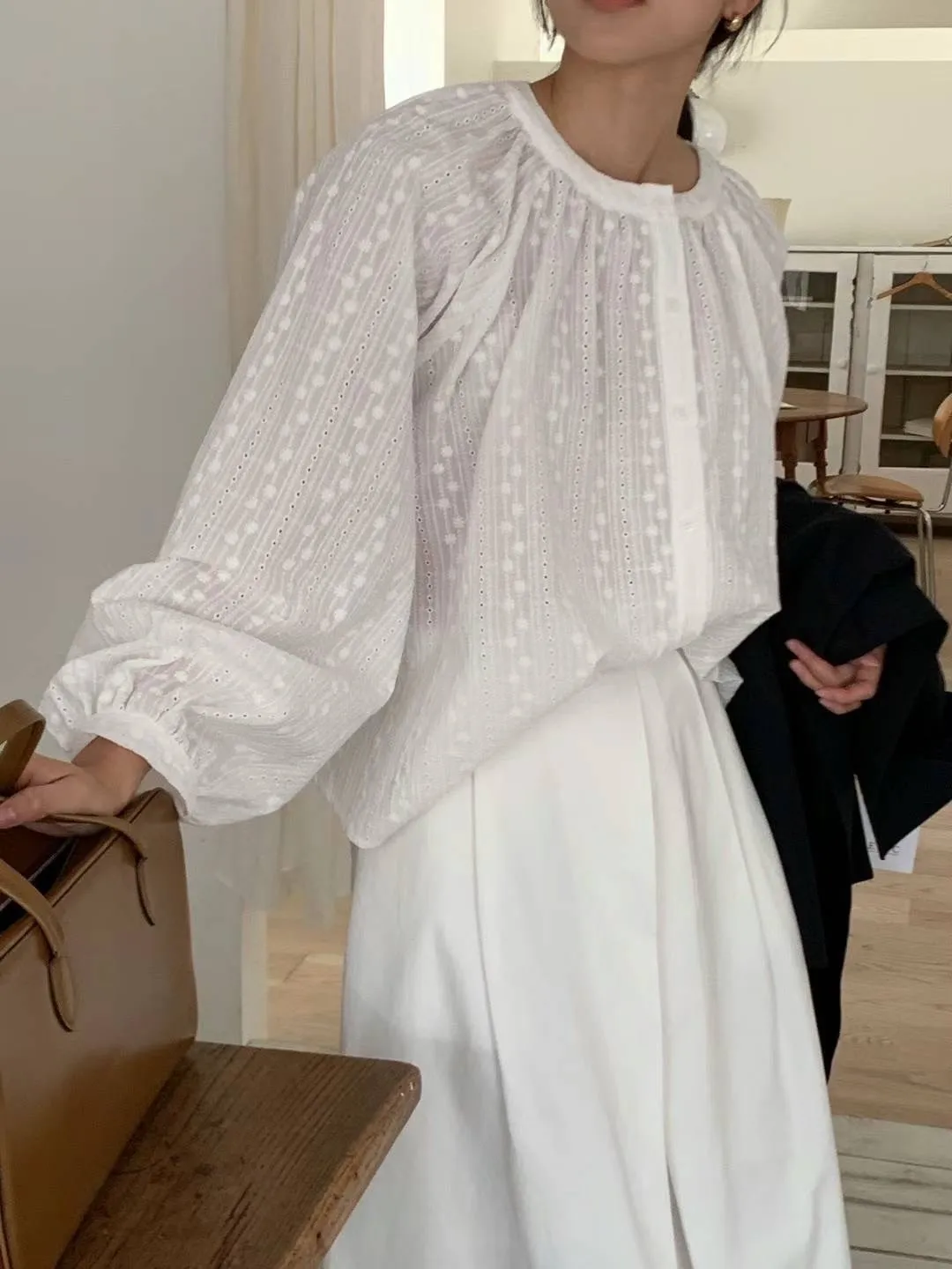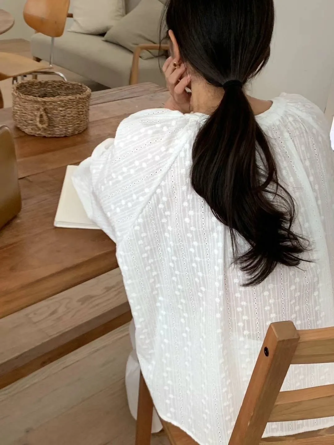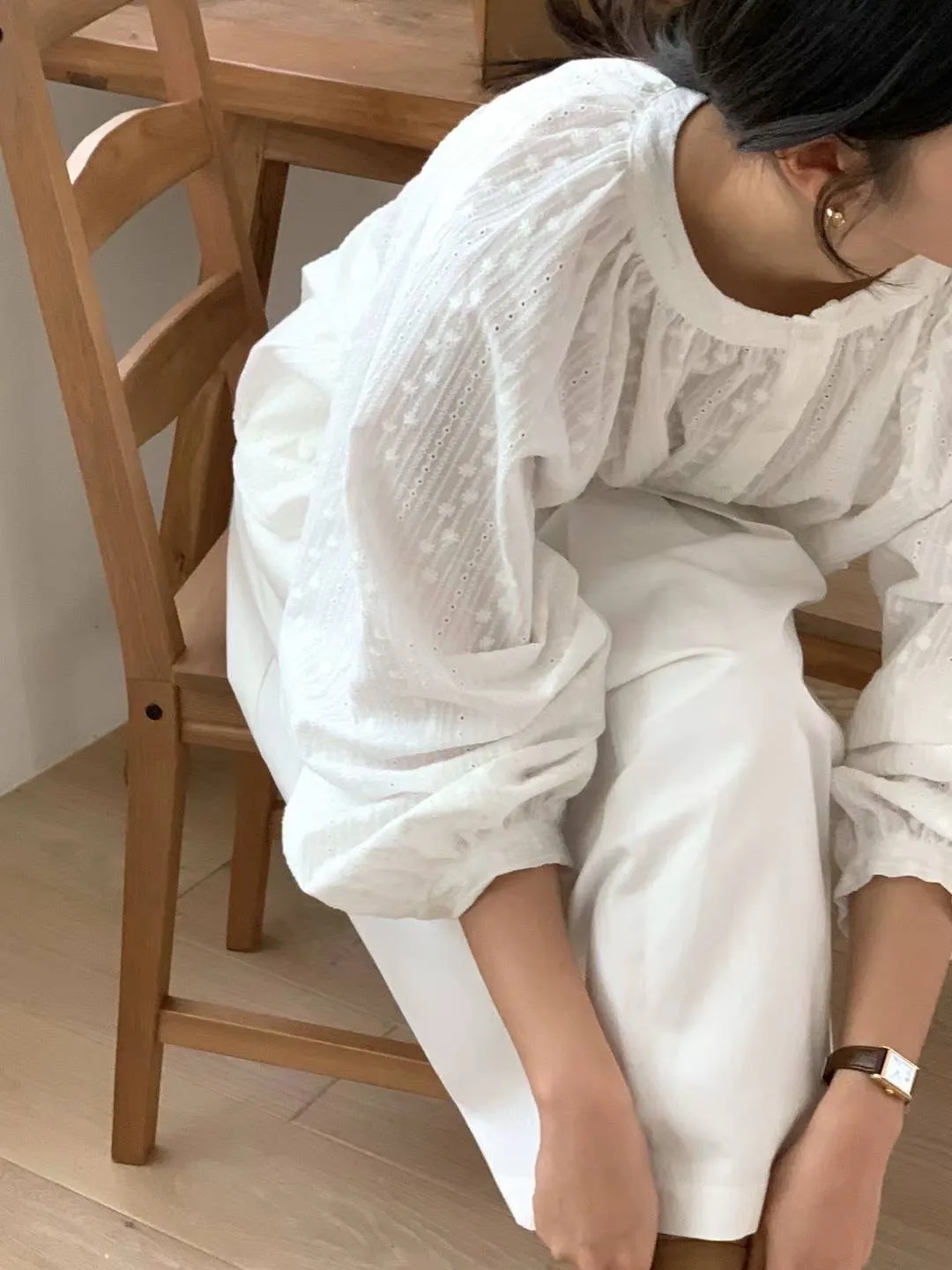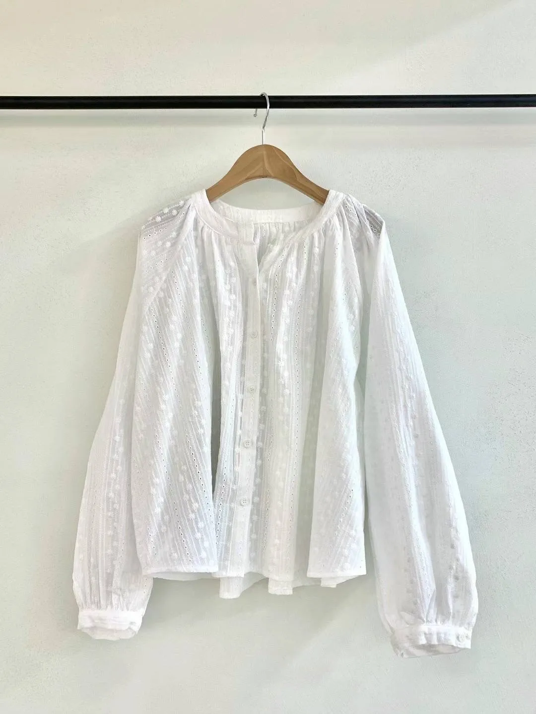 CM853刺繡小花簍空細洞白色上衣 官網價$1480