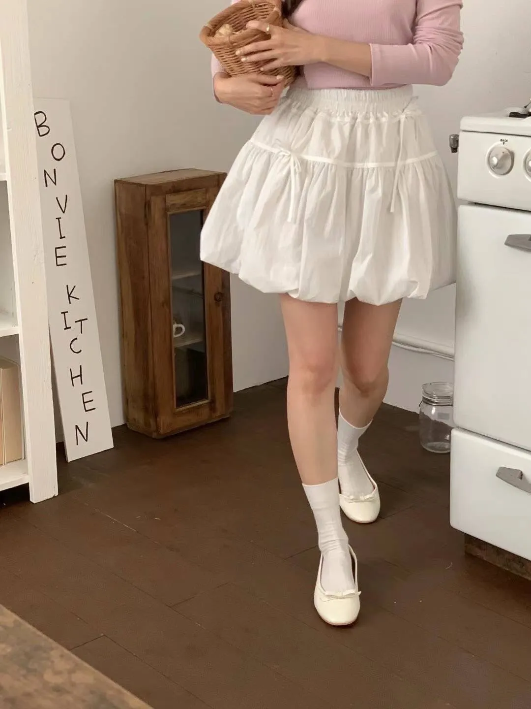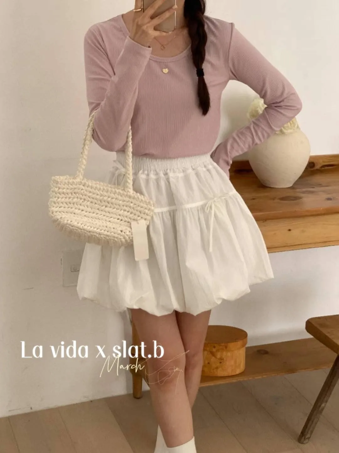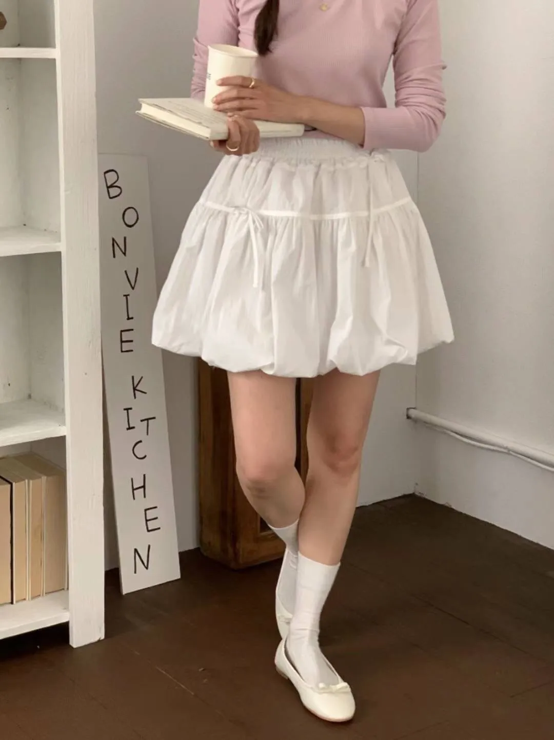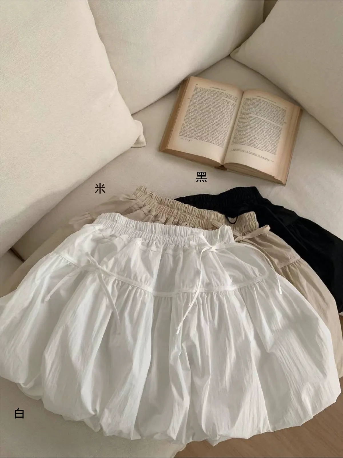 棉 全腰鬆緊 蝴蝶結設計 蓬蓬的花苞下擺 視覺空氣感 百搭色調
