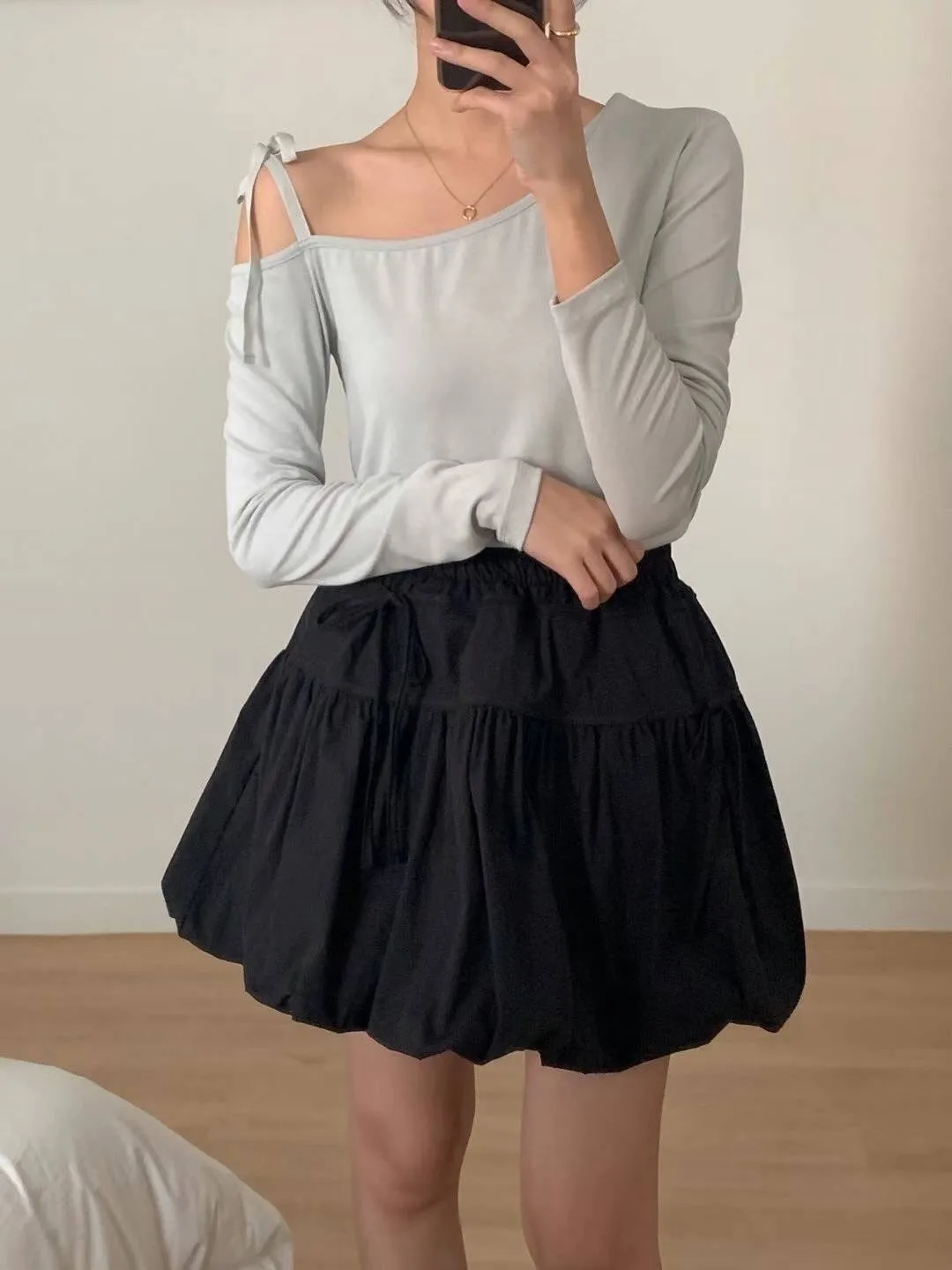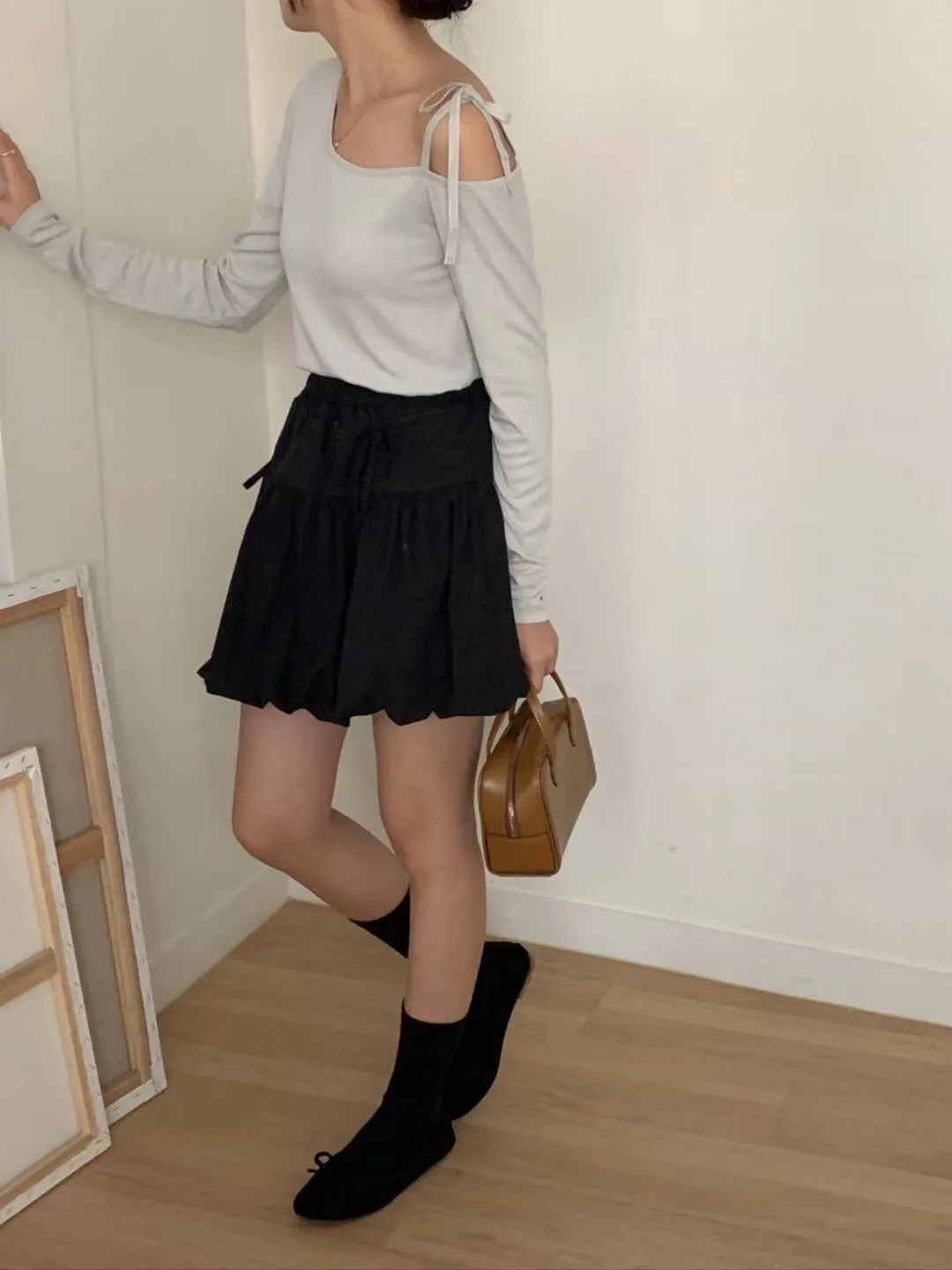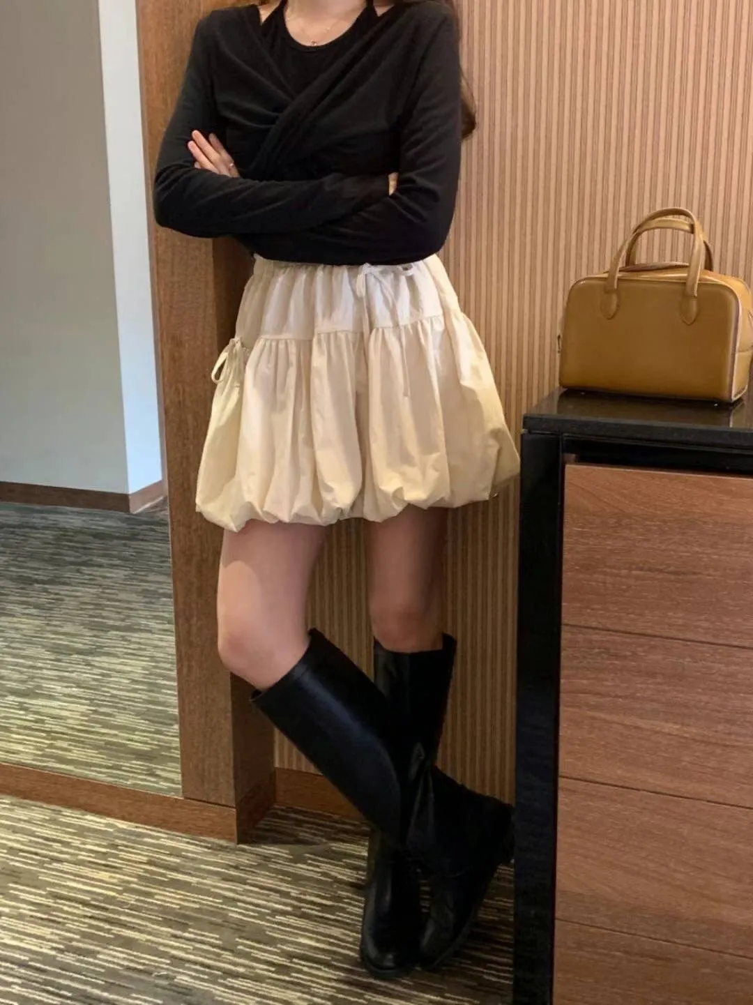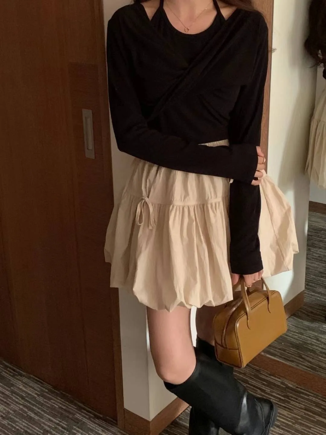 棉 全腰鬆緊 蝴蝶結設計 蓬蓬的花苞下擺 視覺空氣感 百搭色調