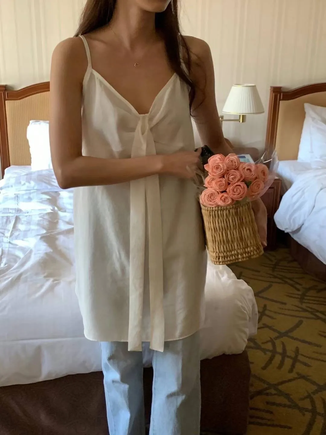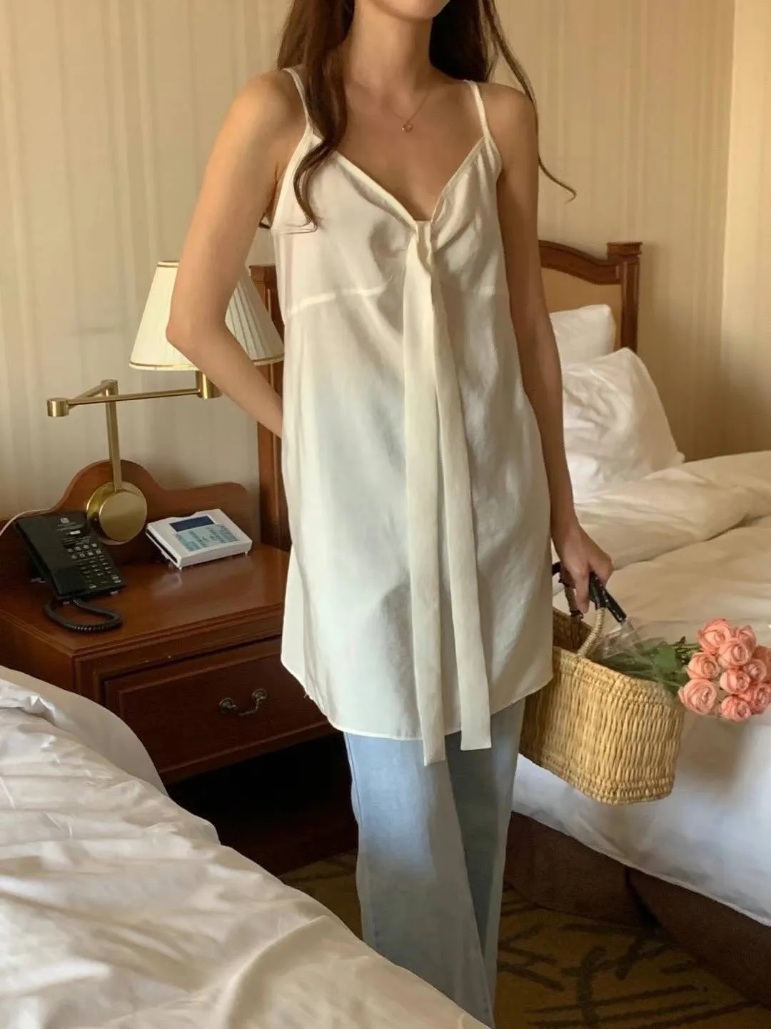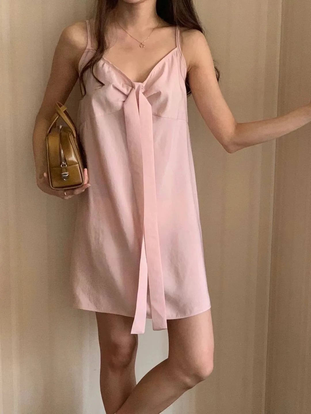 雪紡+人造絲 薄款透光 高級光澤緞面 美背綁帶 肩帶不可調
