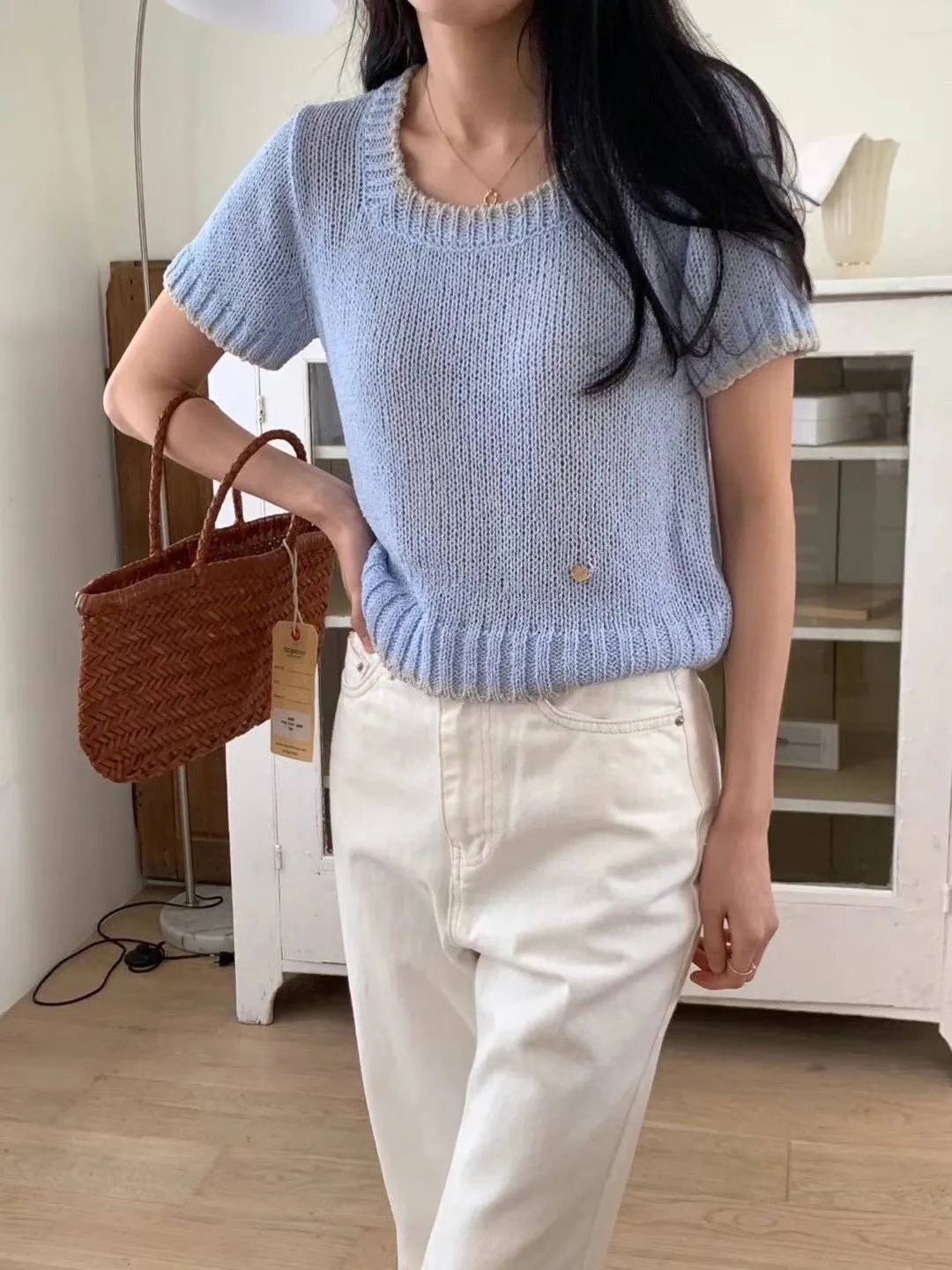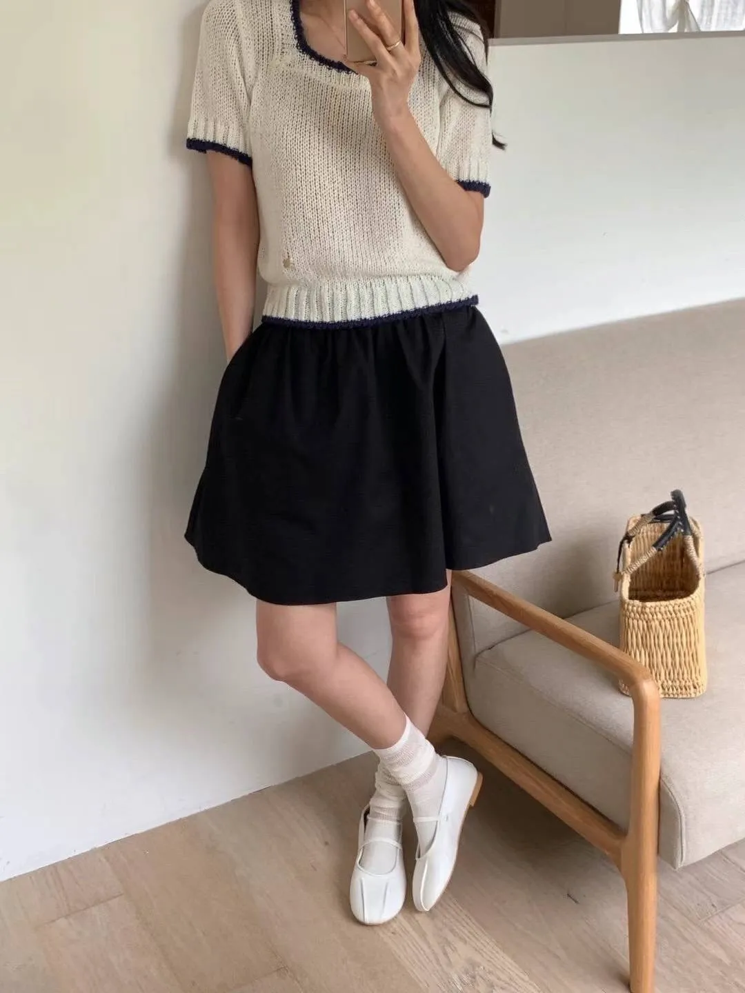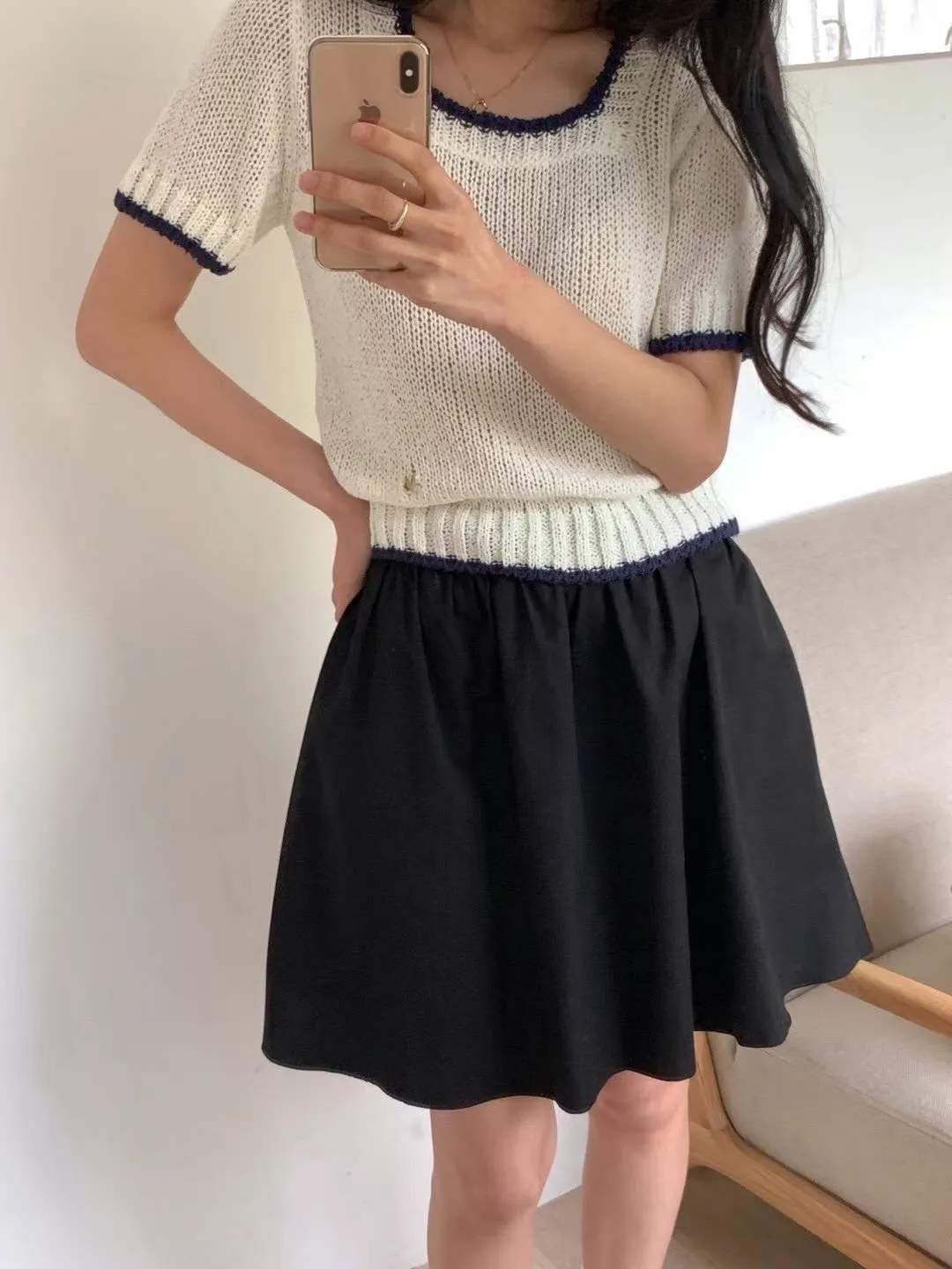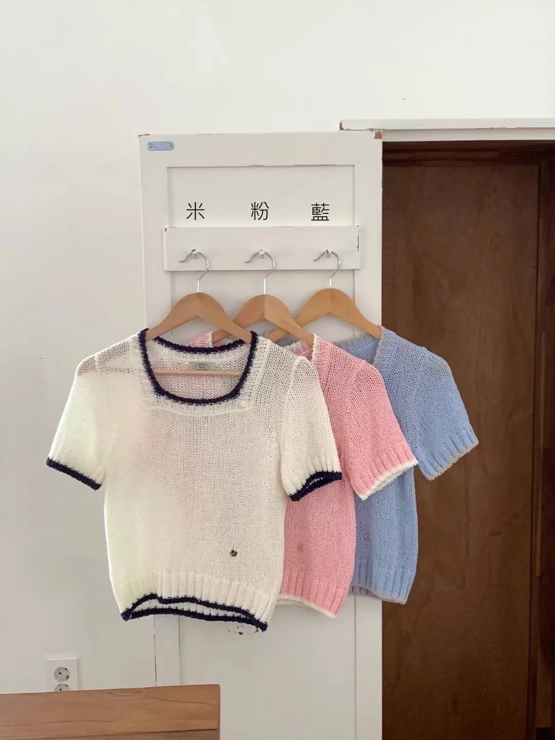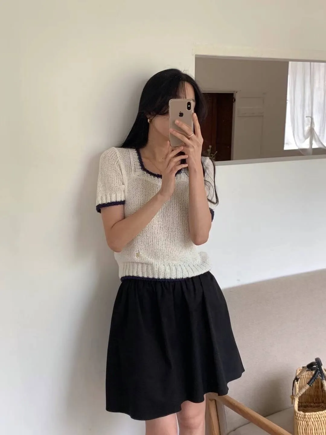 棉+聚酯 方領顯瘦 側面有小金邊 跳色滾邊 有彈性 穿到小L 夏天可以