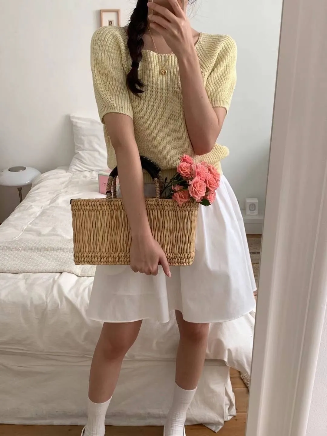棉+聚酯 微彈性 公主袖 磅數針織 微乾材質 穿到小L