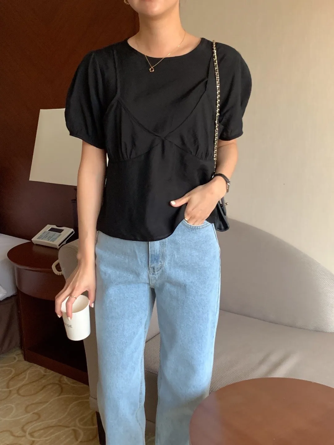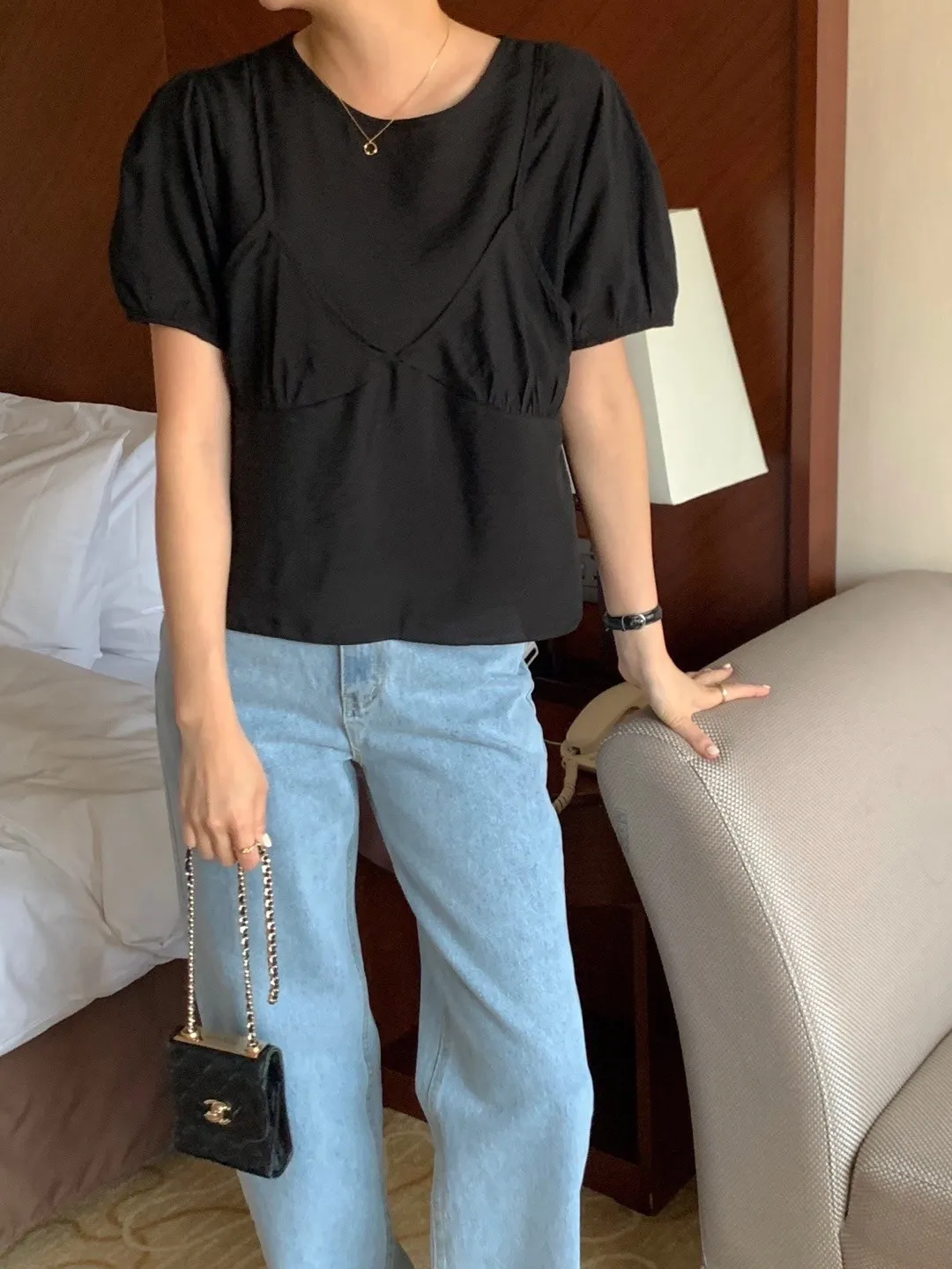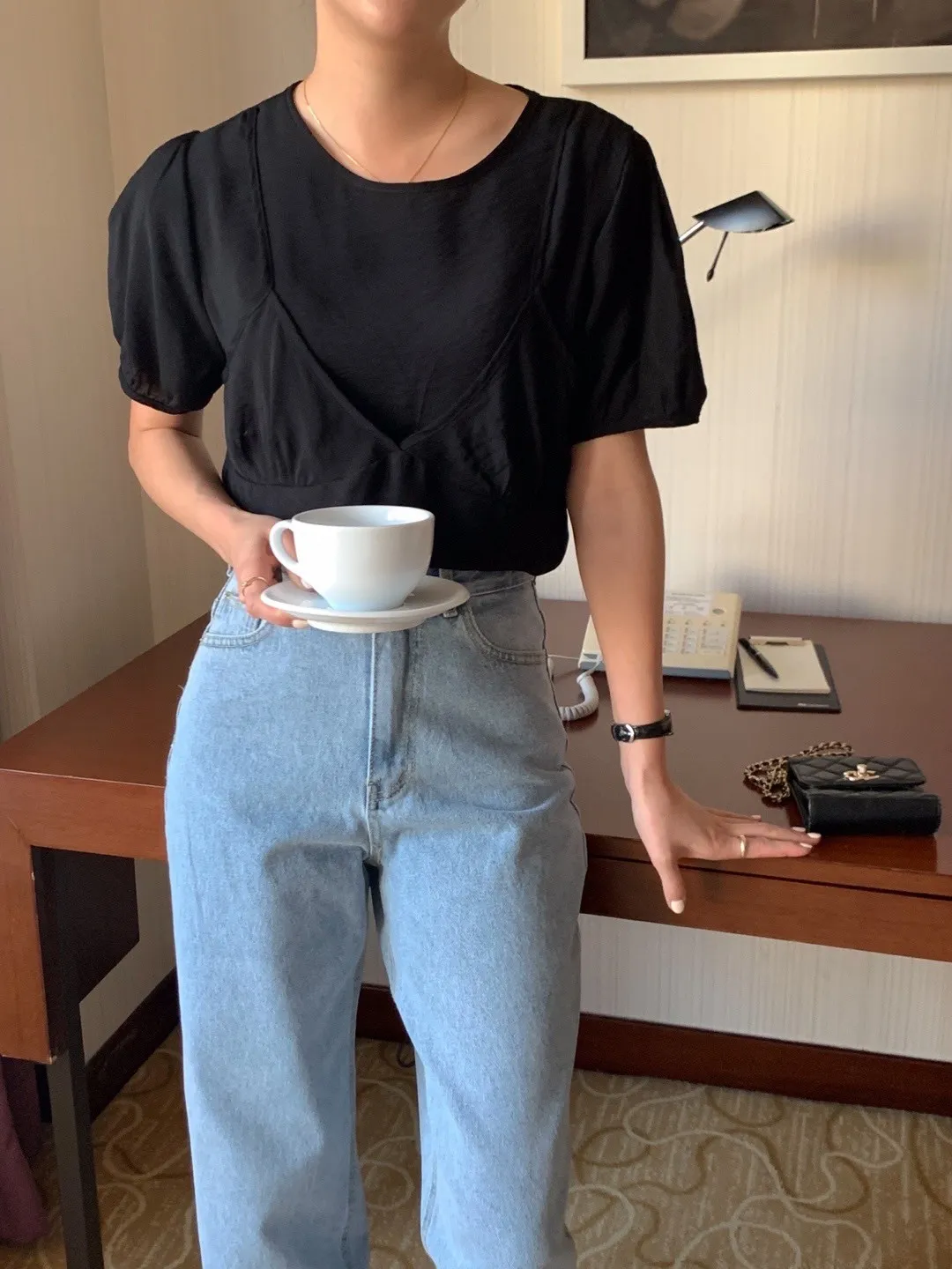 聚酯 薄款輕盈 袖口包邊 假兩件不可拆 洗後須整燙