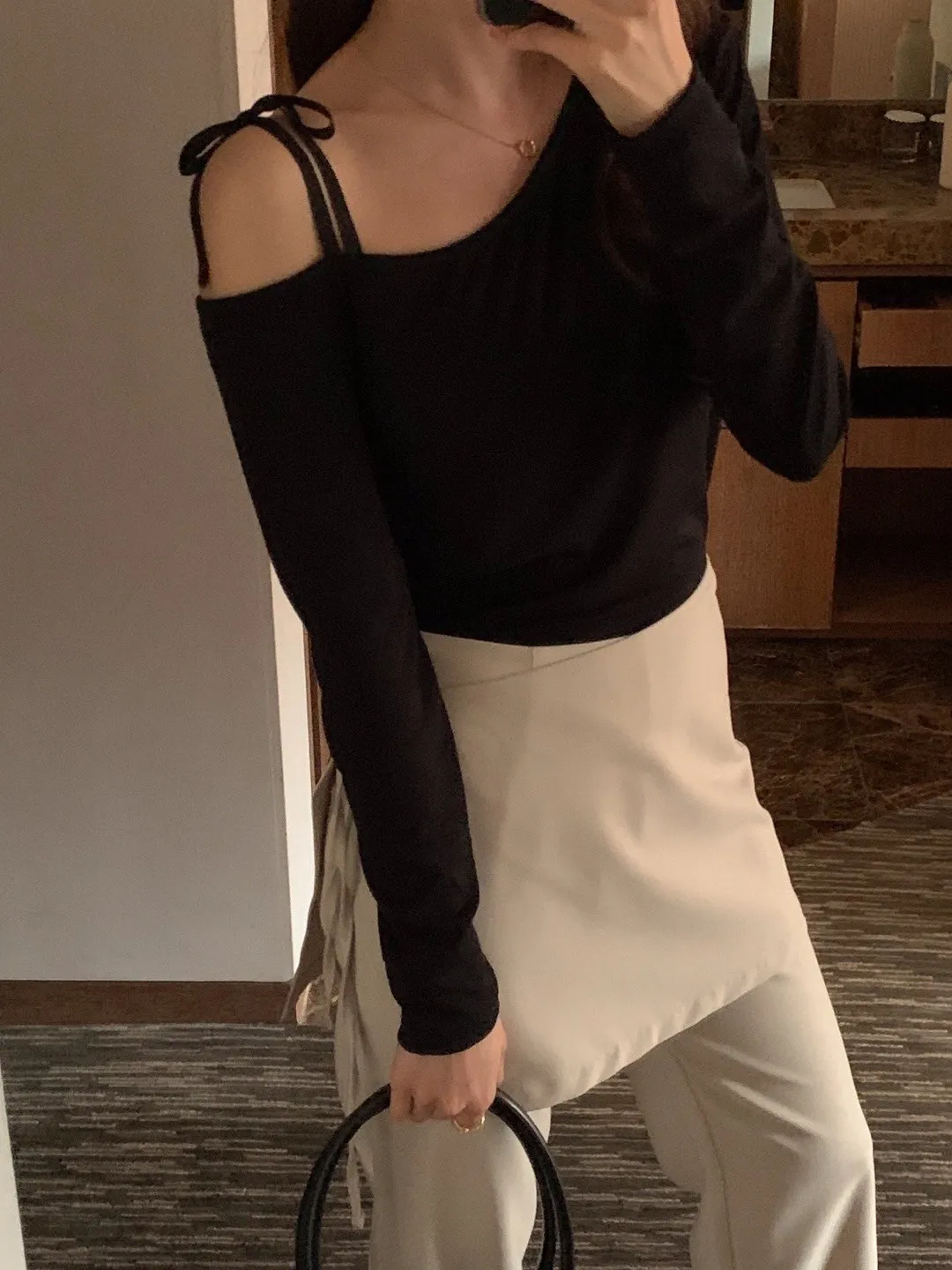 CM917許願款單肩綁帶斜肩美衣 白 黑 綠 粉 官網價$490 線上價$460