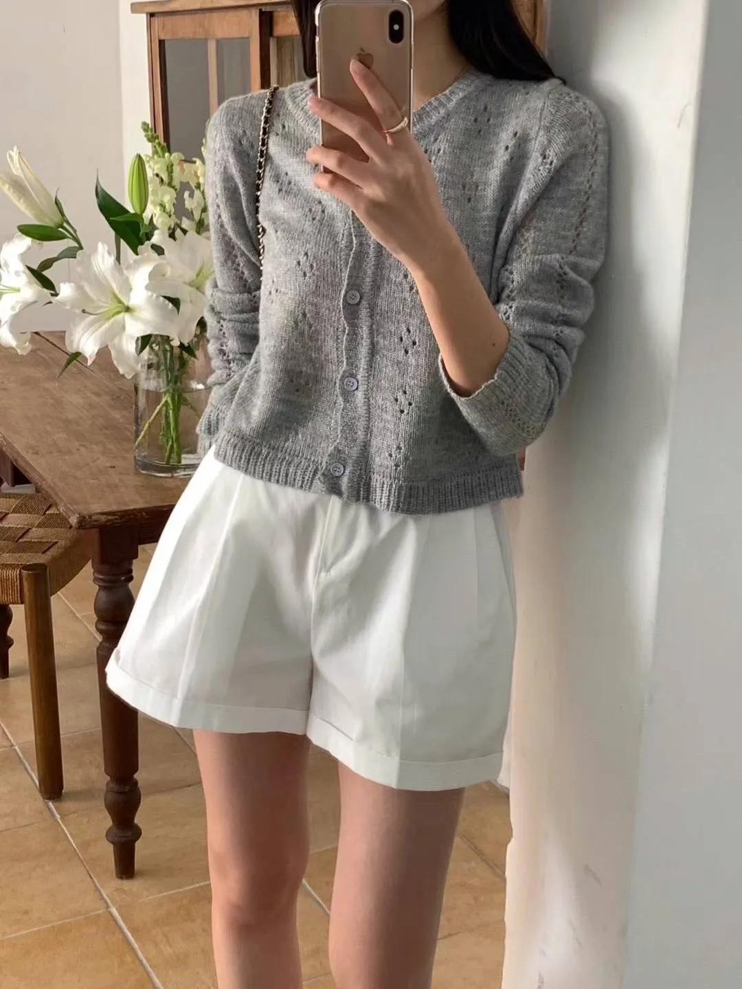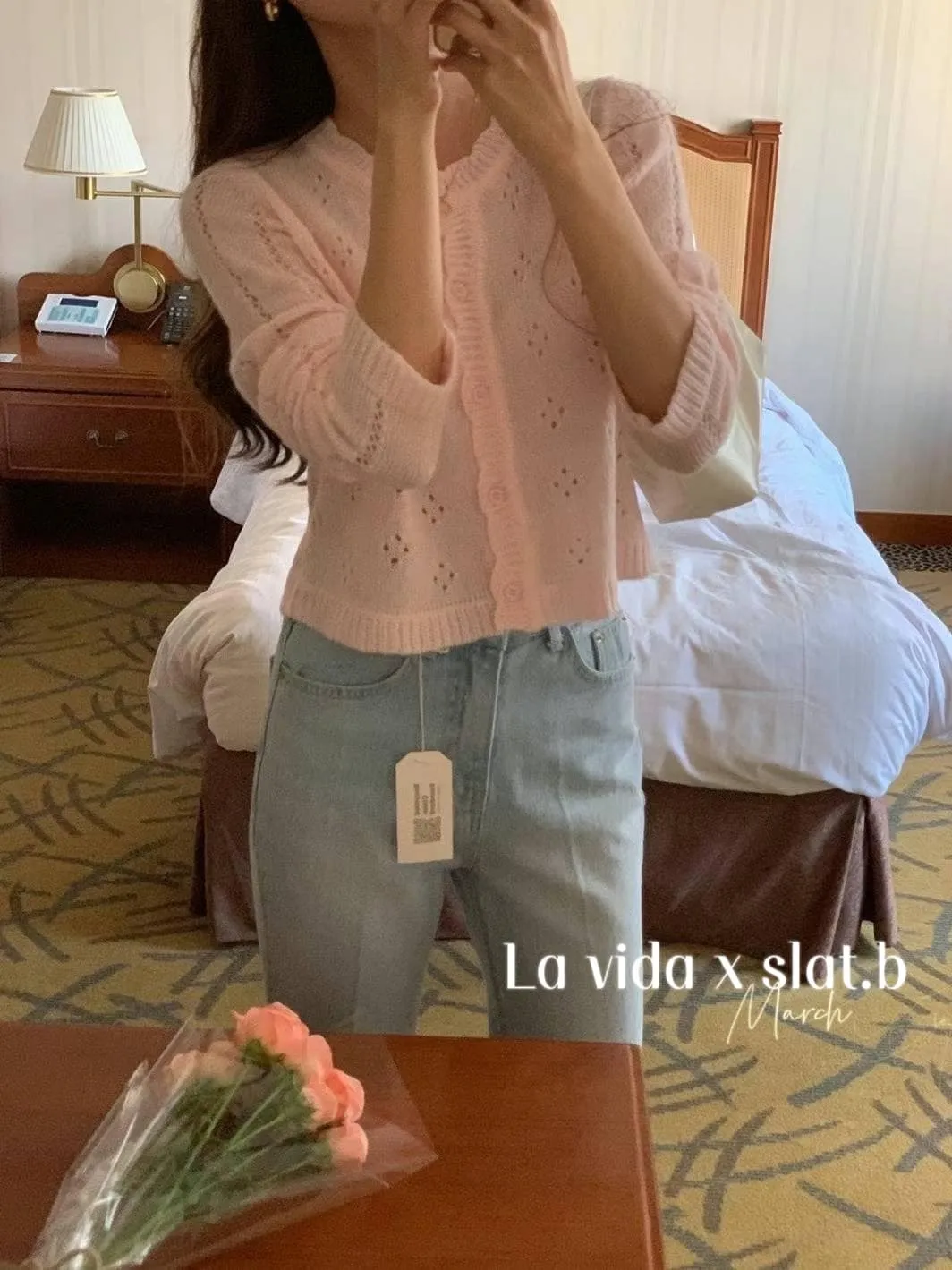 棉 薄款 波浪紋排釦穿脫 細緻簍空面料 版型偏 小 適合當 小外套