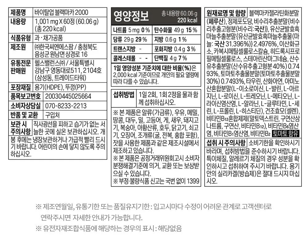 內含成份 : 黑瑪卡2000mg+19種氨基酸+維生素+有機酸
