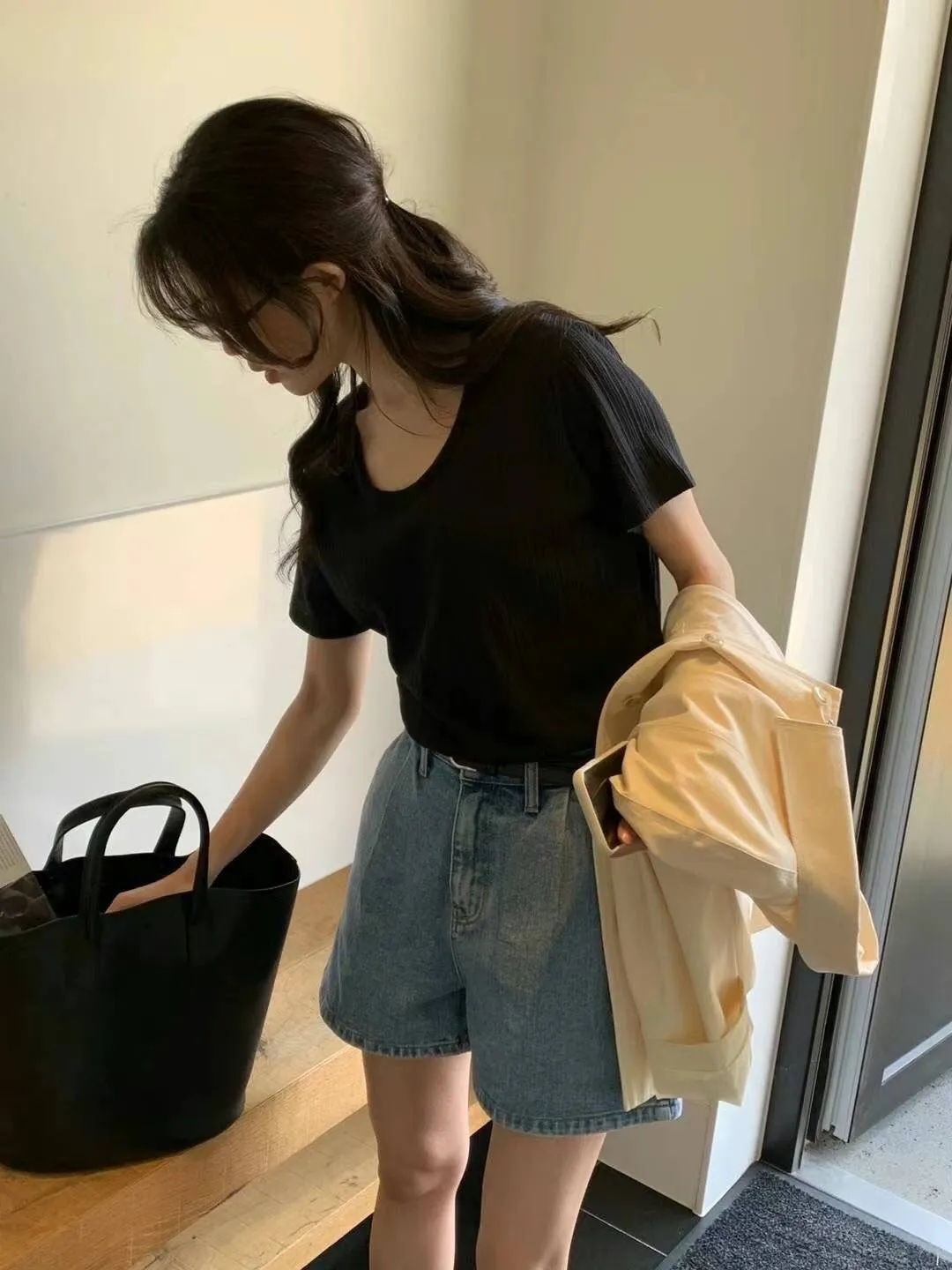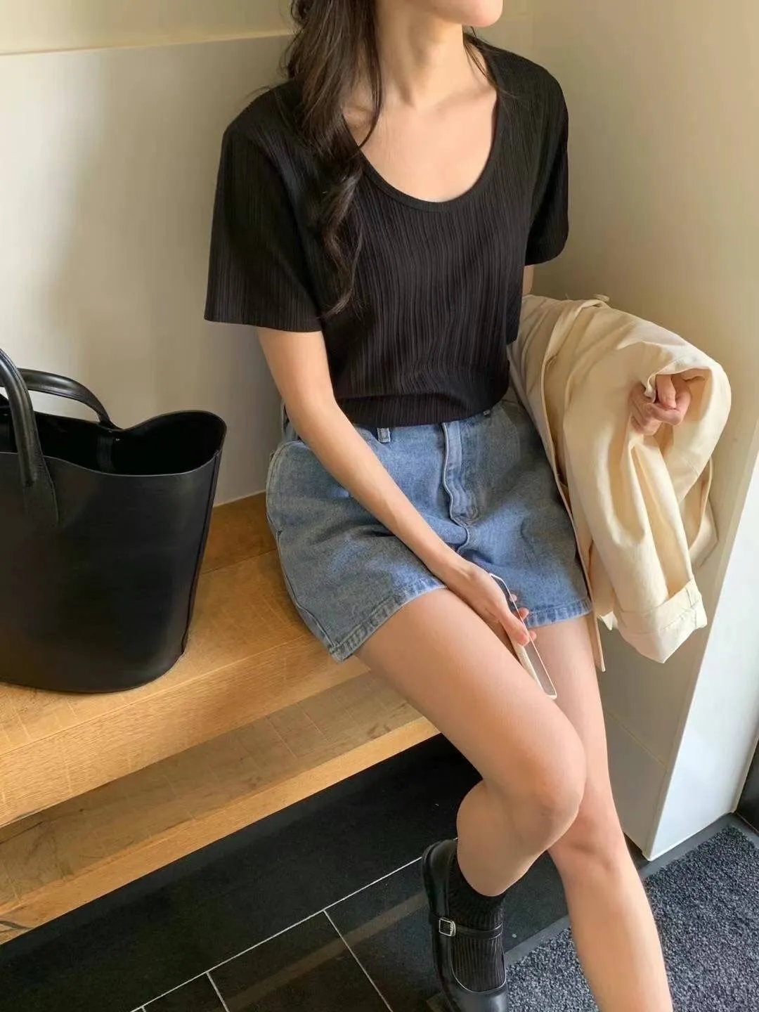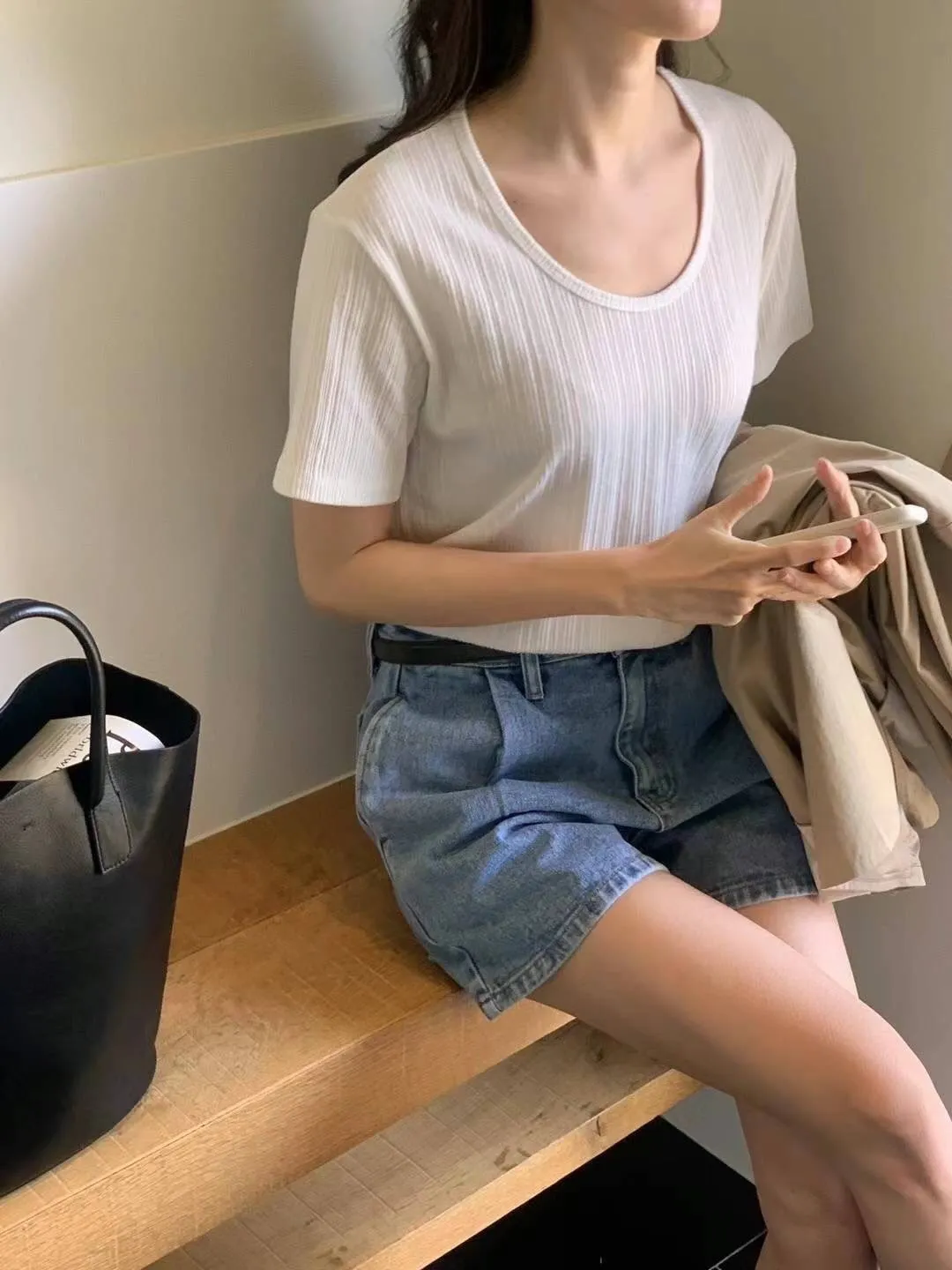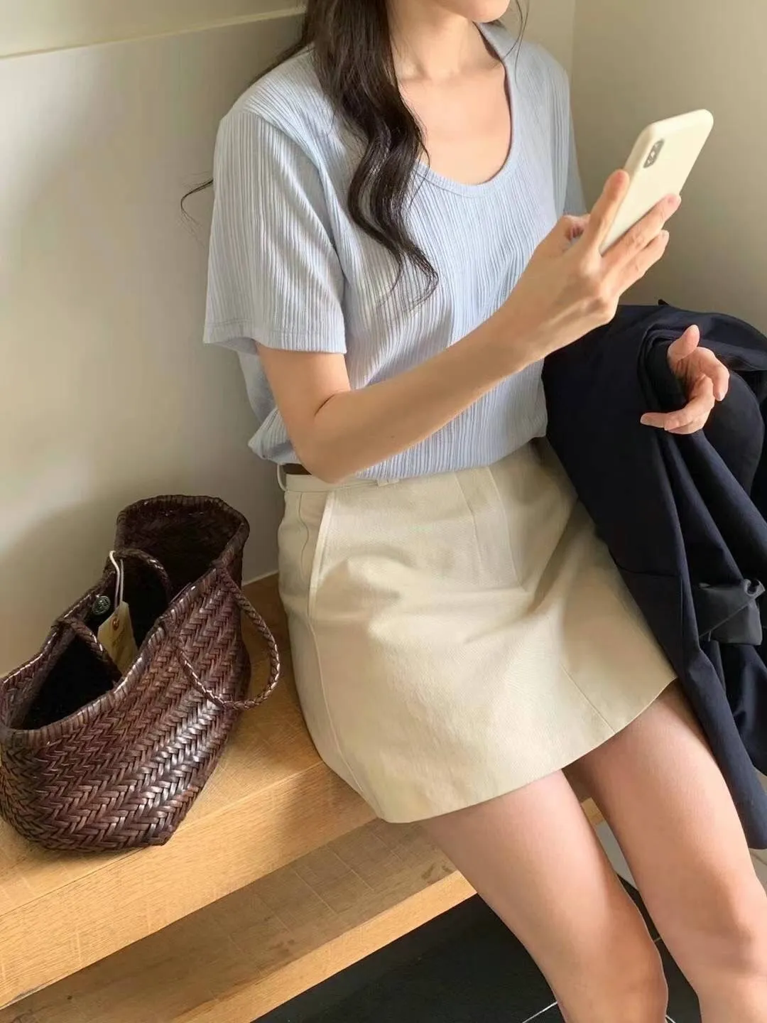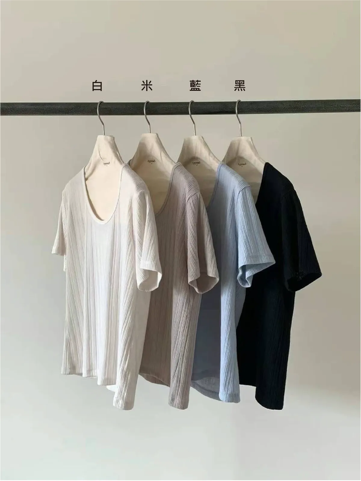 CM972高級視覺薄款U領上衣 白 米 藍 黑 官網價$429 線上價$399