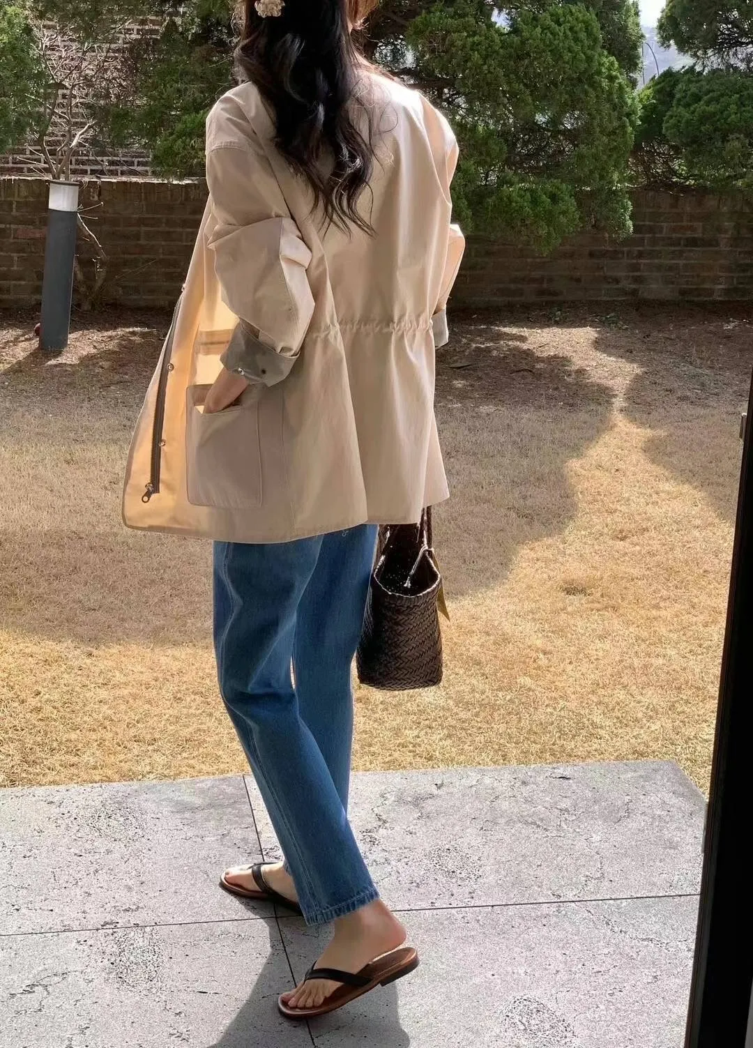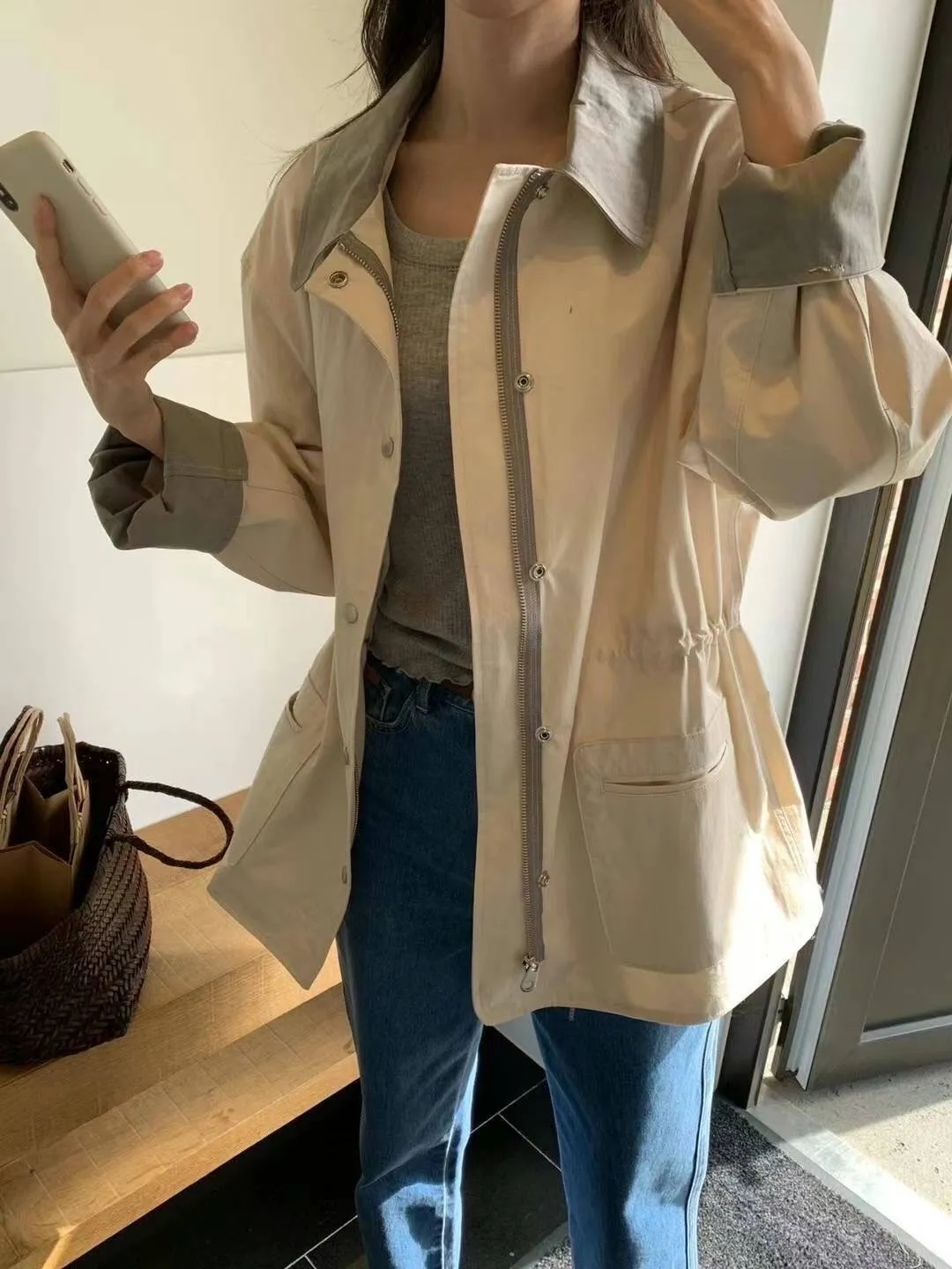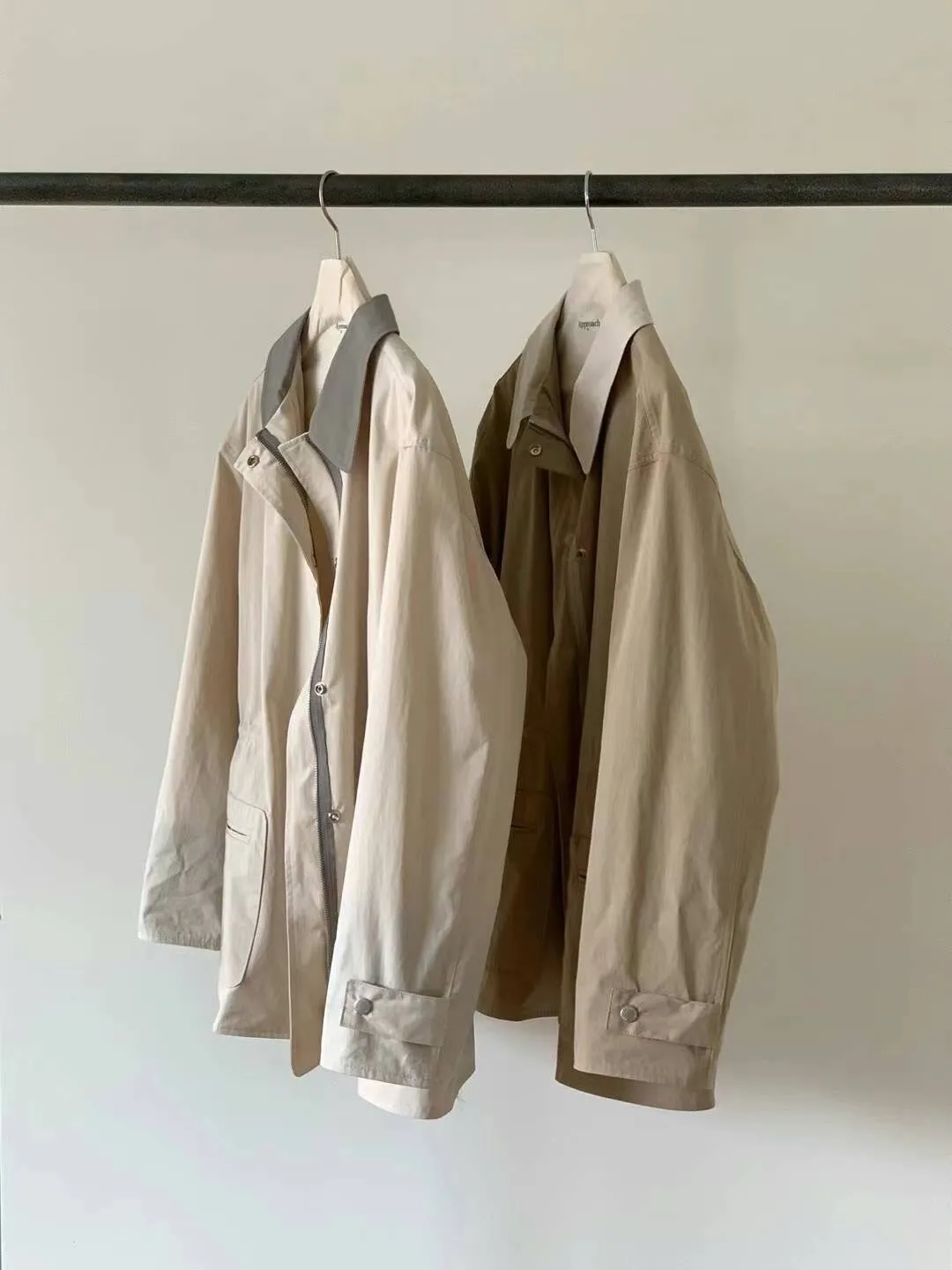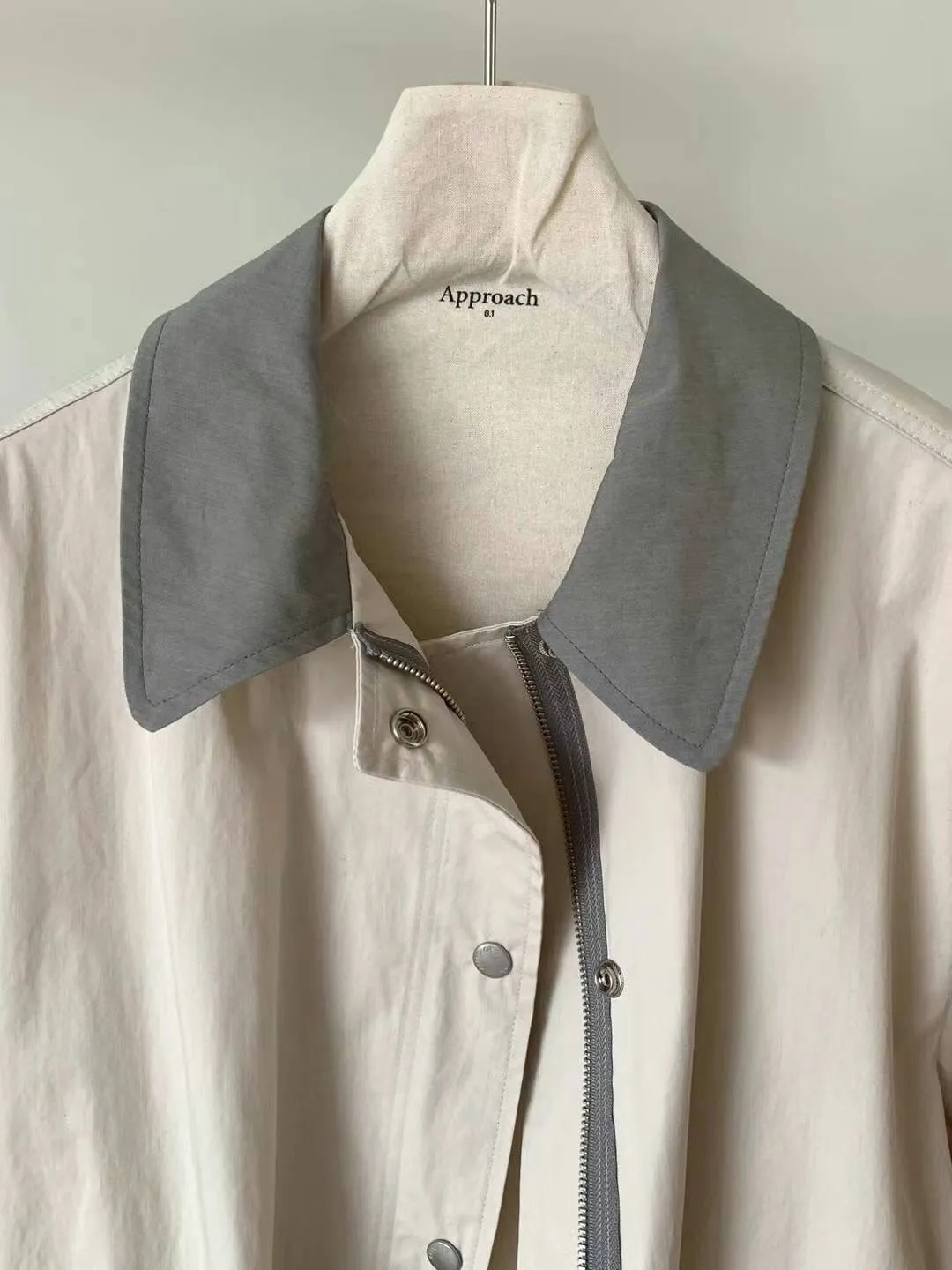 CM974薄款都會感跳色領長版外套 米 奶茶 官網價$2150 線上價$2120