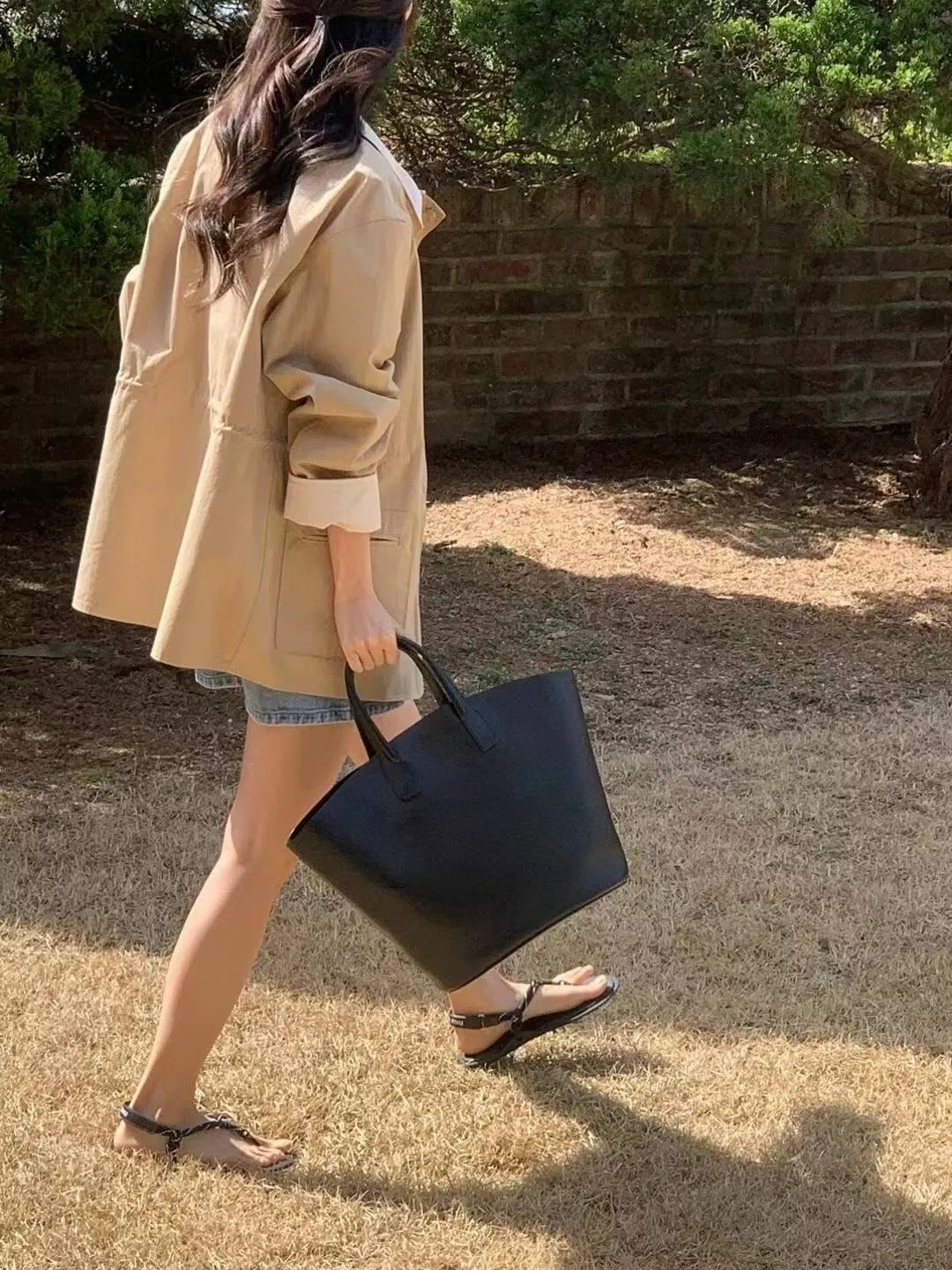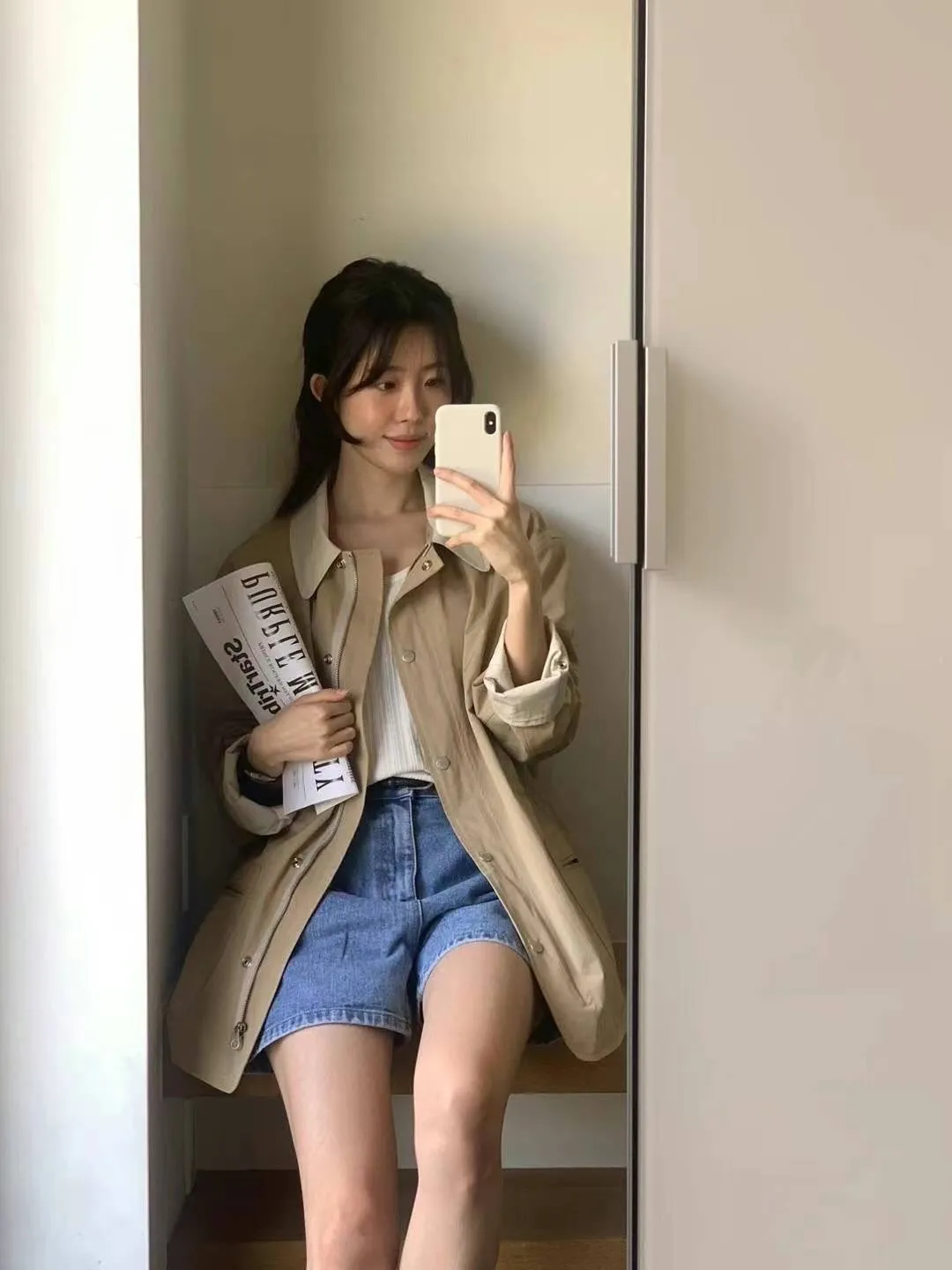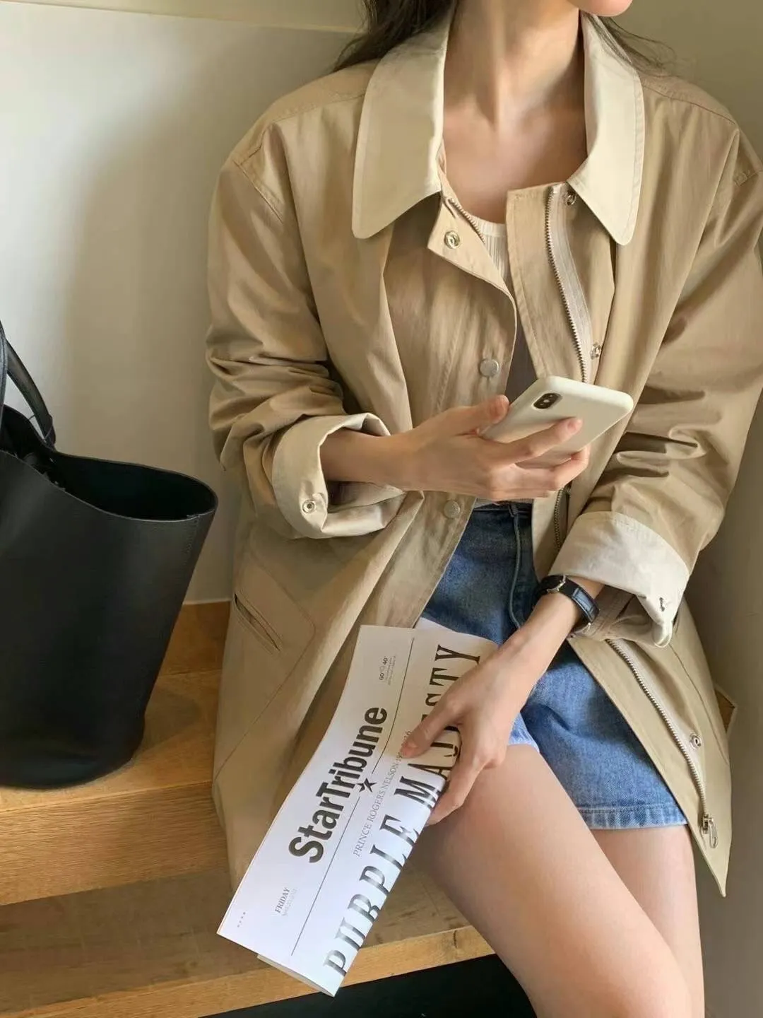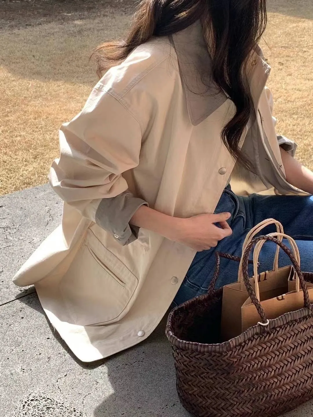 CM974薄款都會感跳色領長版外套 米 奶茶 官網價$2150 線上價$2120