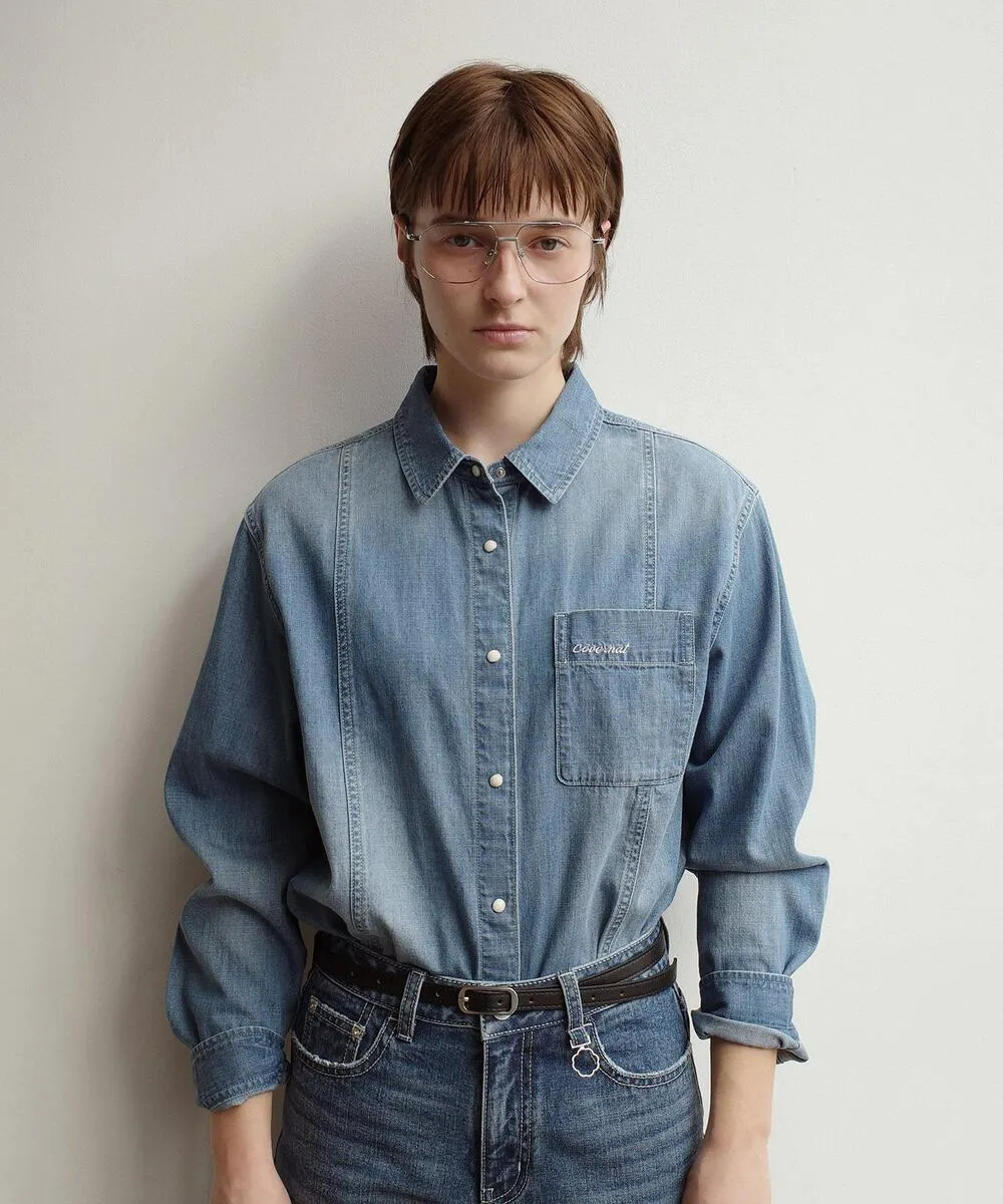 COVER020柔軟covernat丹寧牛仔襯衫(原AK119) 淺藍 深藍 S M 韓國原價$3080 永恆甜甜價$2140