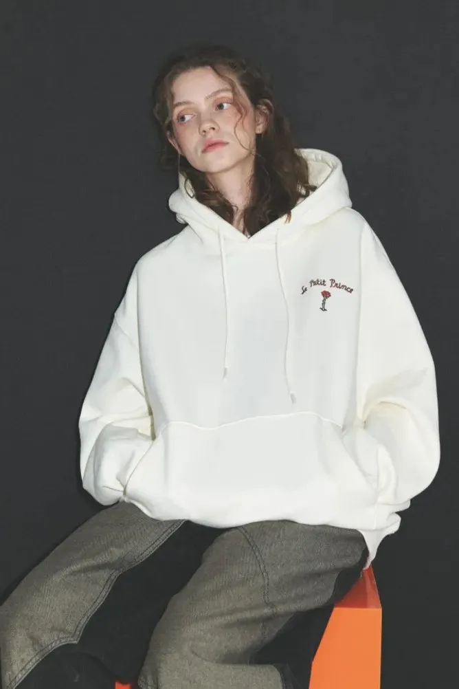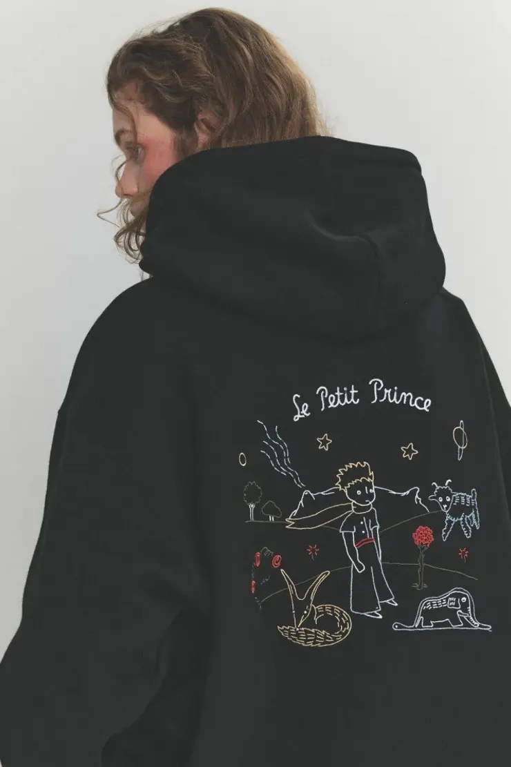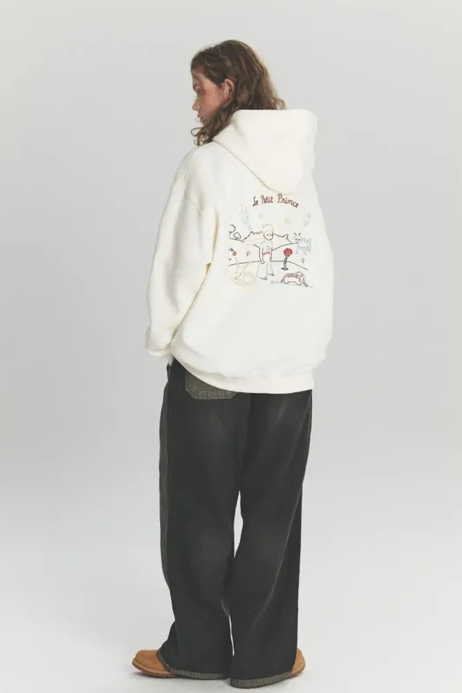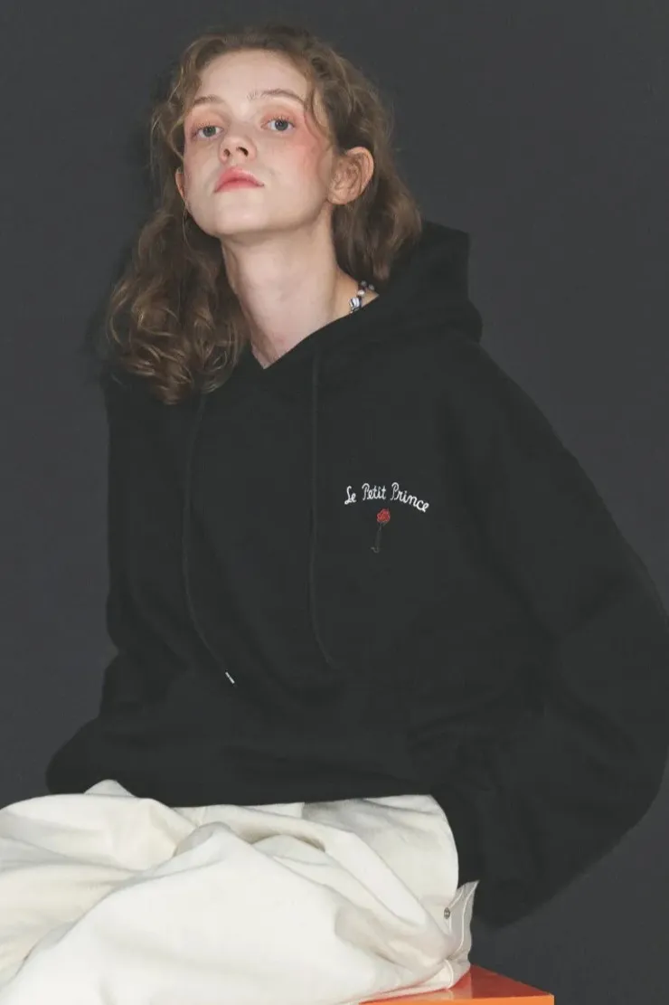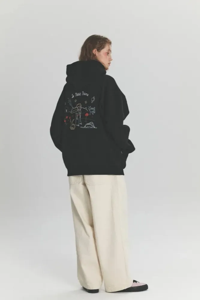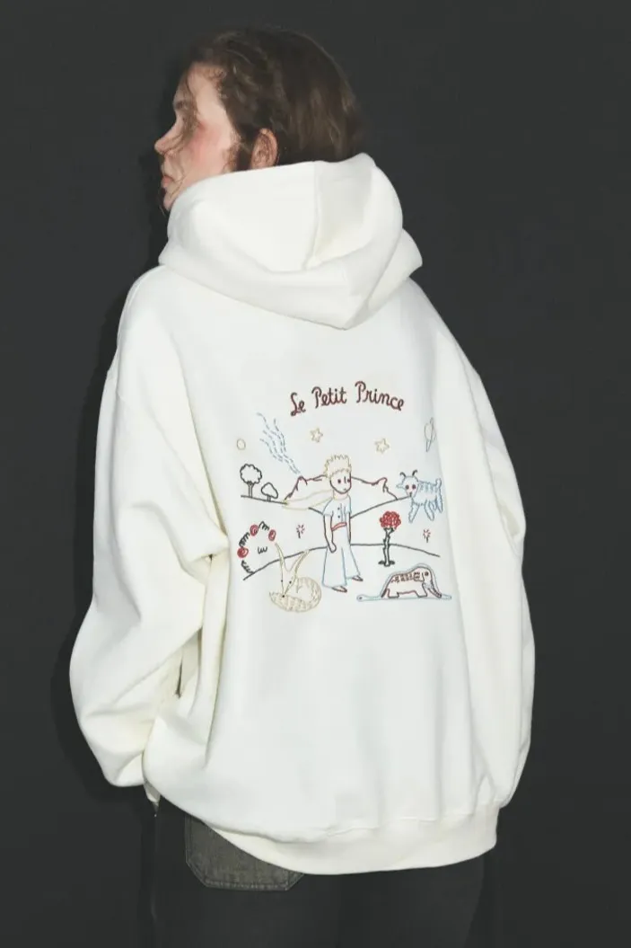 CPGN007絕美刺繡小王子連帽T 米 黑 原價$2200 特價$1090