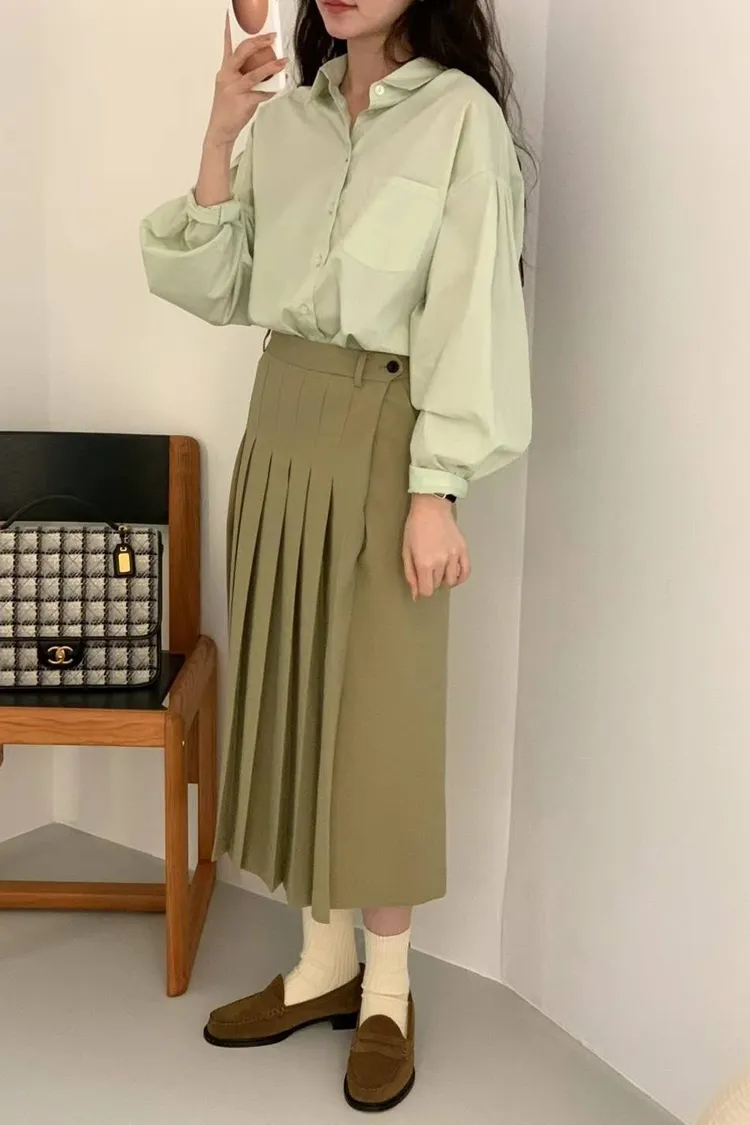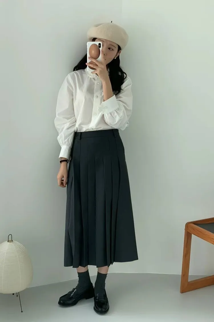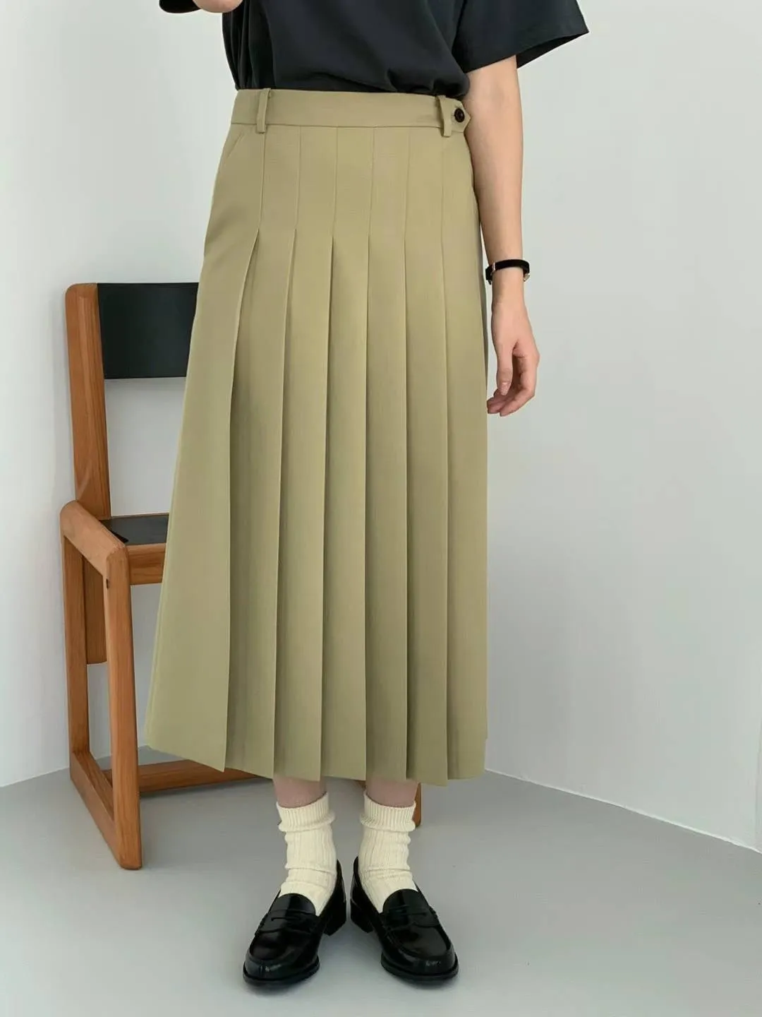 CS007長版秀氣百摺裙 灰 黑 奶茶 XS S M $2050