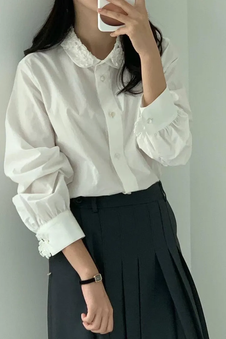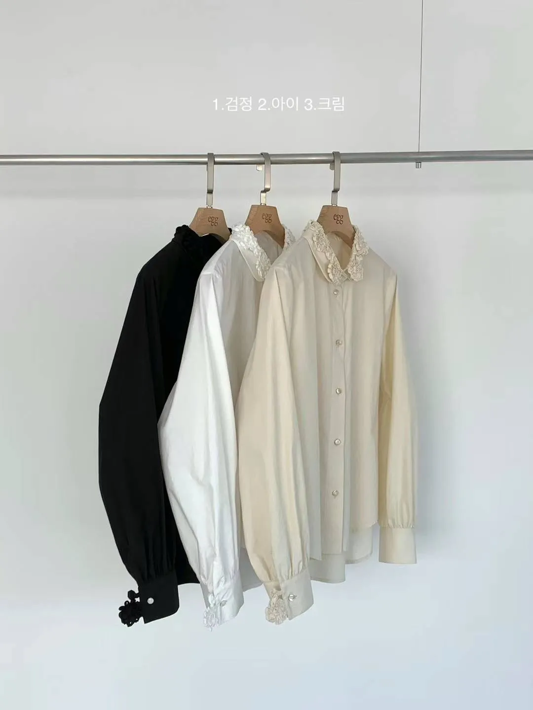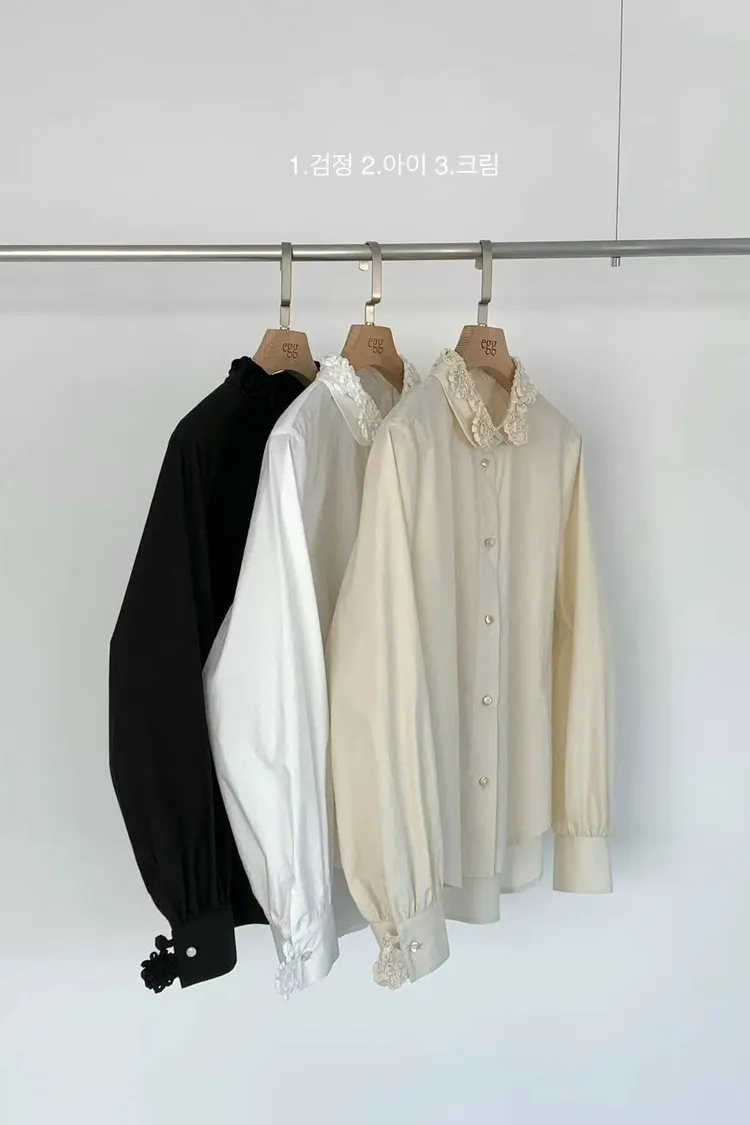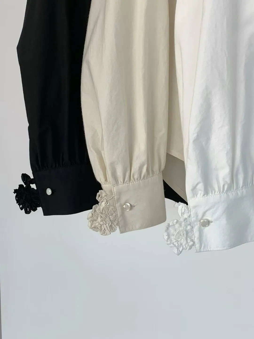 CS013超美高級立體花朵領襯衫 黑 白 米 $1990