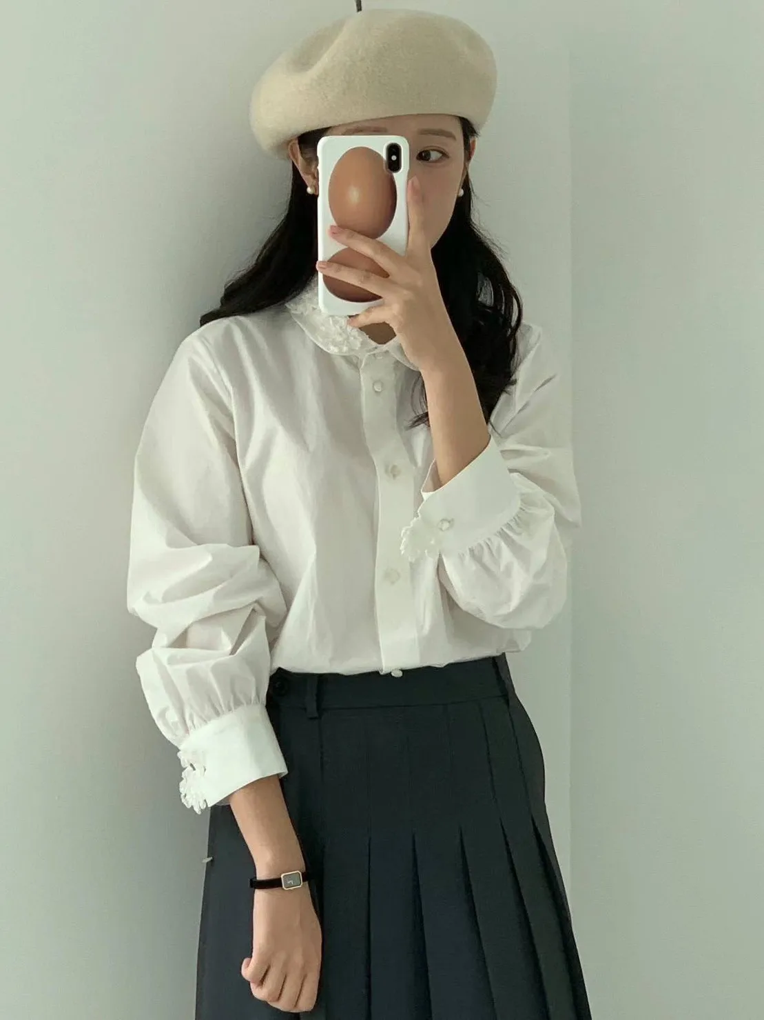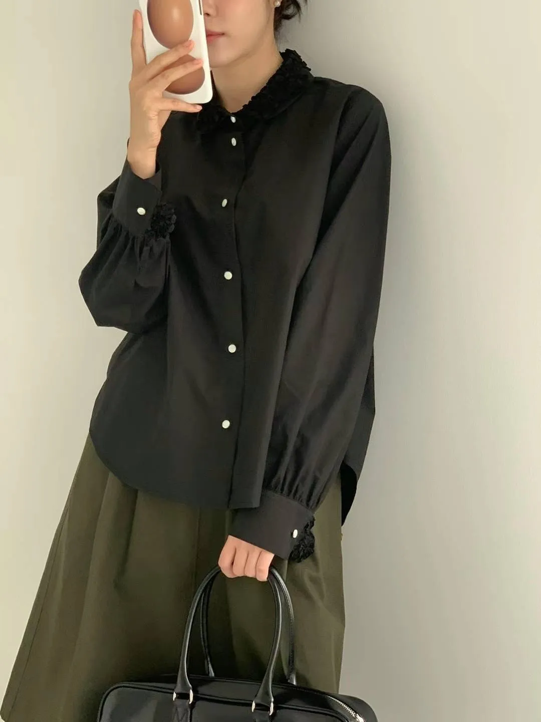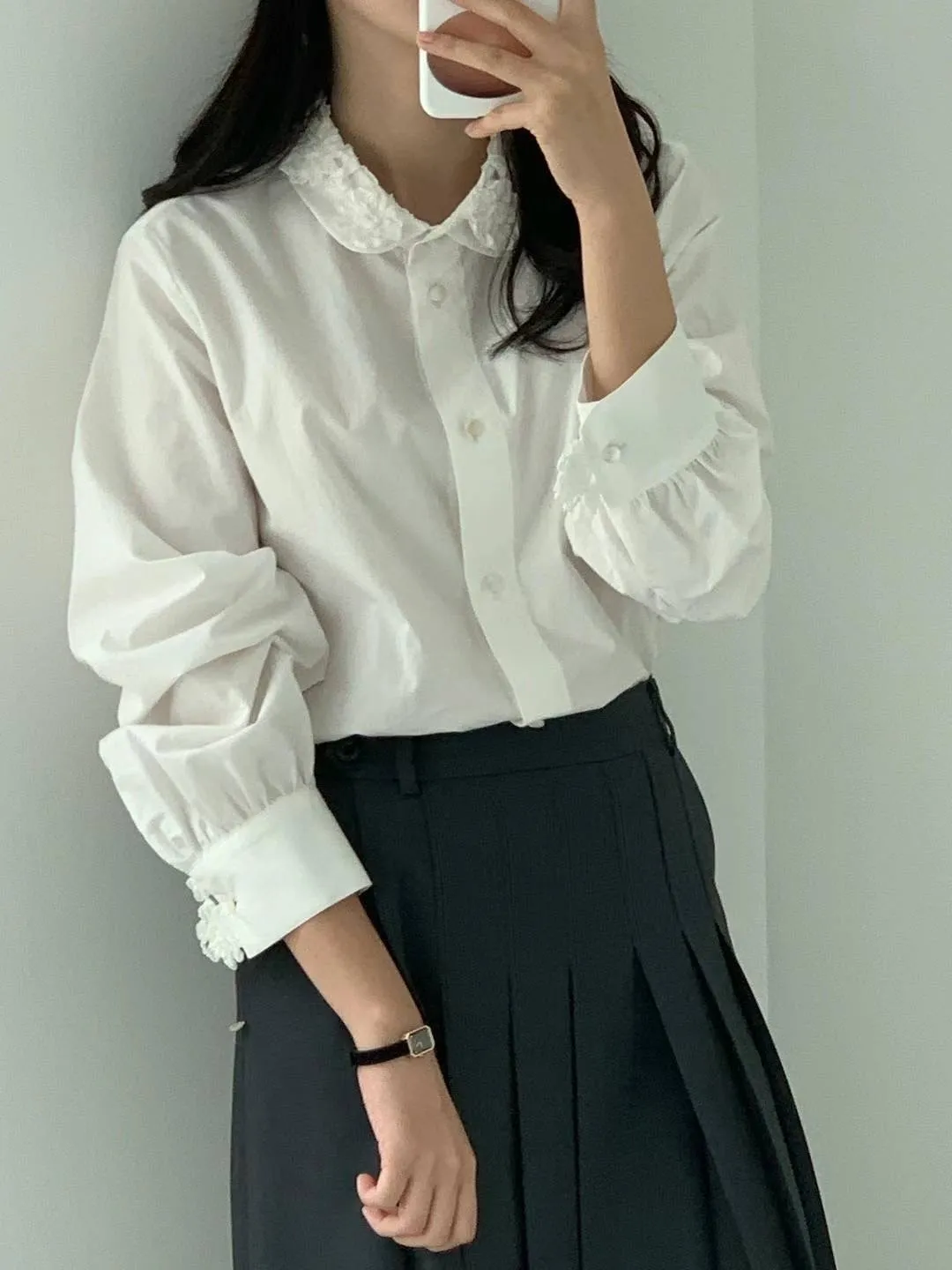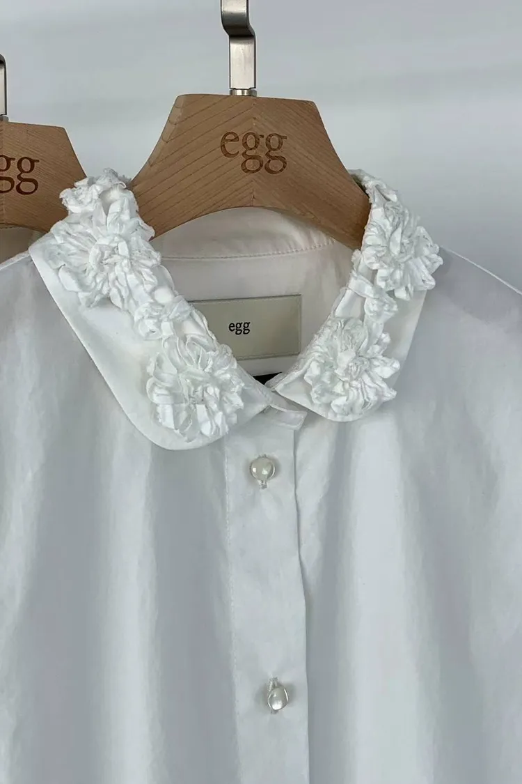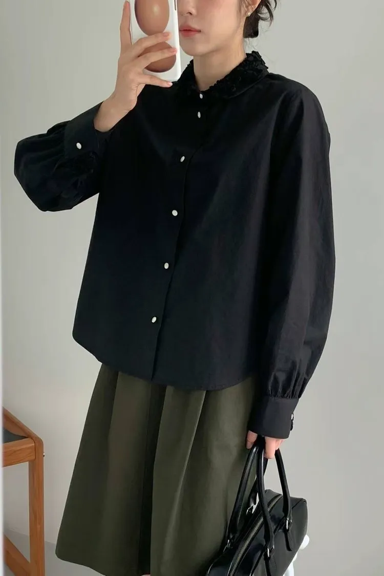 CS013超美高級立體花朵領襯衫 黑 白 米 $1990