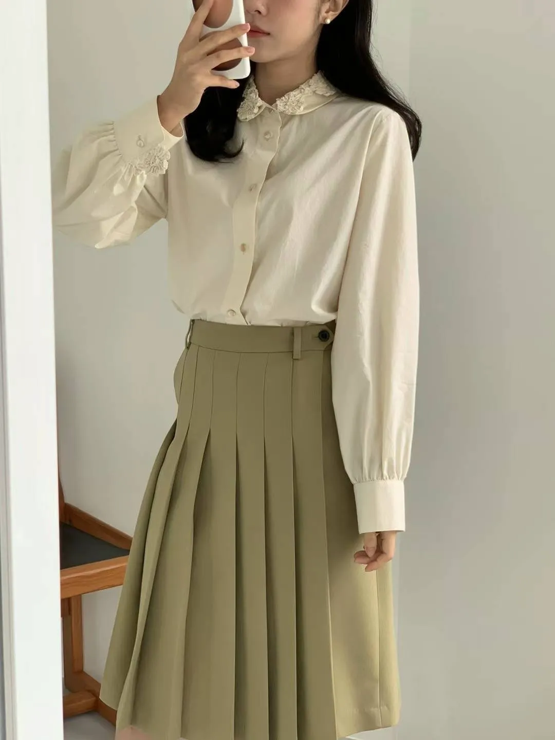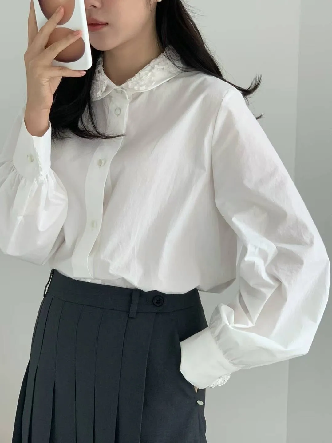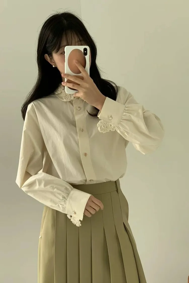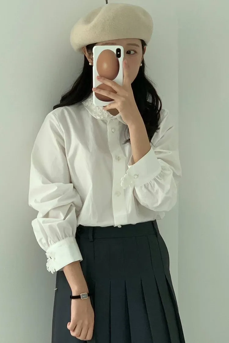 CS013超美高級立體花朵領襯衫 黑 白 米 $1990