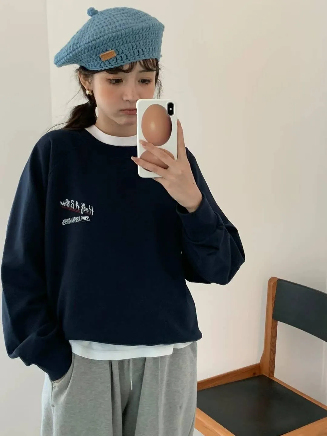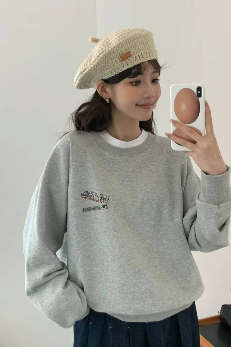 CS014經典款EGG英文紅線大學T 灰 藍 $1220