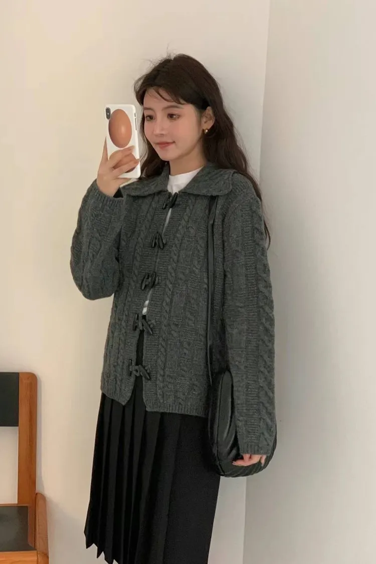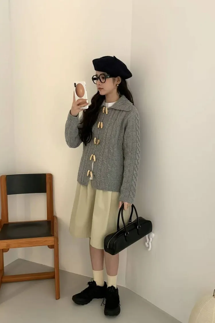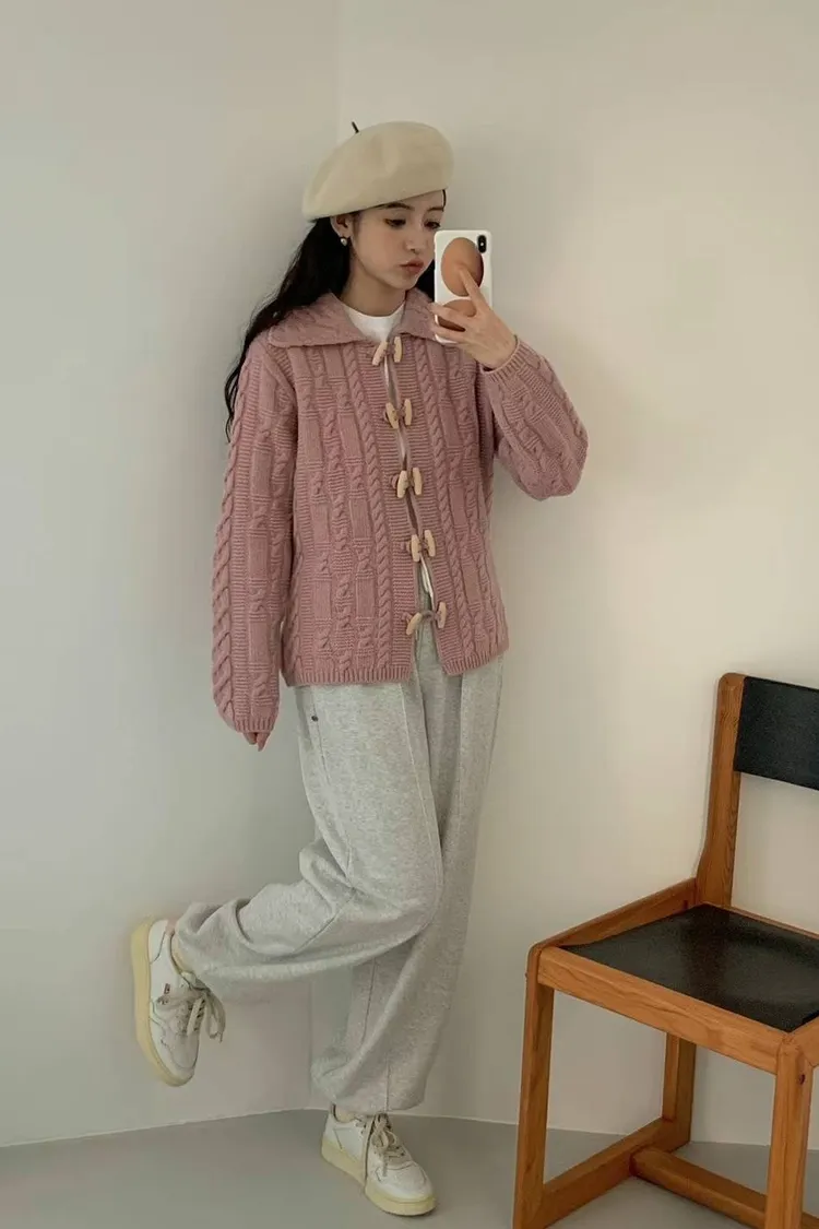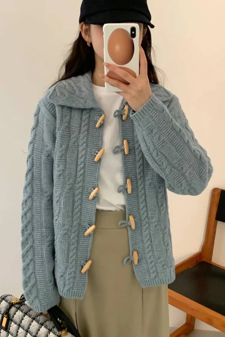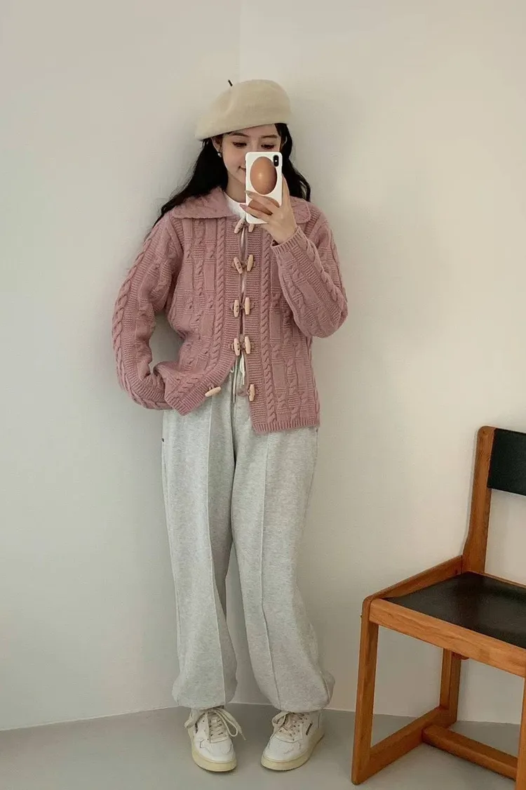 CS017美麗諾喀什米爾羊毛木釦針織外套 粉 藍 米 綠 淺灰 深灰 $2320