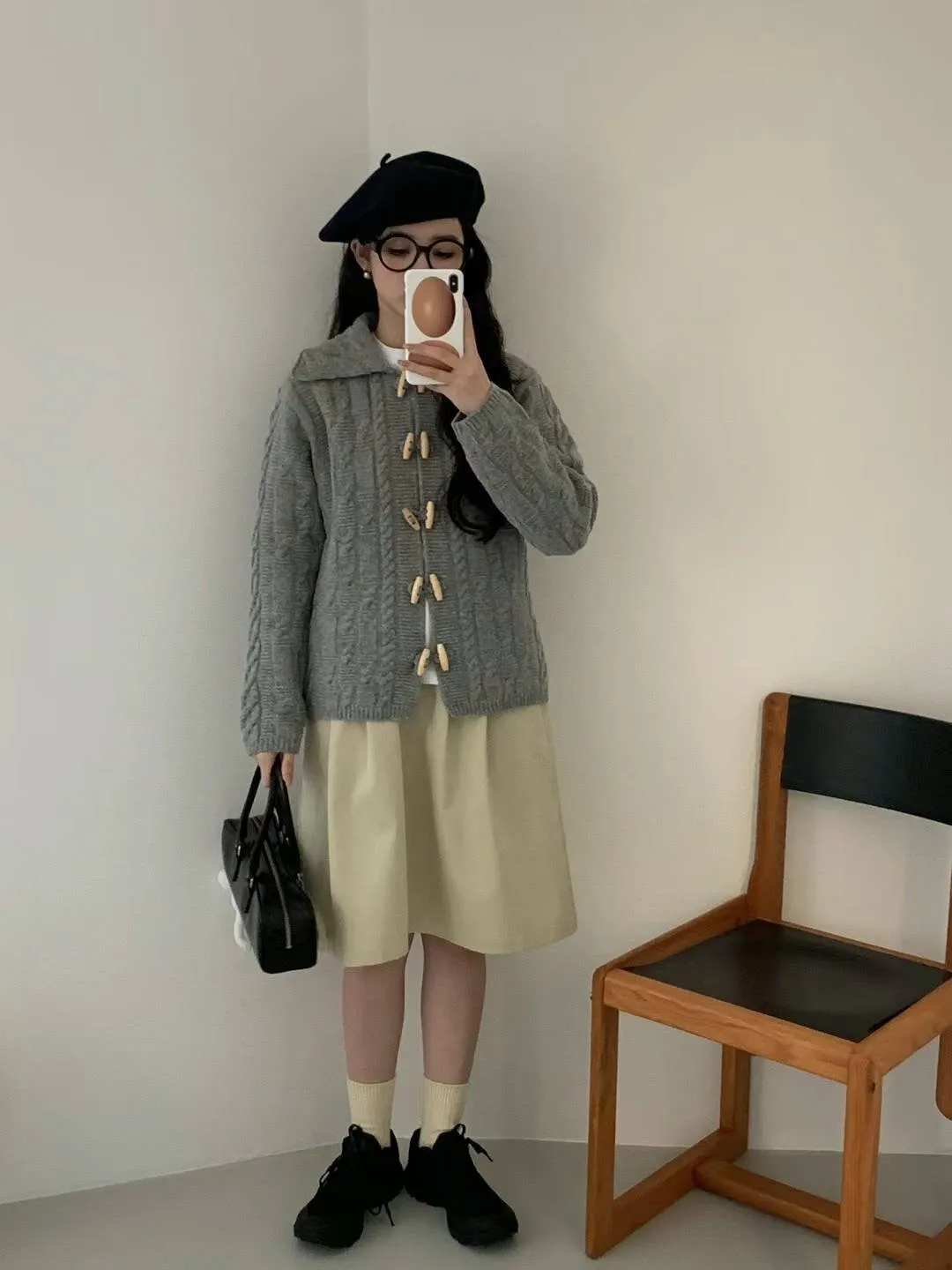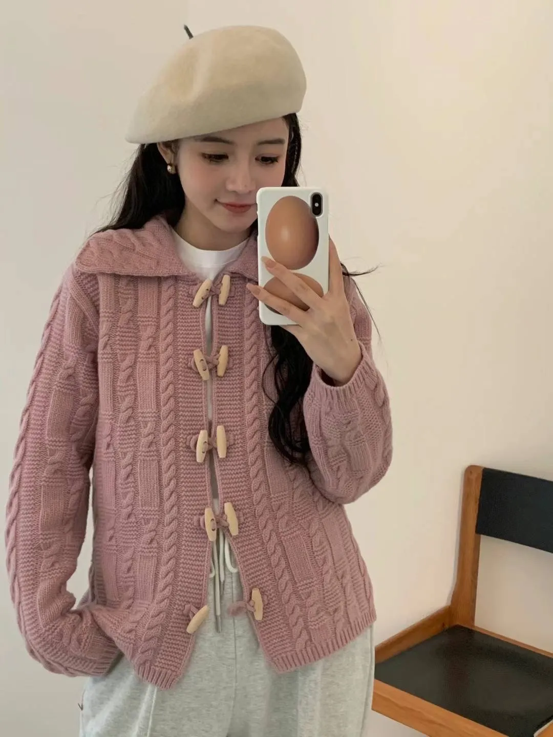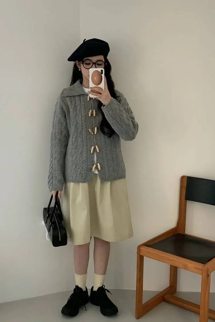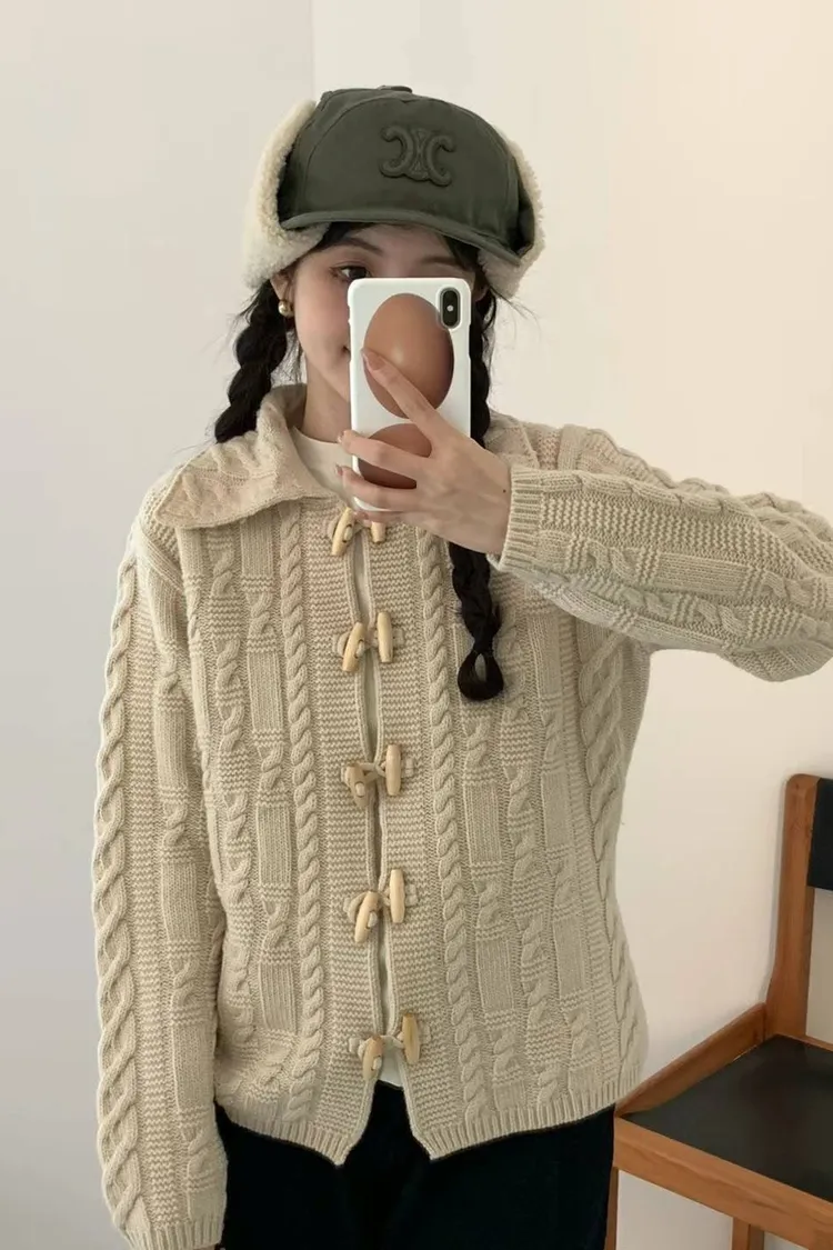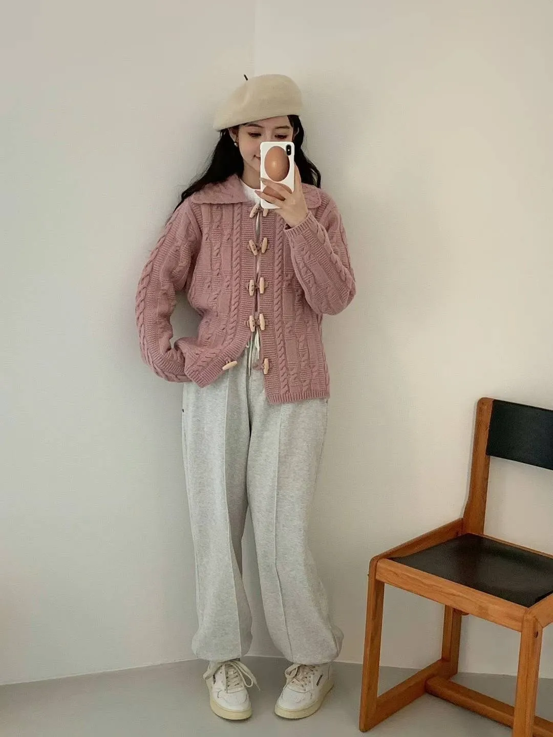 CS017美麗諾喀什米爾羊毛木釦針織外套 粉 藍 米 綠 淺灰 深灰 $2320