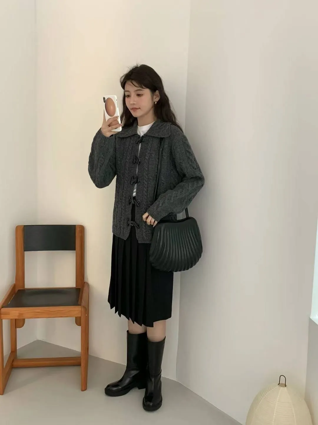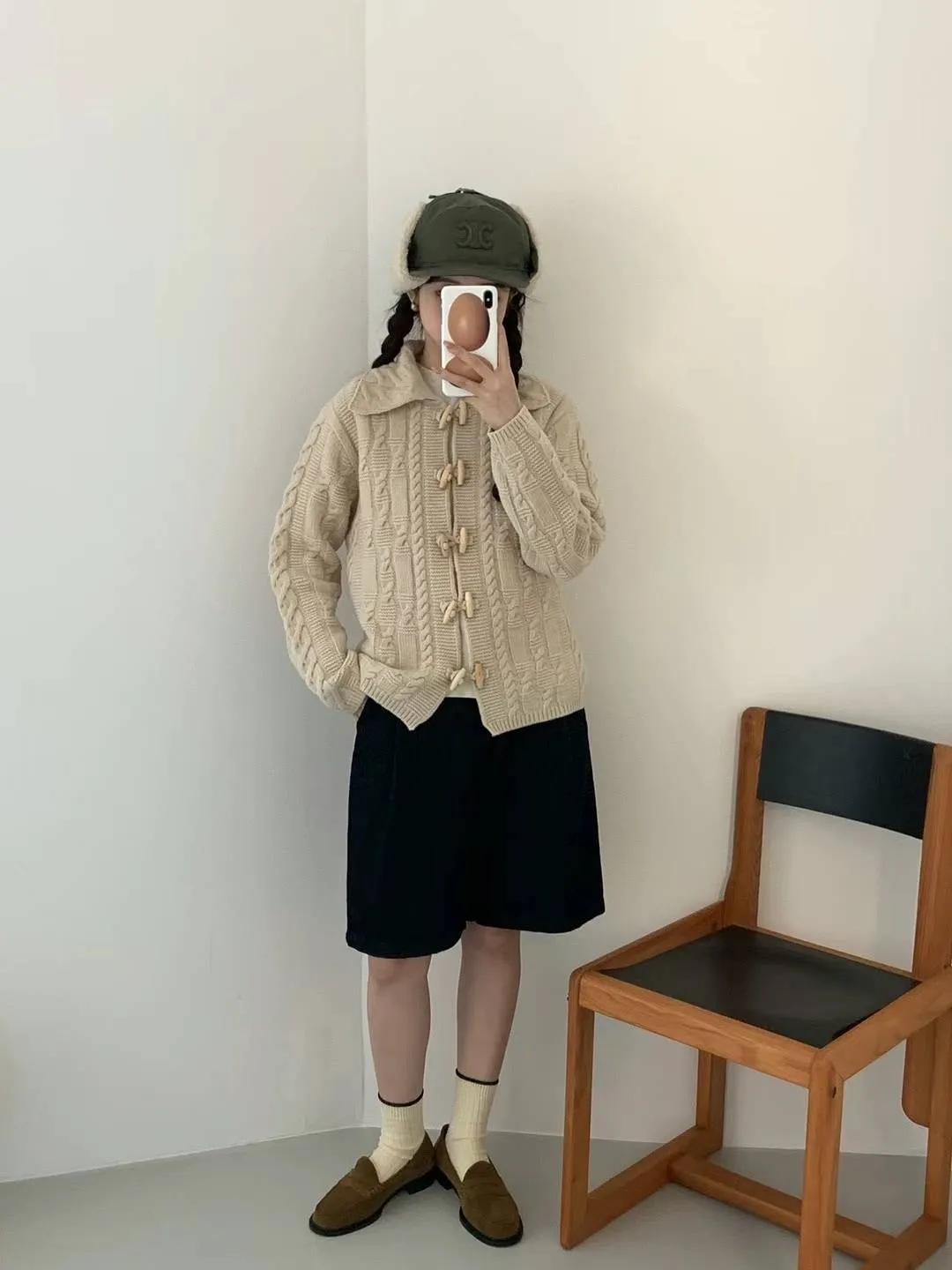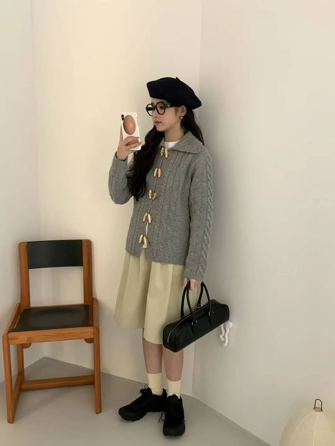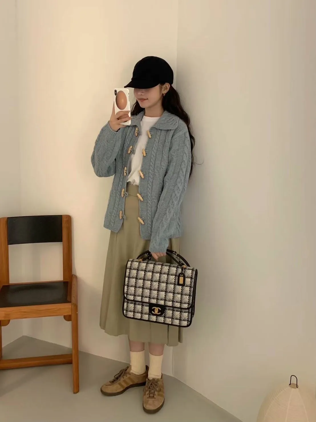 CS017美麗諾喀什米爾羊毛木釦針織外套 粉 藍 米 綠 淺灰 深灰 $2320