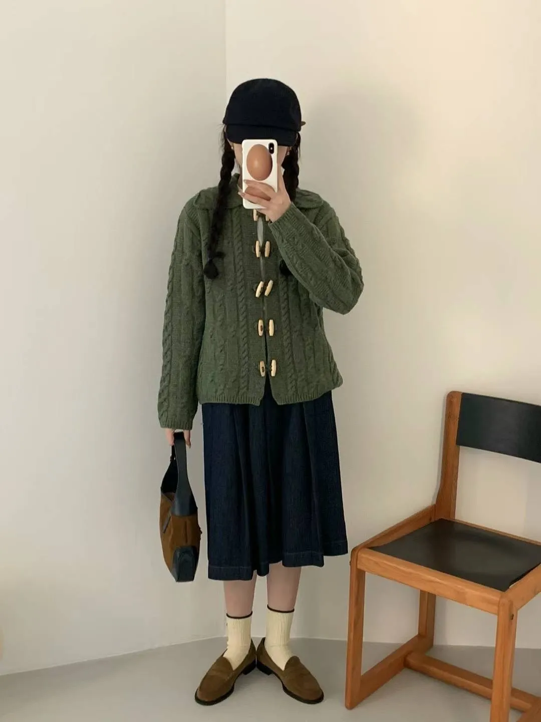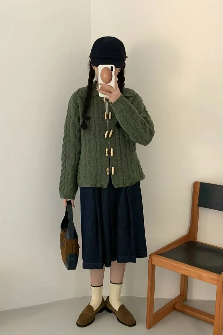 美麗諾羊毛+喀什米爾羊毛木頭質感釦 蠟筆混繪感美色調 敏肌有感