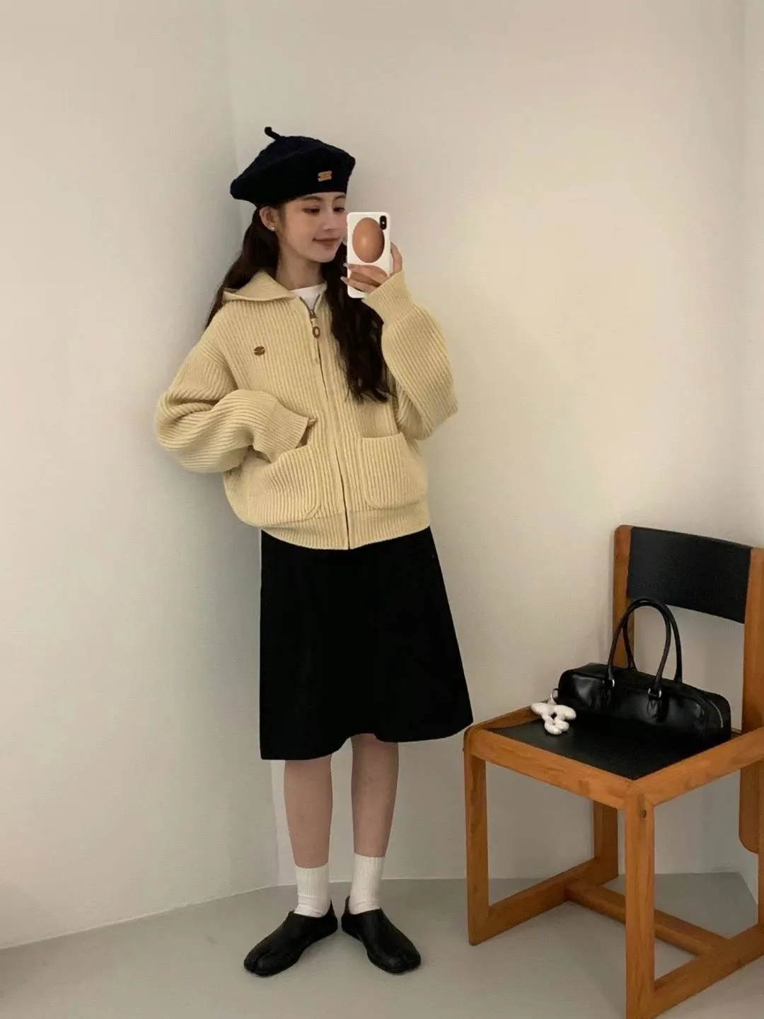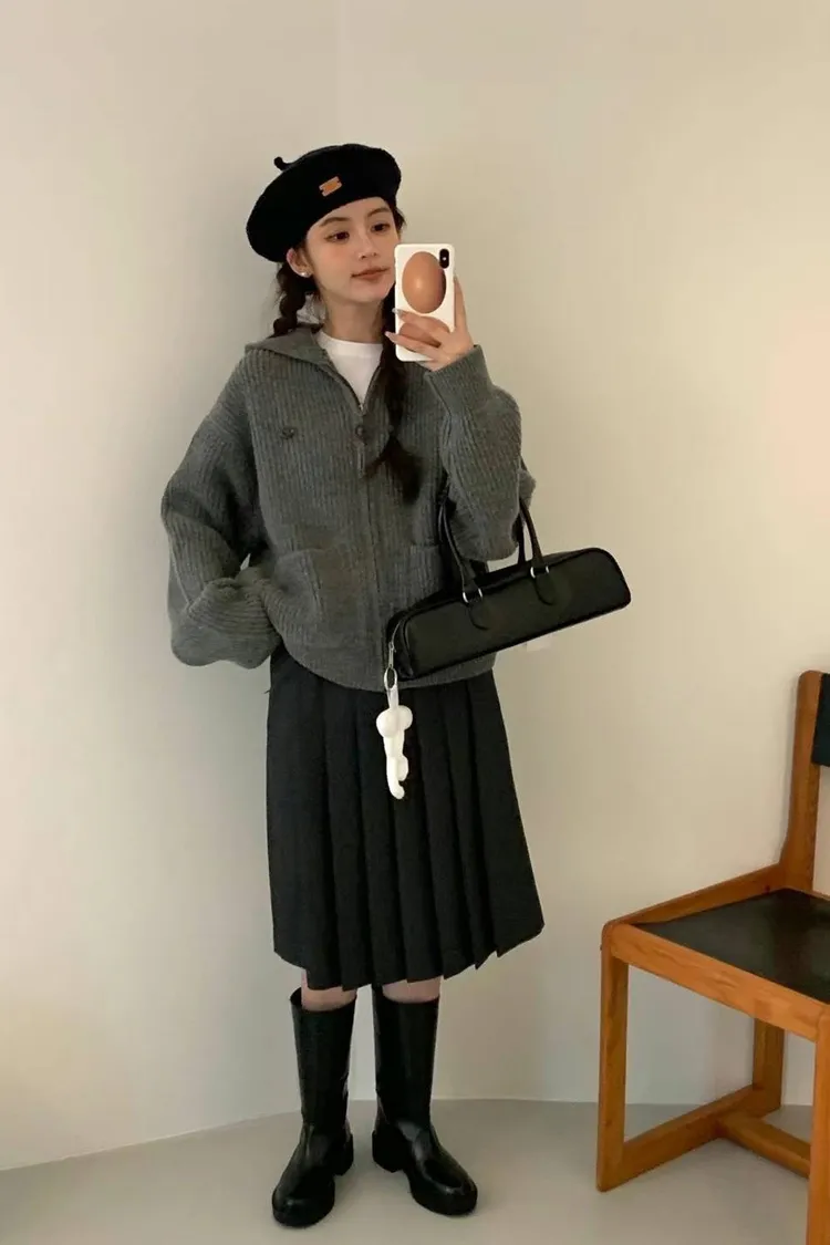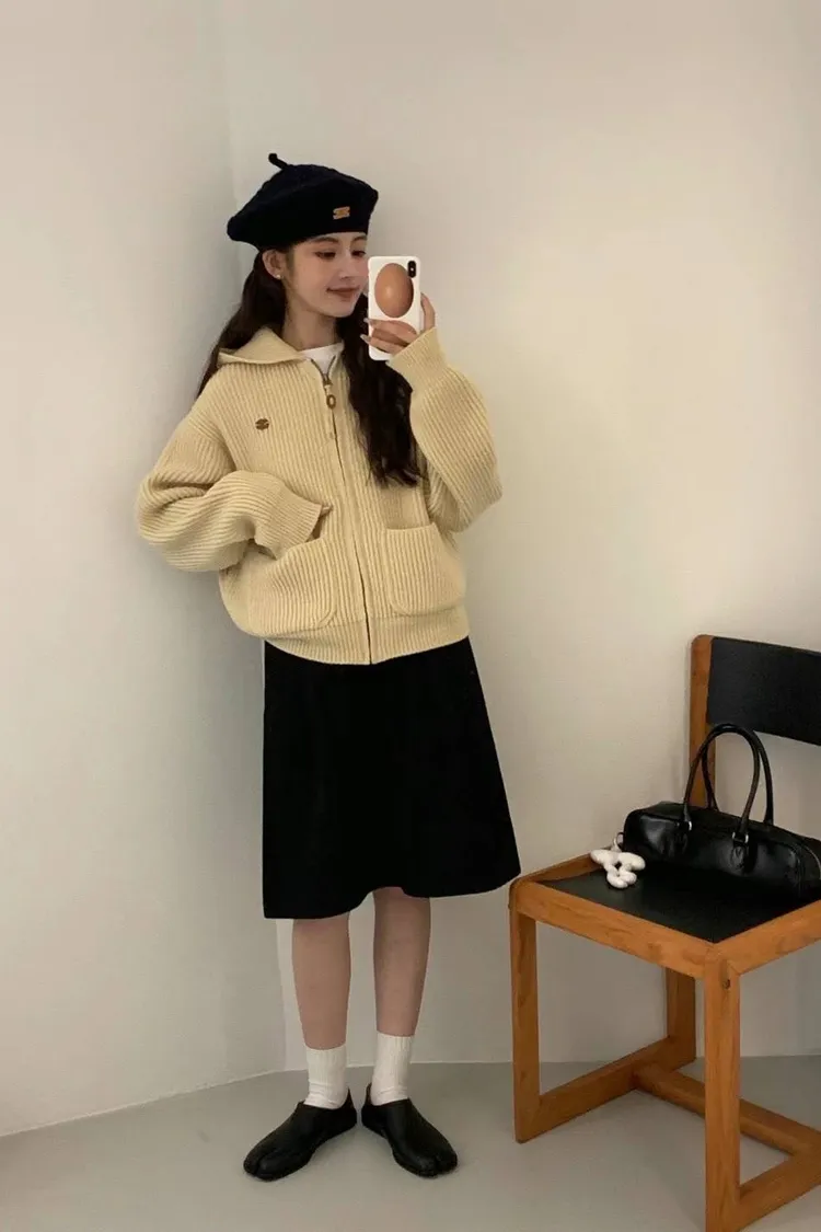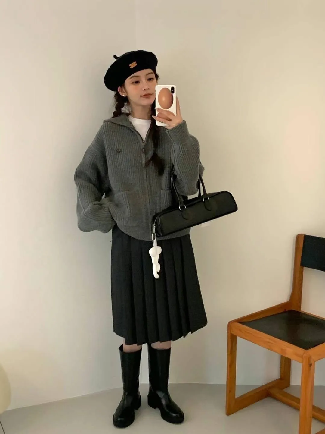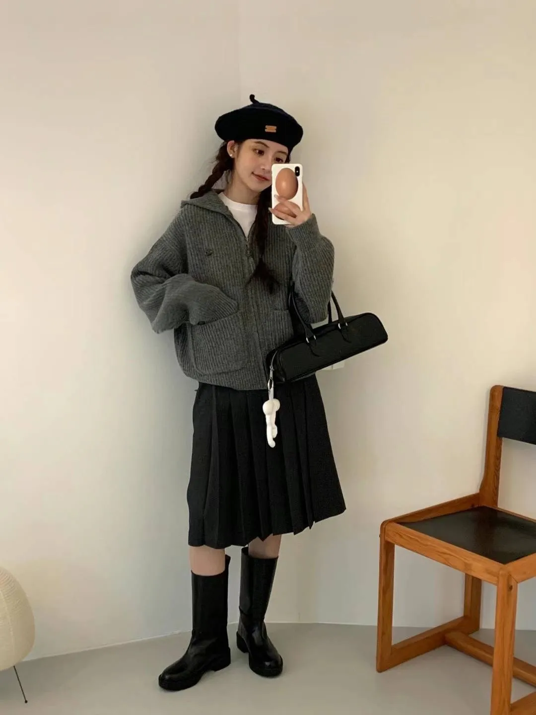 CS021熱銷款羊毛雙口袋坑條小標針織連帽外套 奶茶 黃 淺灰 深灰 $2560