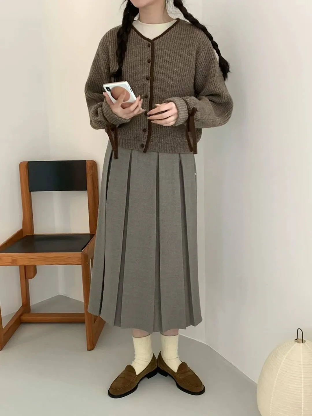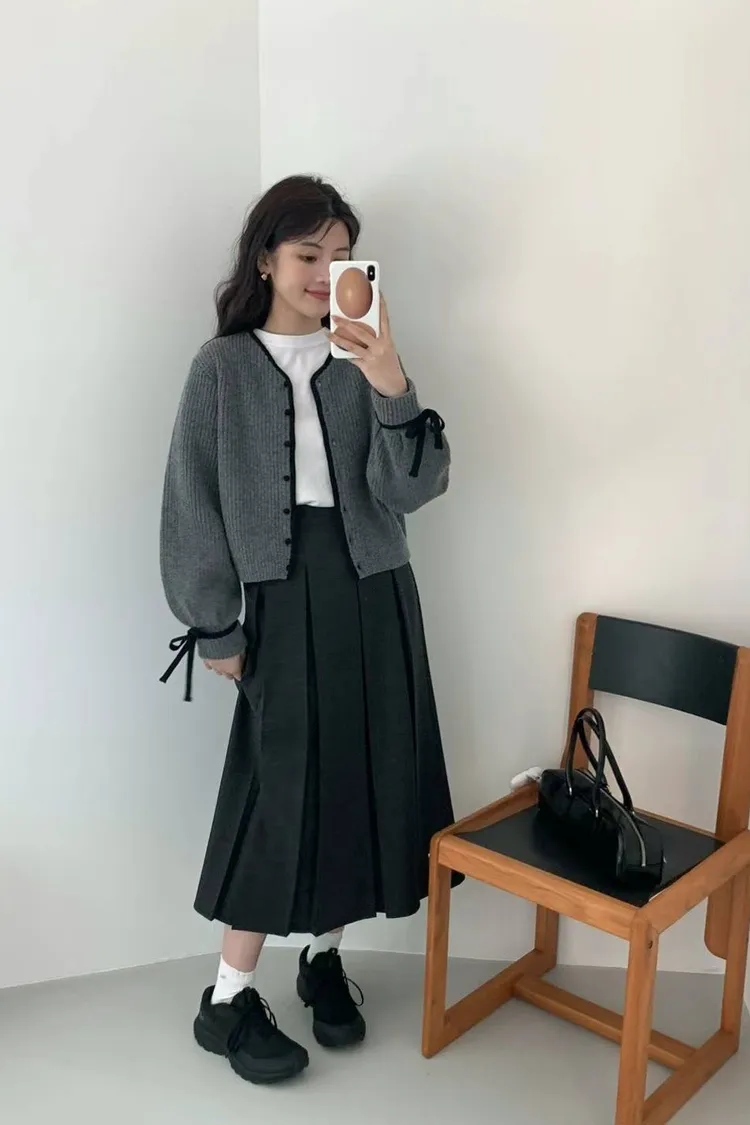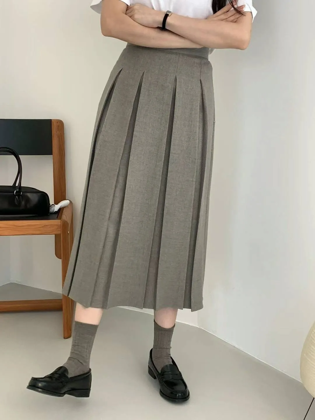 CS032新款高級面料羊毛縲縈寬百褶裙 鐵灰 灰藍 奶茶 XS S M $1920 羊毛+縲縈+聚酯 無口袋 西裝面料感 義大利織物 花花直播穿XS很合身以下奶茶穿搭👇🏻 以下灰藍穿搭👇🏻 以下鐵灰穿搭👇🏻 以下顏色 灰藍>奶茶>鐵灰