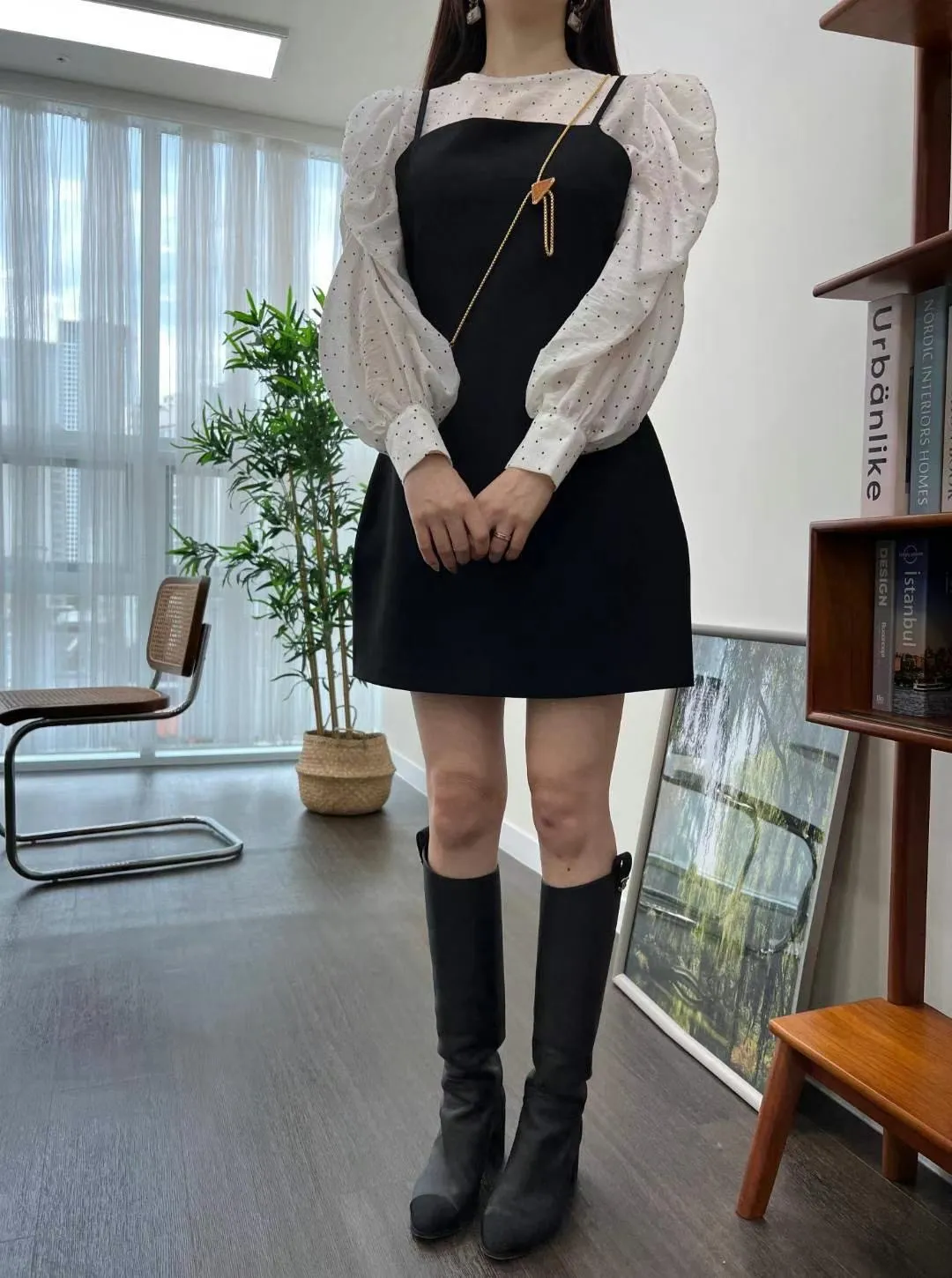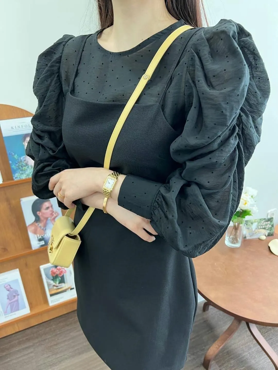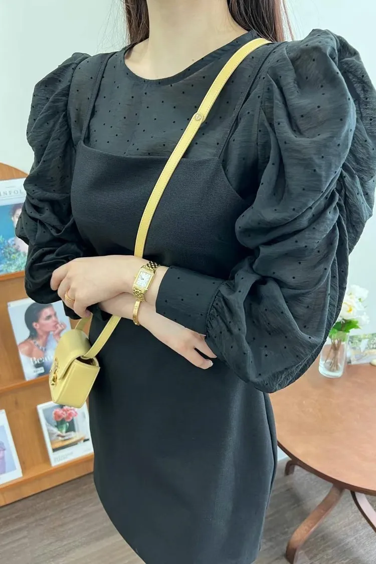 CS035薄款透光感點點輕盈美衣服 白 黑 $820