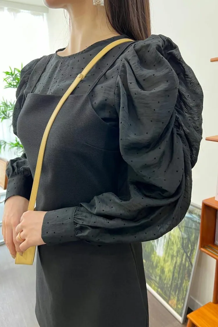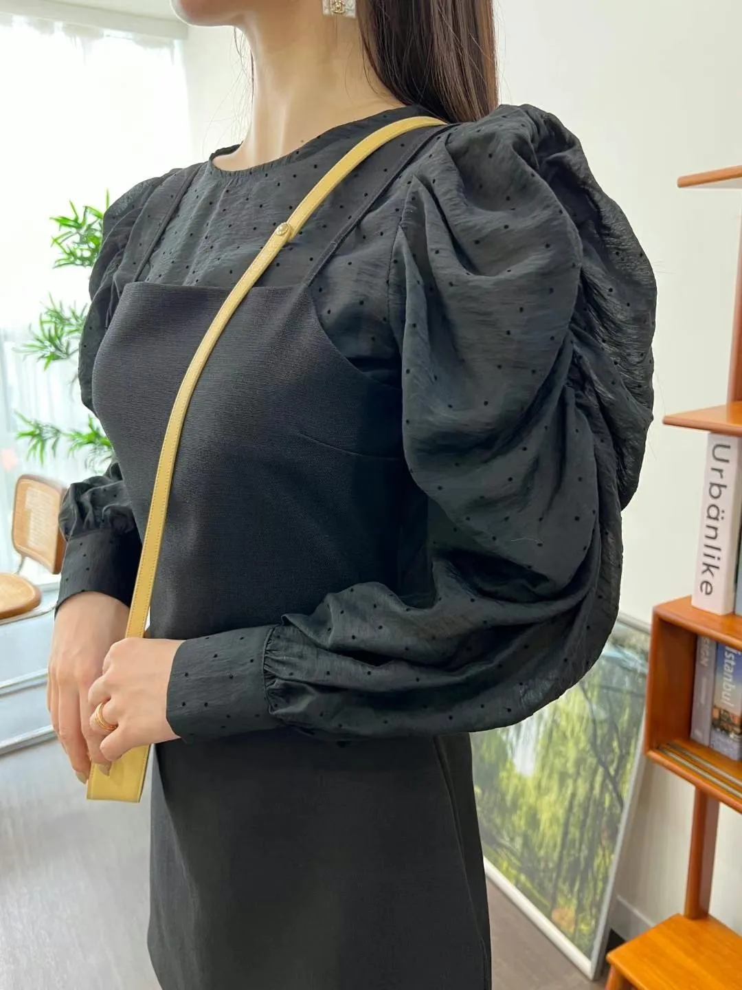 薄款輕盈 透光感 公主抓皺袖 秀氣不顯壯 面料微光澤