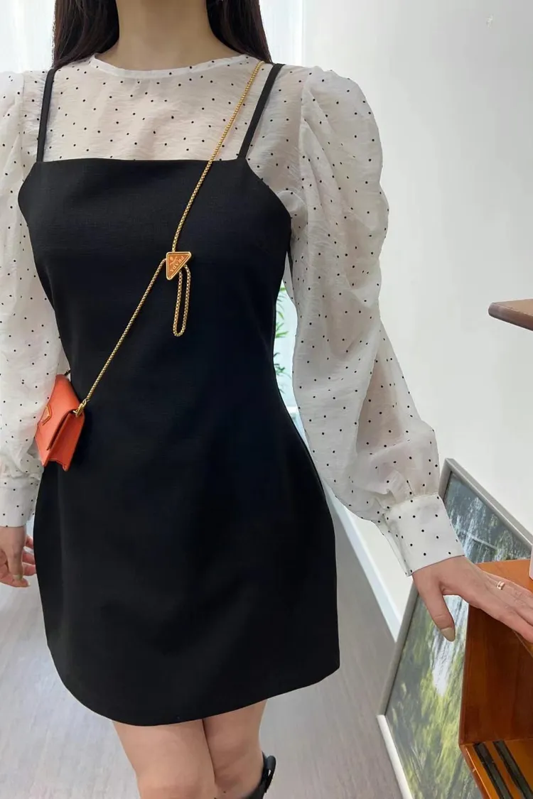 CS036細肩帶黑色平口顯瘦腰洋裝 $940