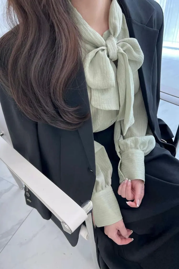 CS039氣質典雅胸薄款綁帶上衣 白 黑 綠 奶茶 $860