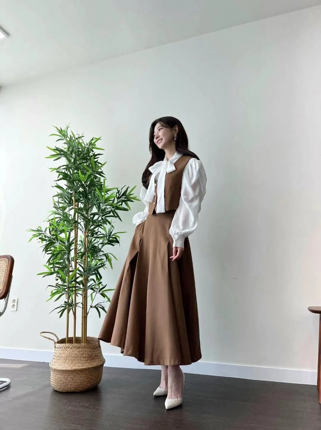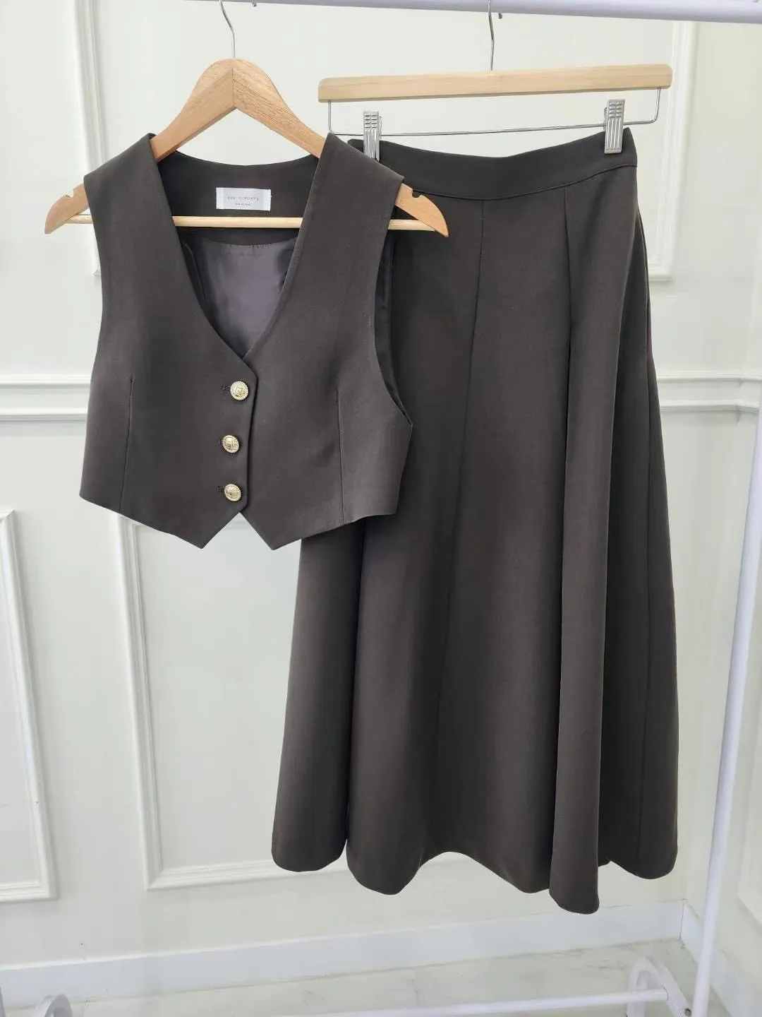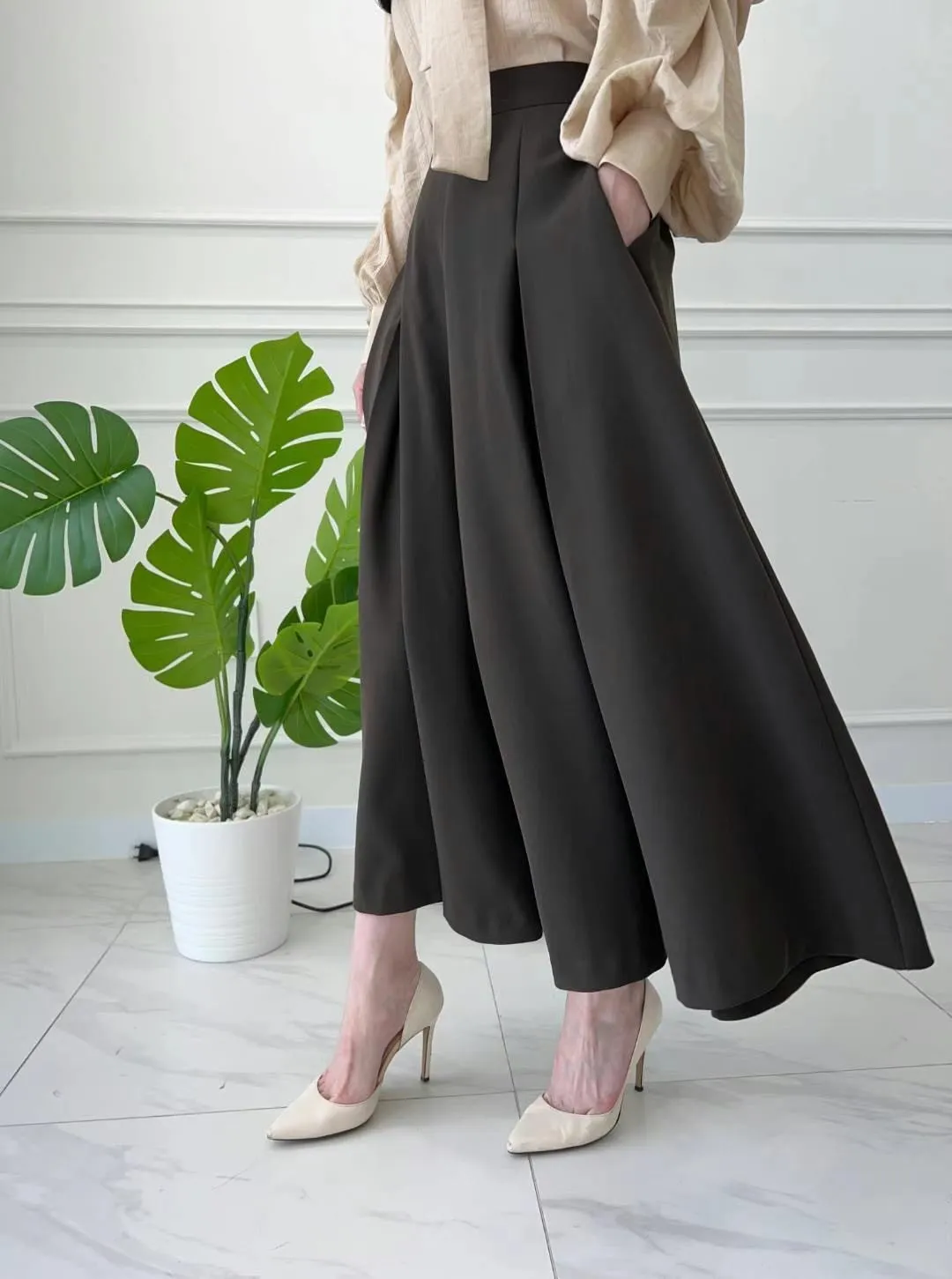 CS041套裝中的質感寬百褶裙 灰 咖 $1100