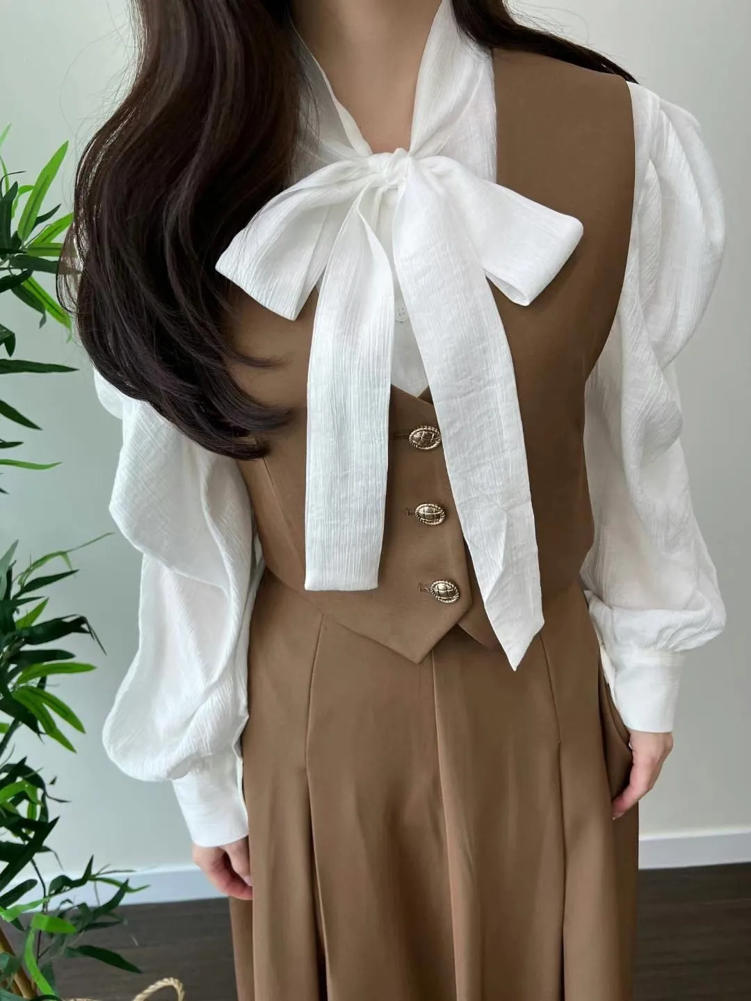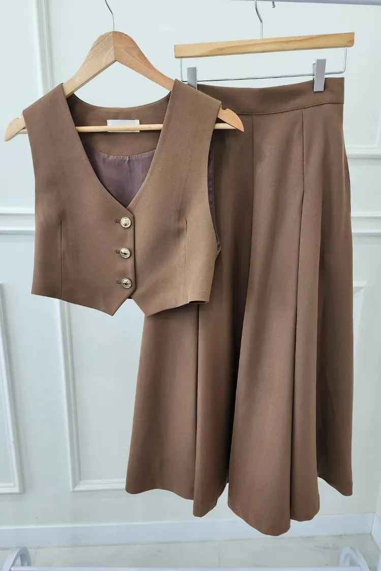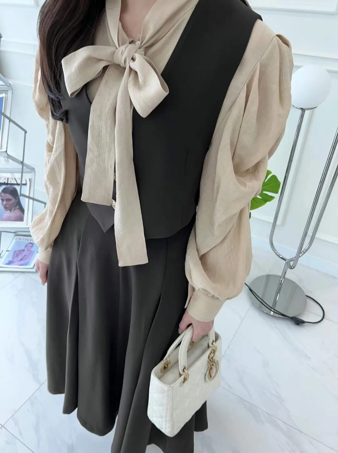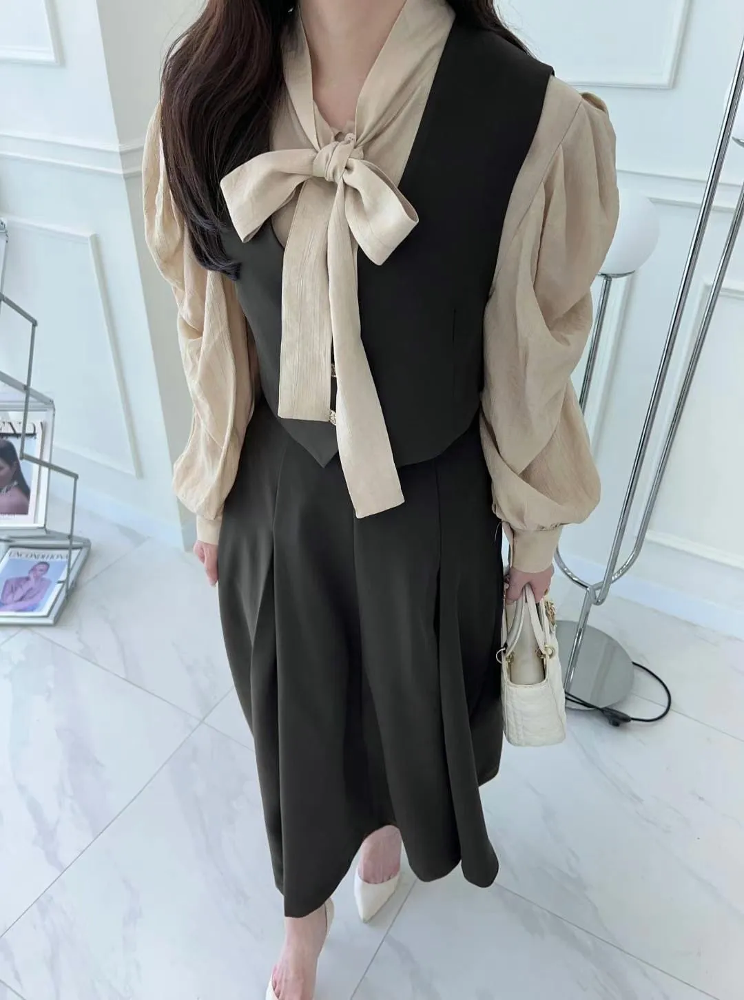 CS041套裝中的質感寬百褶裙 灰 咖 $1100