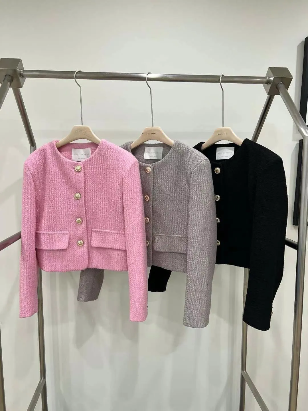 CS044套裝中的小香風毛呢短裙 粉 灰 黑 $790