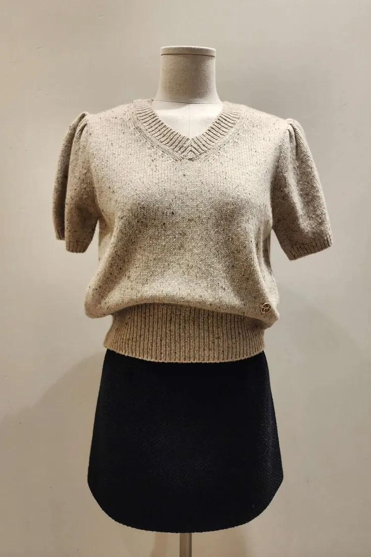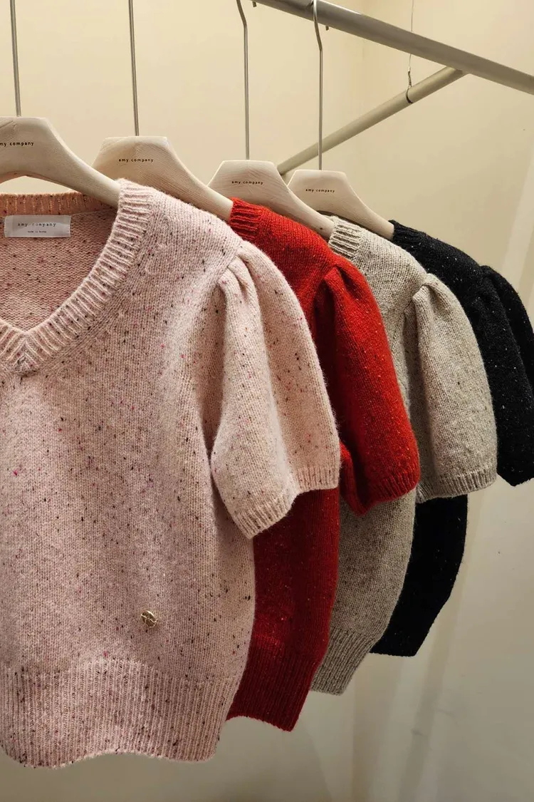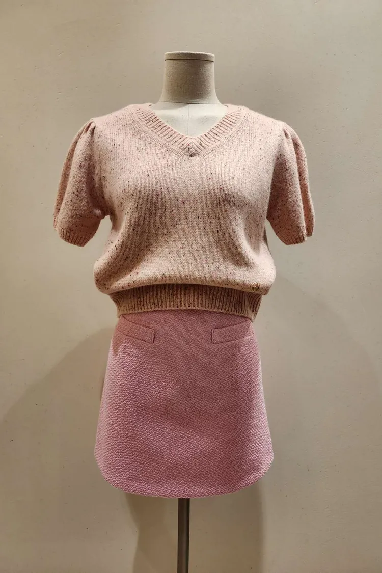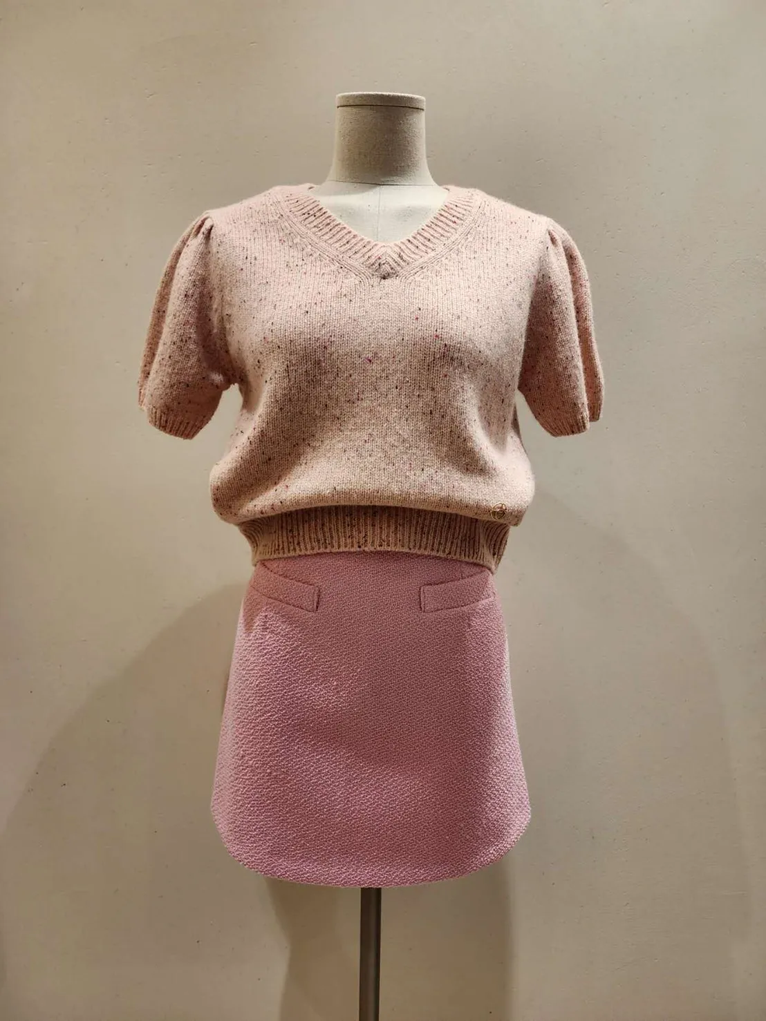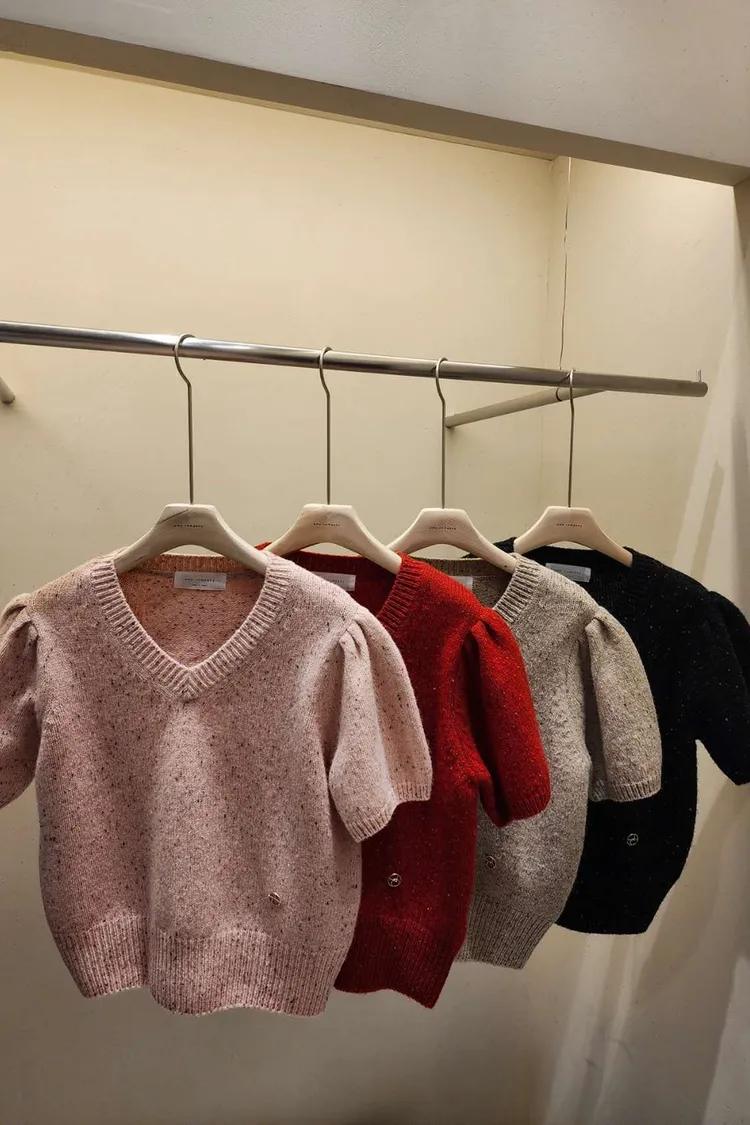 CS046新款混織羊毛小金標短袖上衣 粉 紅 黑 奶茶 $1050