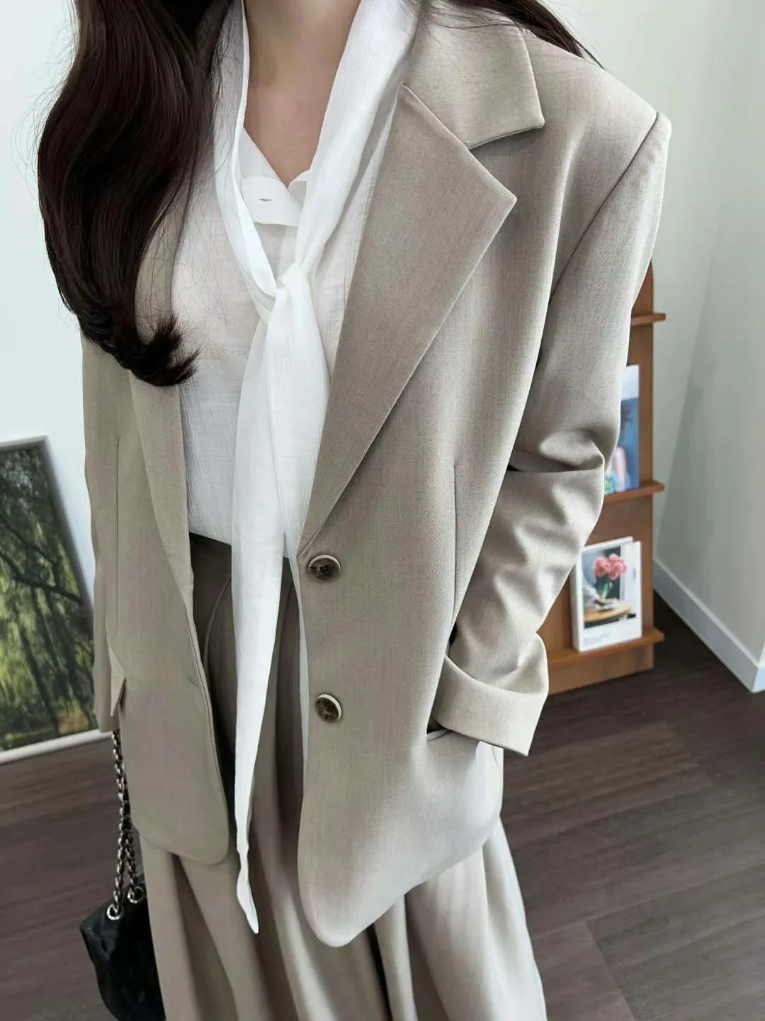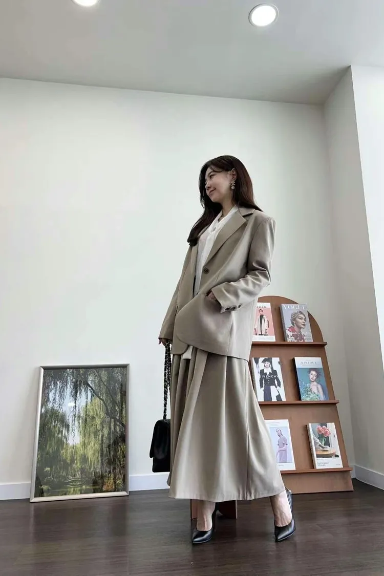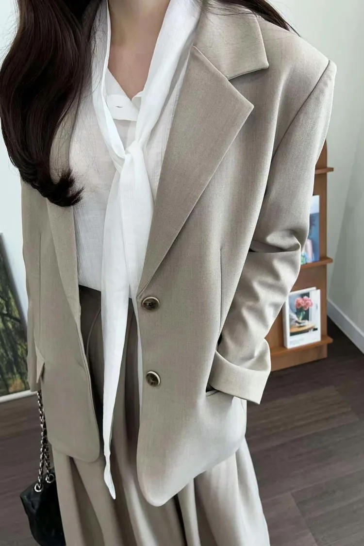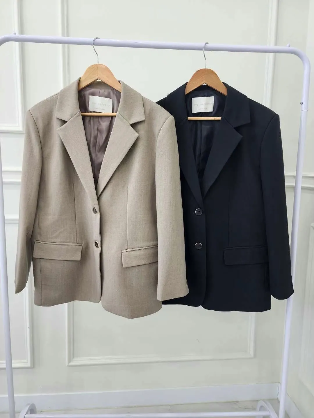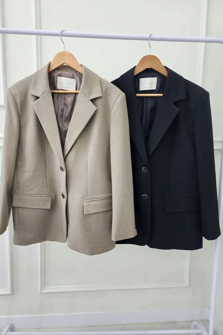 CS048質感韓款西裝外套 奶茶 黑 $1399