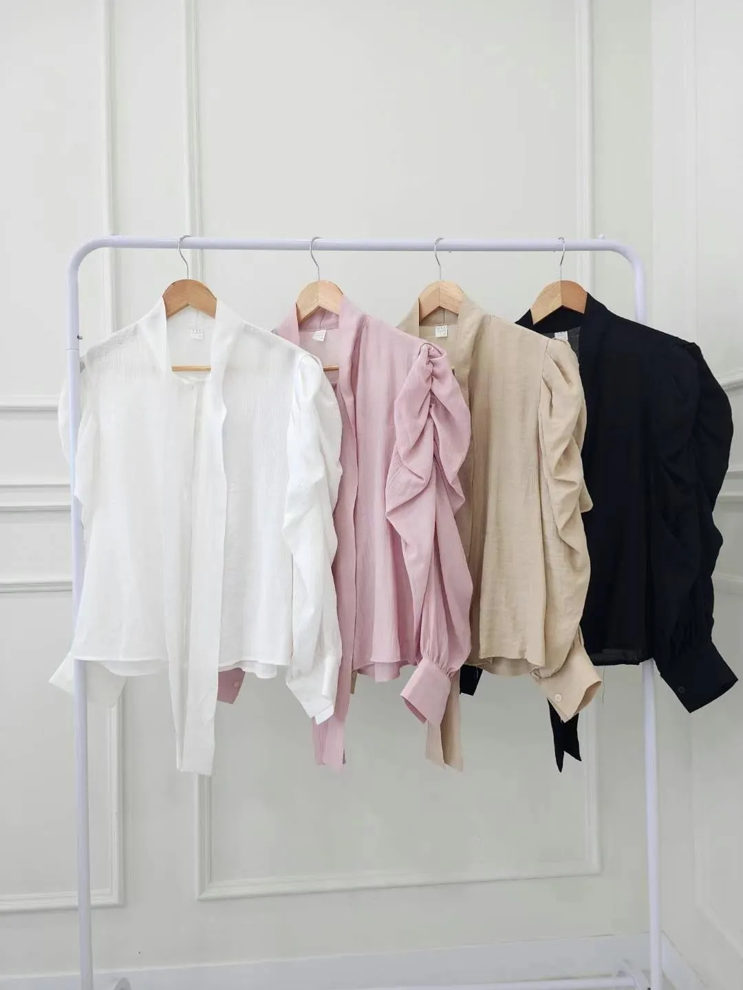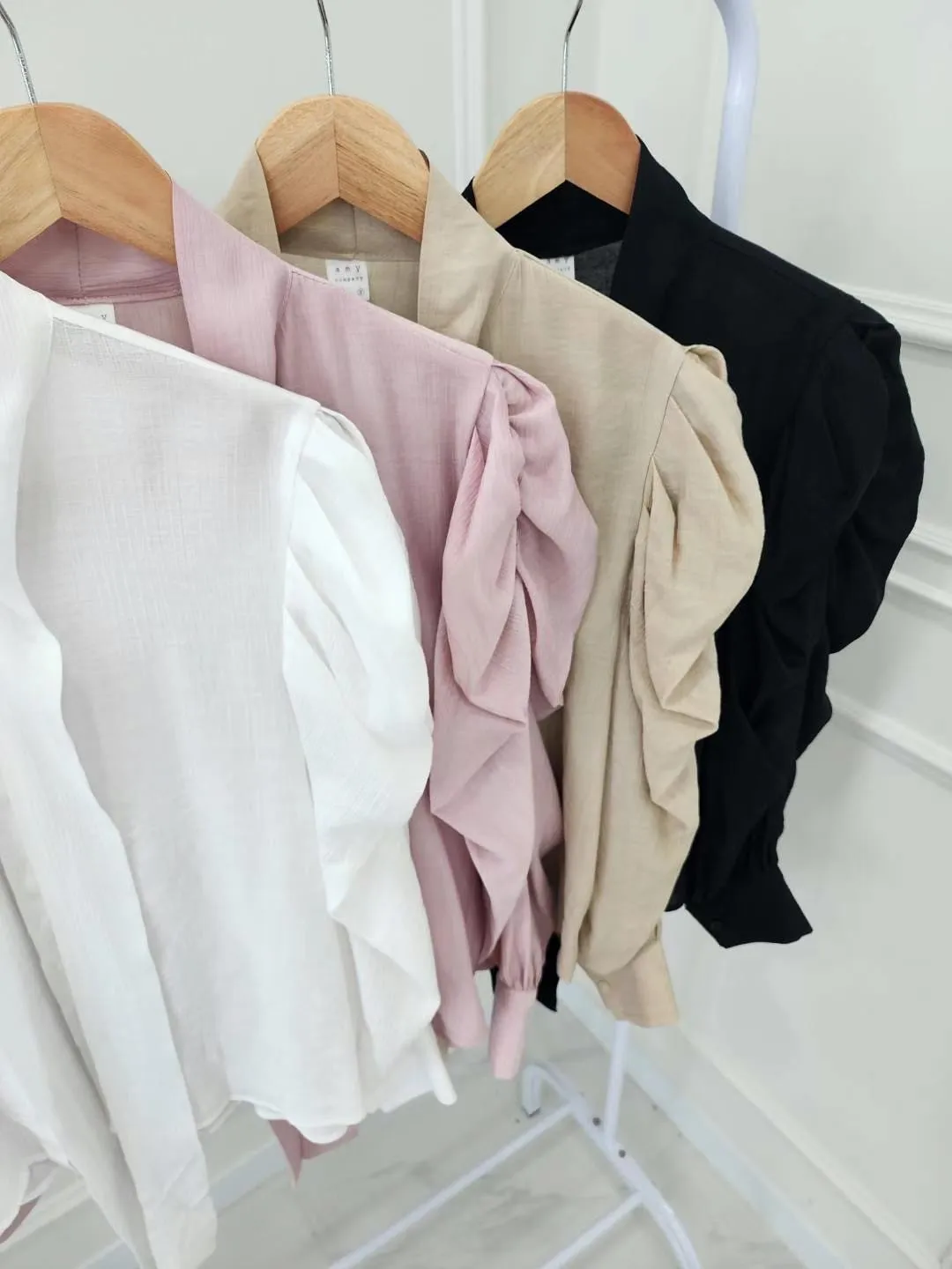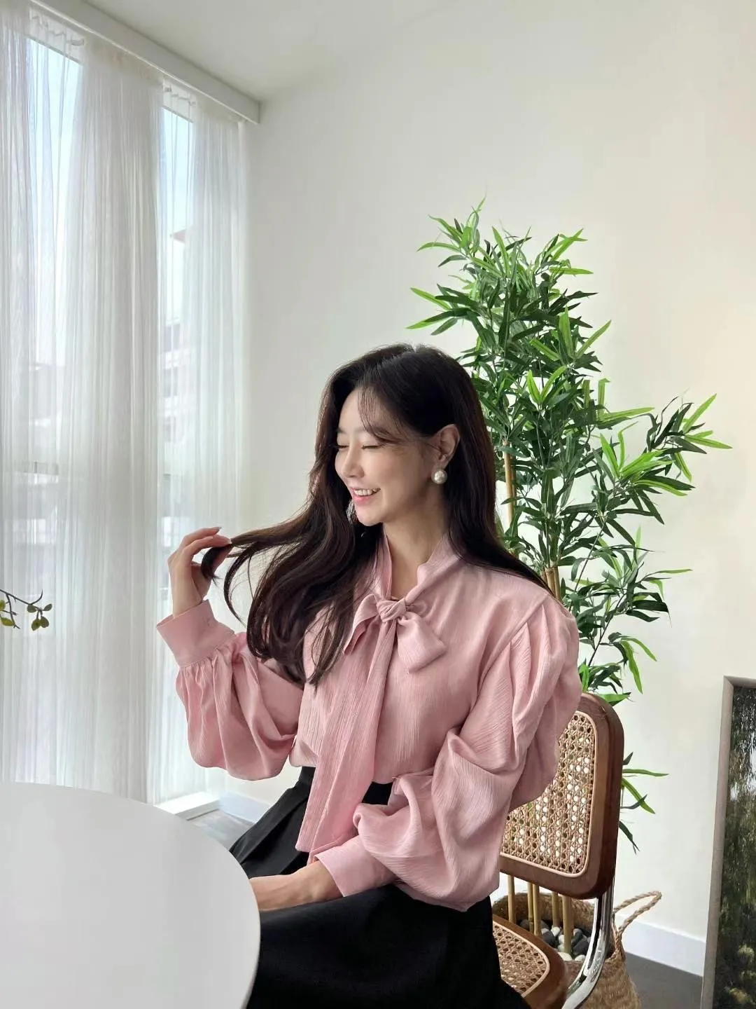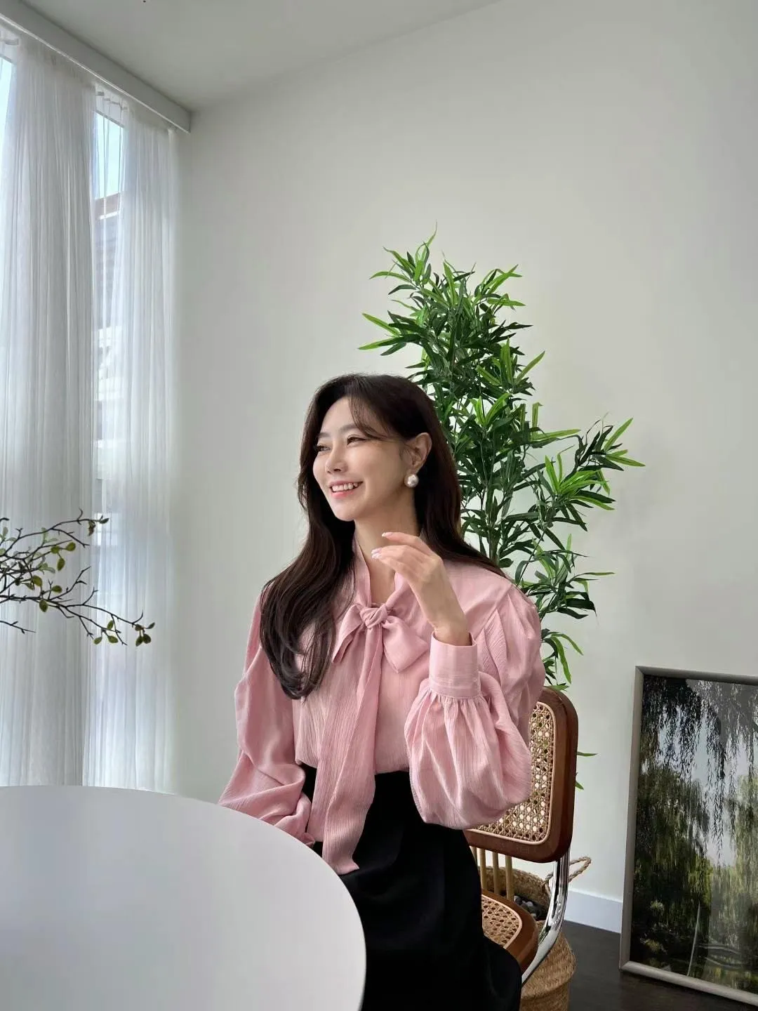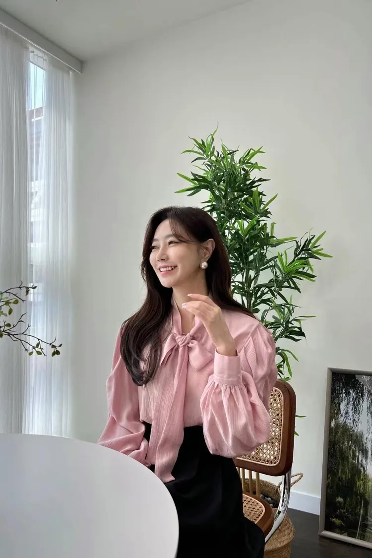 CS049薄款立體設計美袖胸綁帶上衣 粉 黑 奶茶 $820