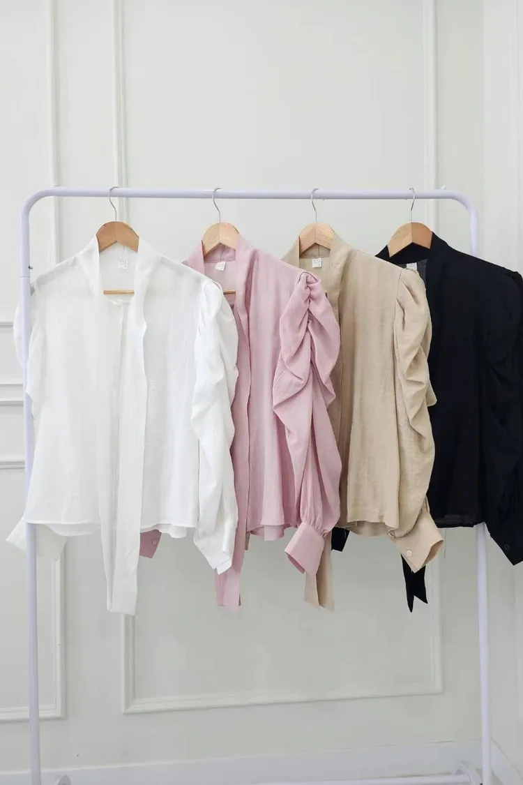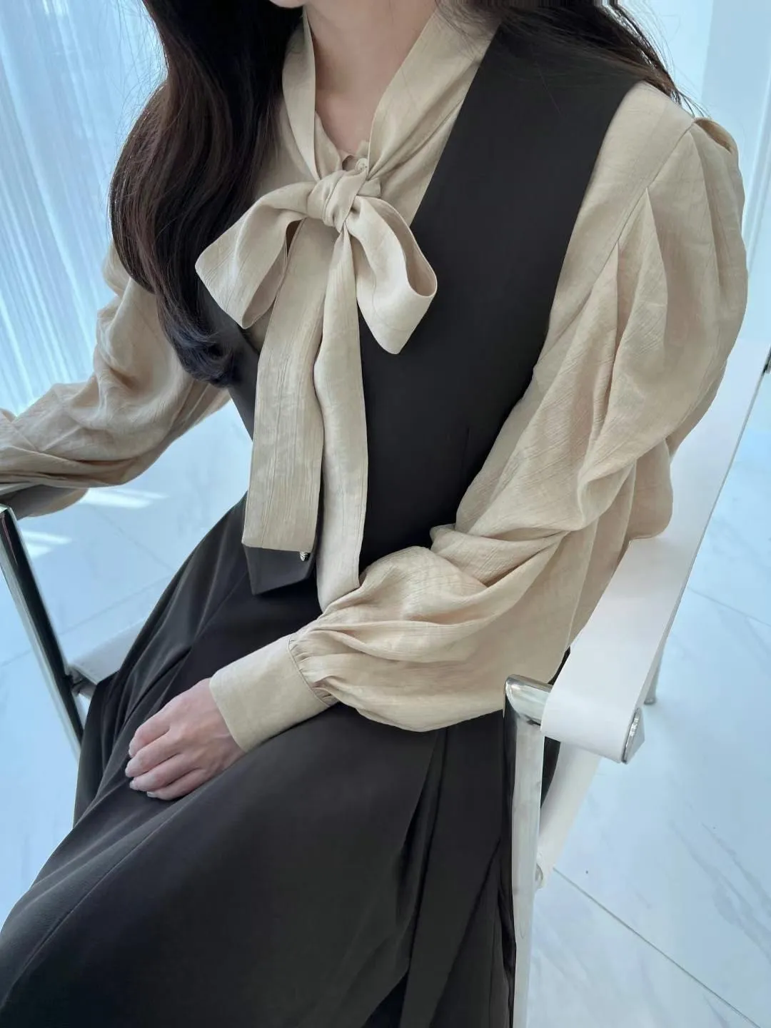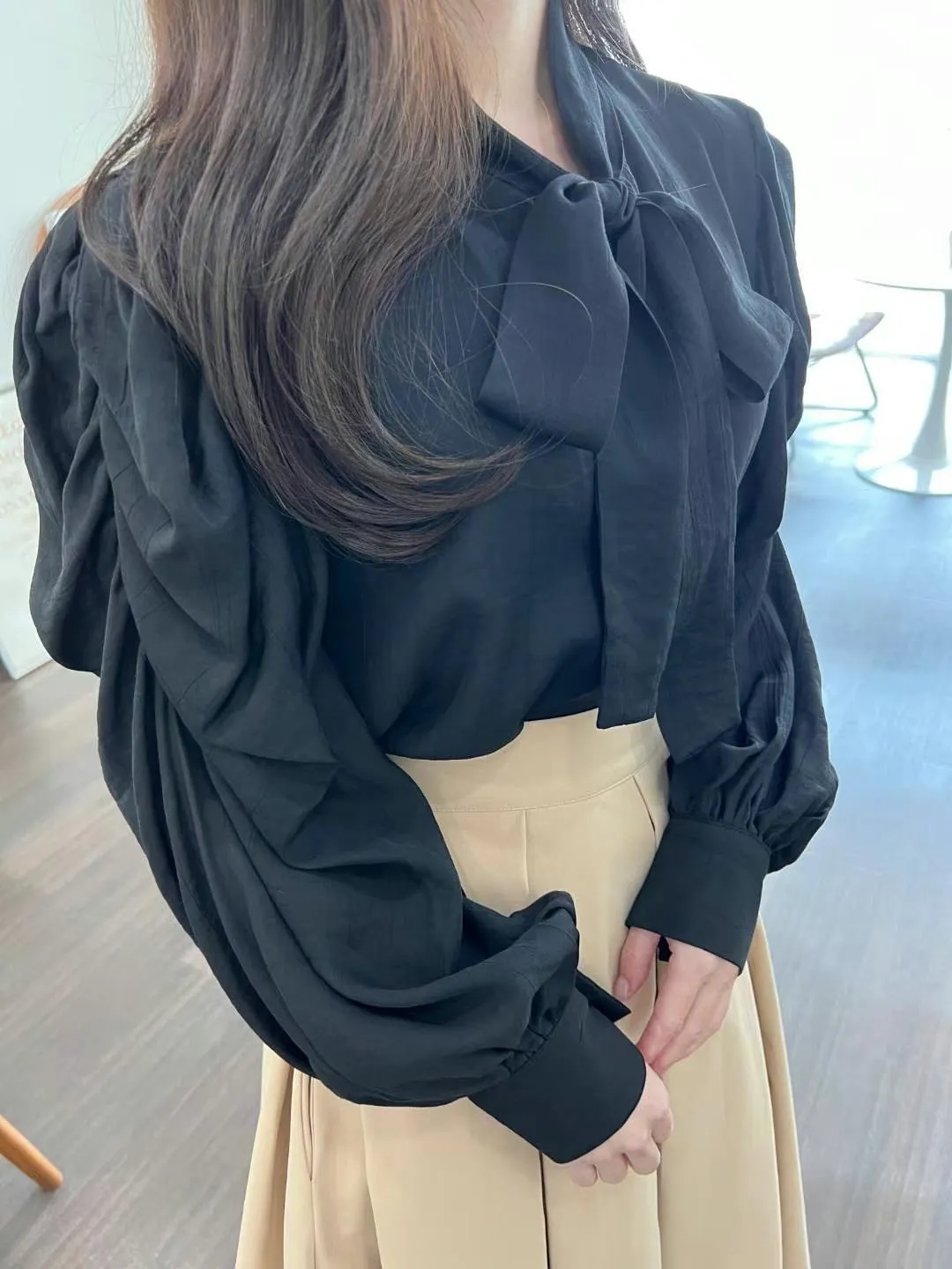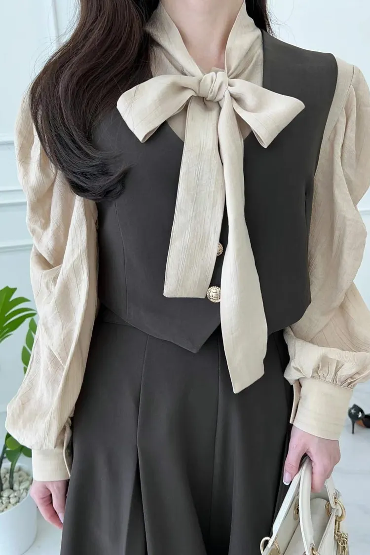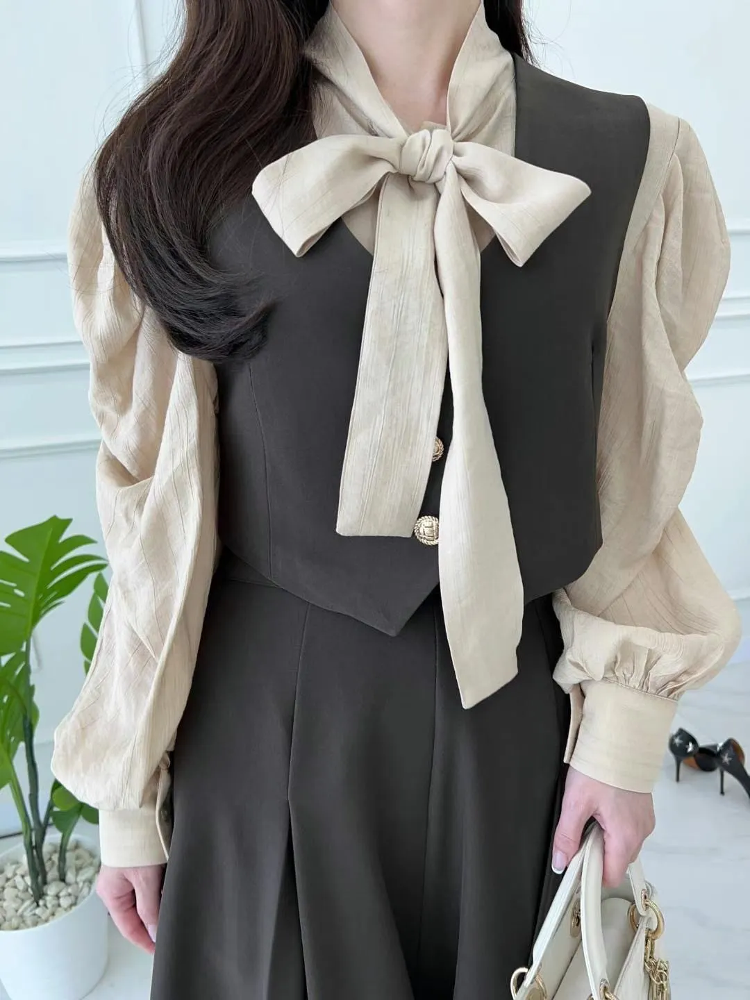 CS049薄款立體設計美袖胸綁帶上衣 粉 黑 奶茶 $820