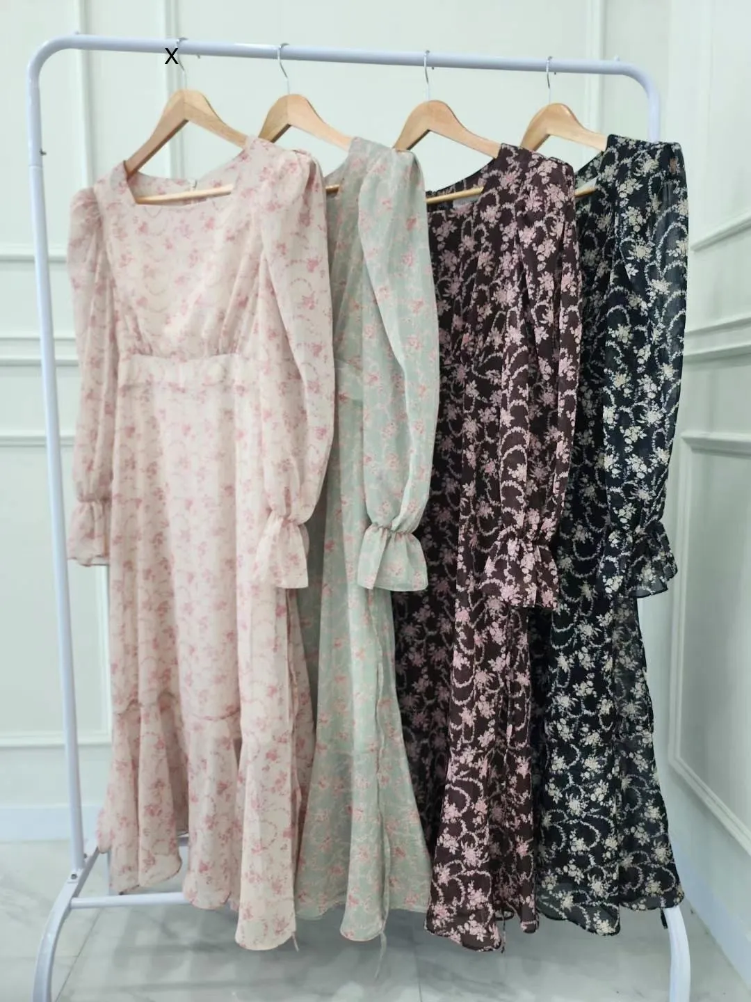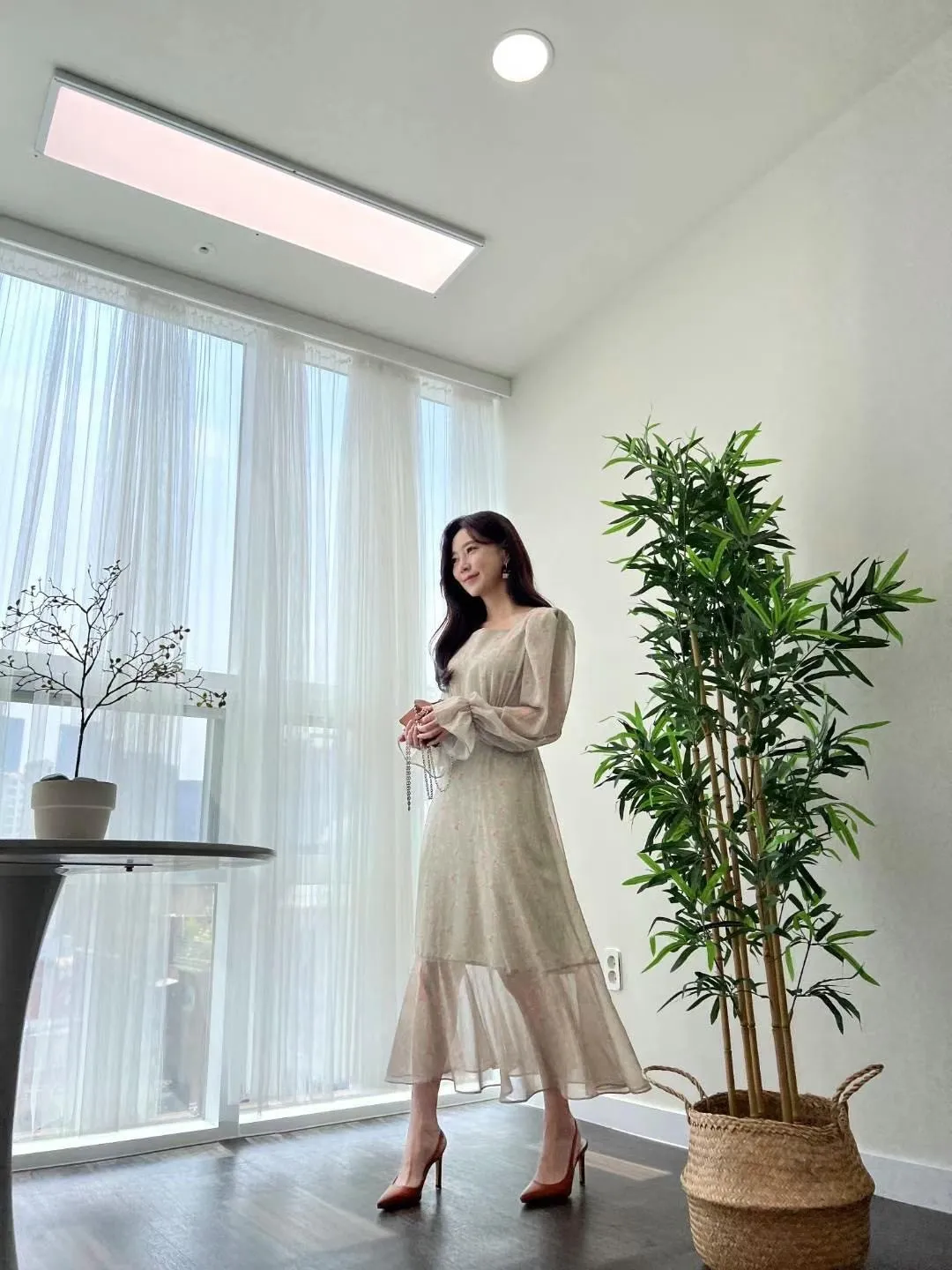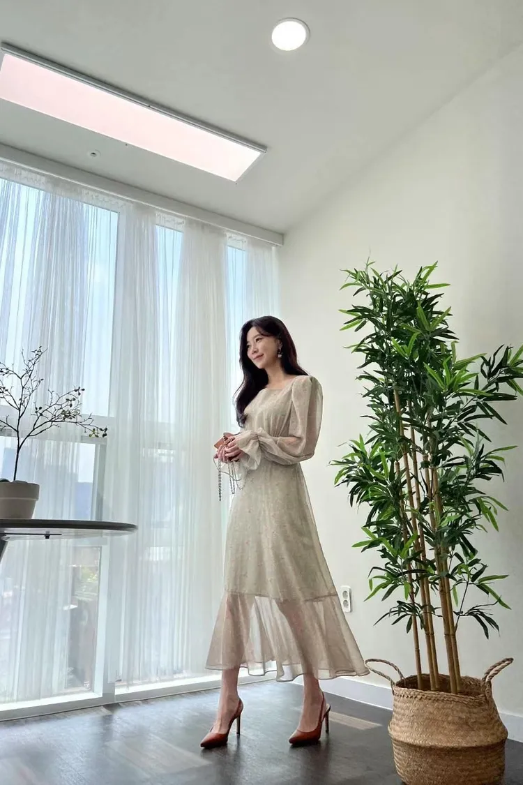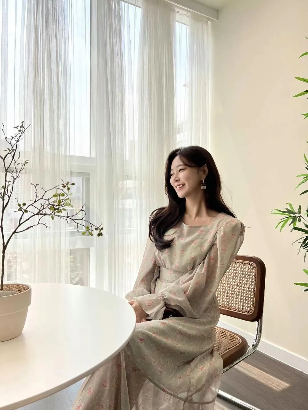 CS050方領溫柔美色調透光感洋裝 綠 咖 黑 $1240