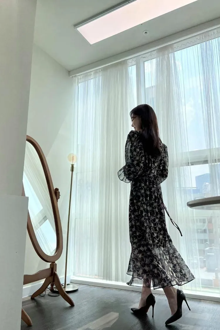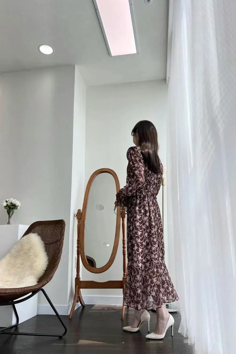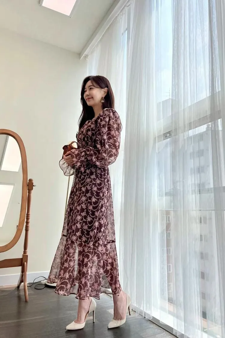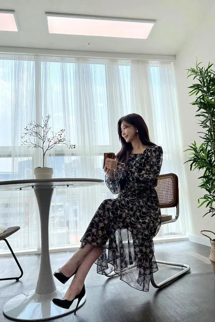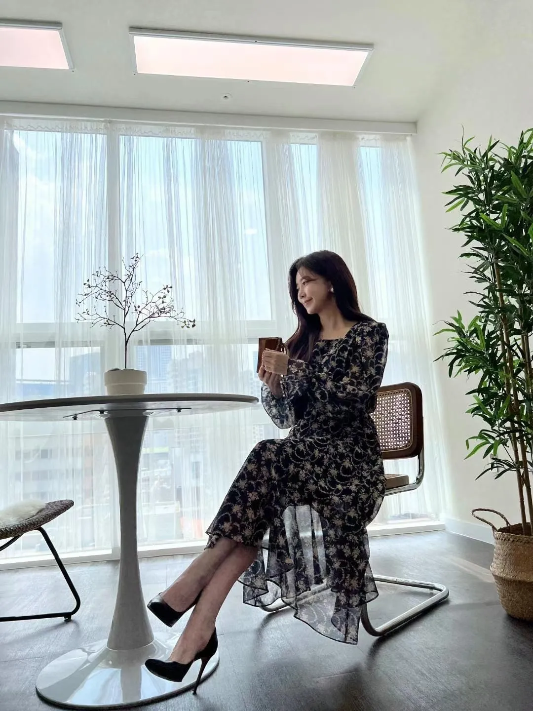 CS050方領溫柔美色調透光感洋裝 綠 咖 黑 $1240