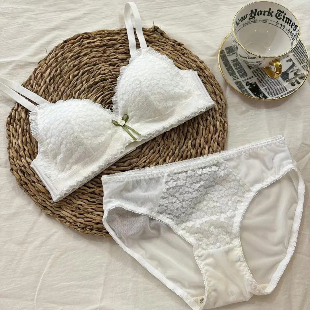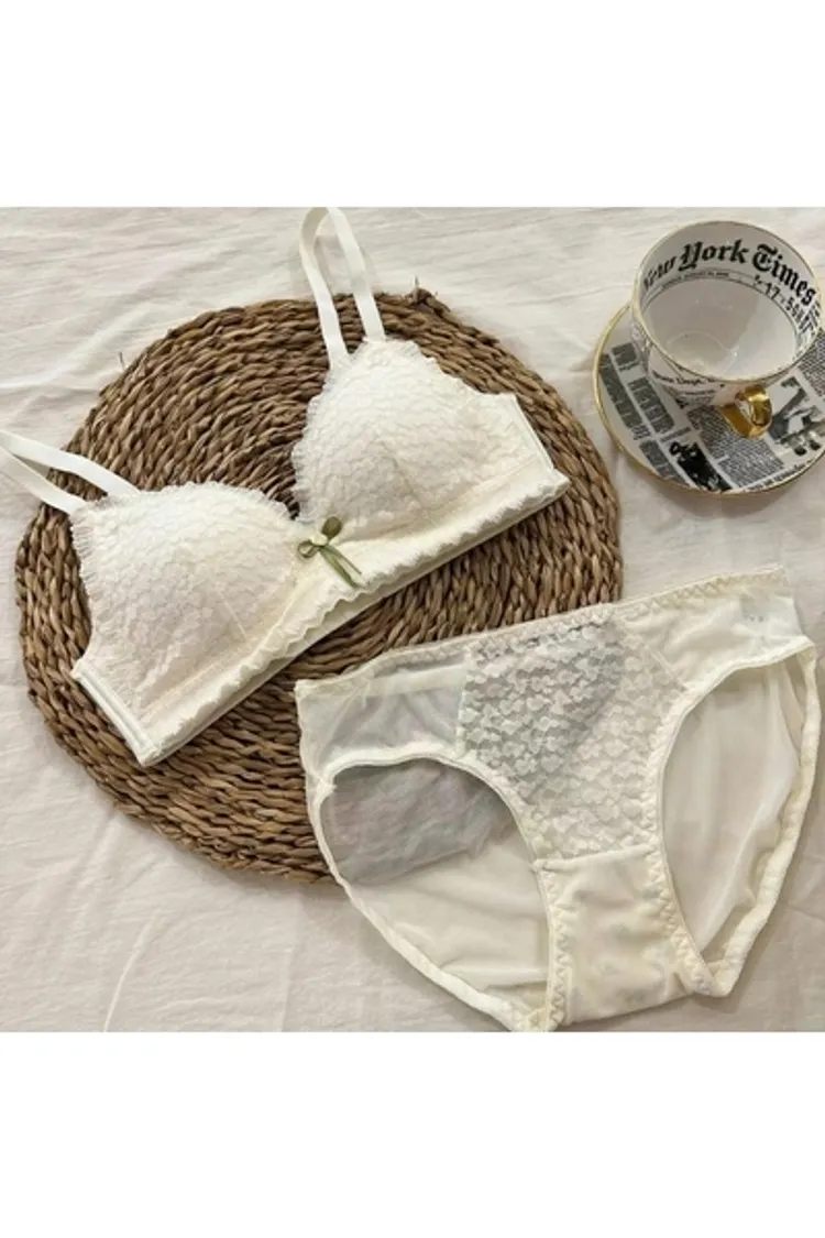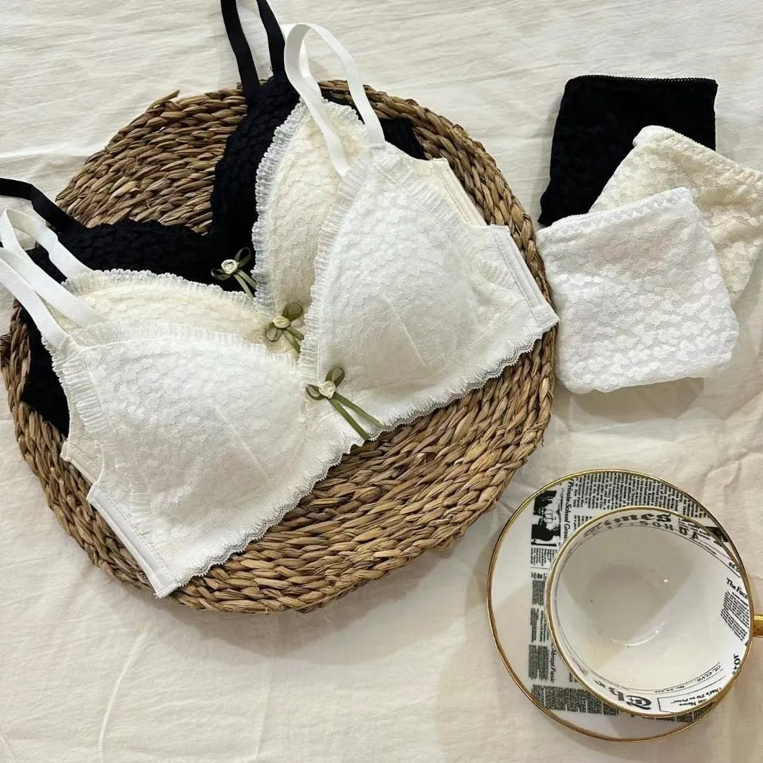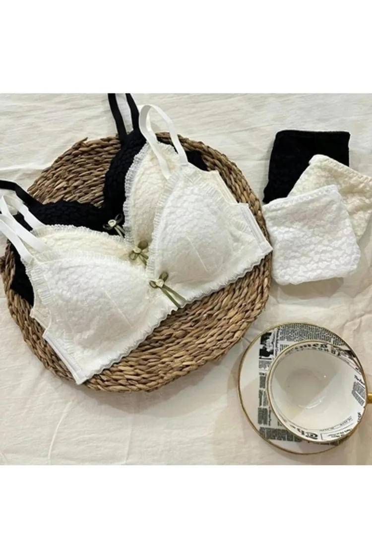 CS056蝴蝶結內衣褲套裝組(內衣+內褲) 白 米 黑 S M L XL $880