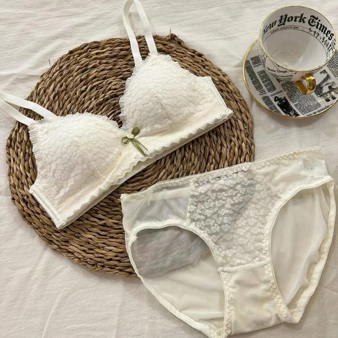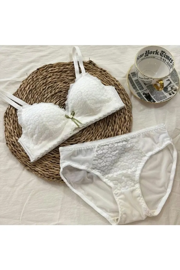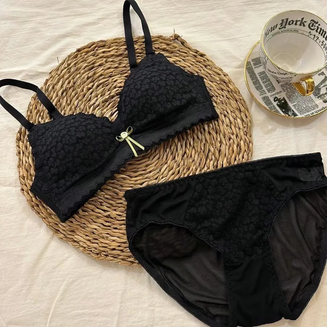 CS056蝴蝶結內衣褲套裝組(內衣+內褲) 白 米 黑 S M L XL $880