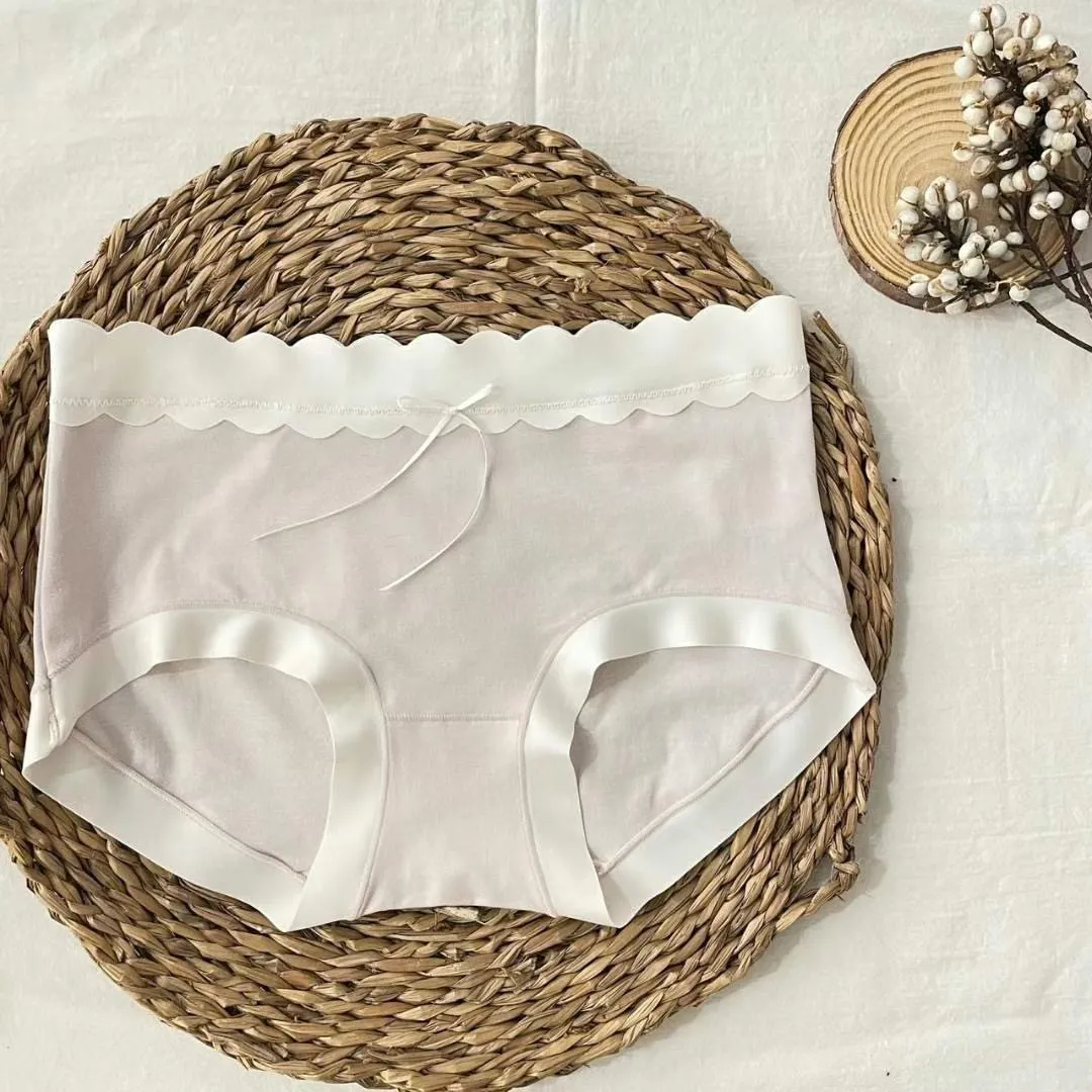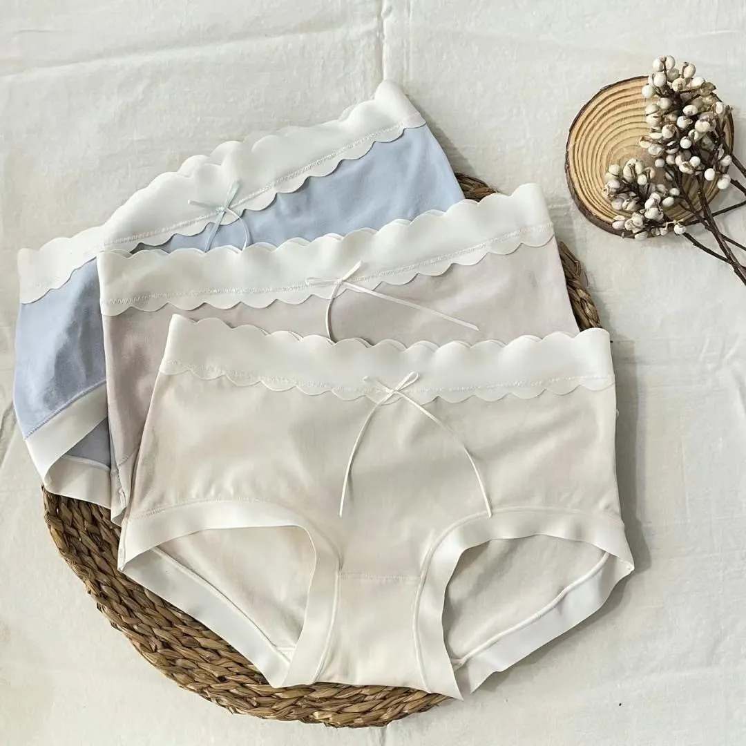 CS067莫代爾棉雲朵滾邊小蝴蝶結內褲 米 粉 藍 $210