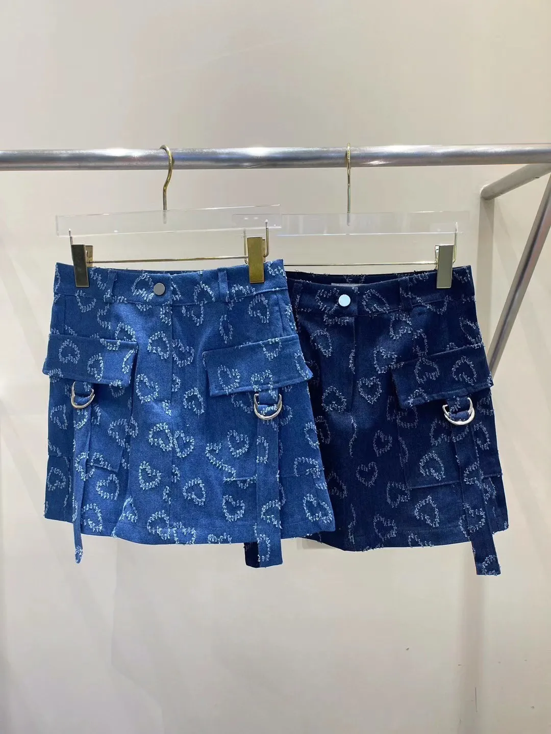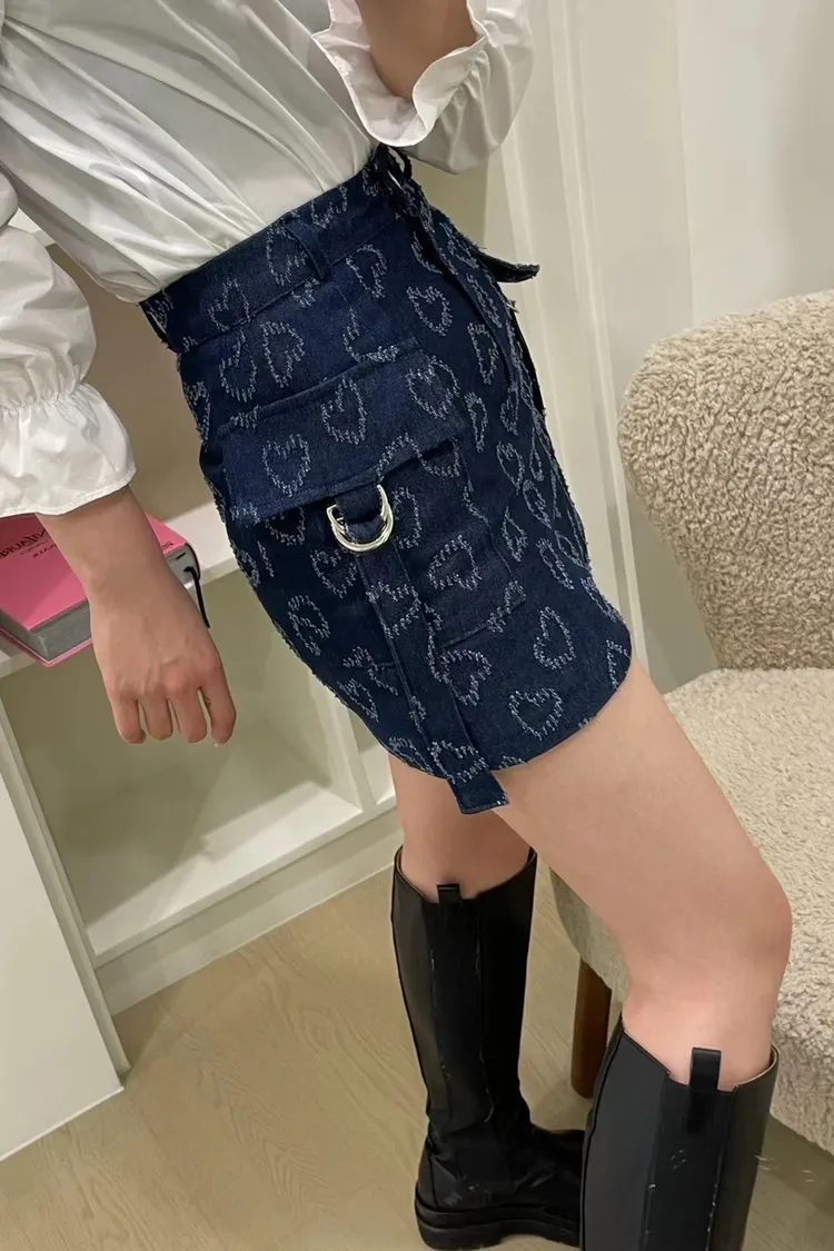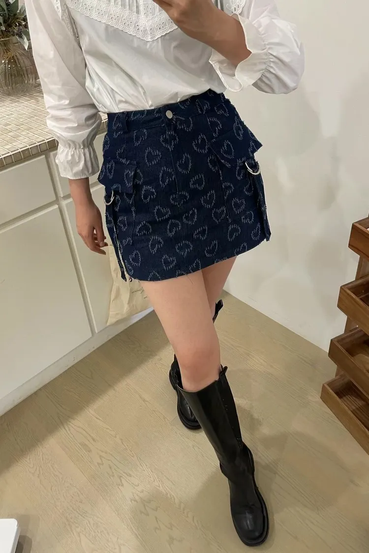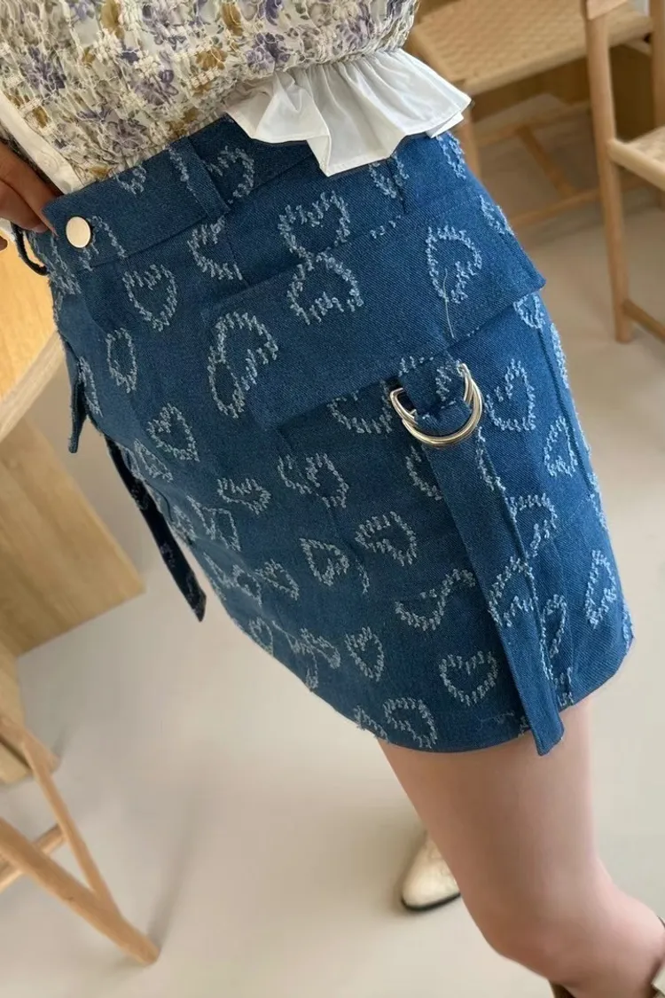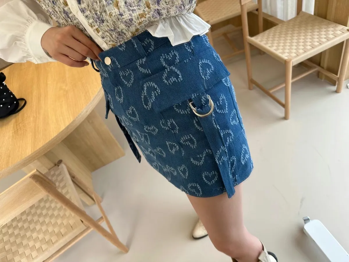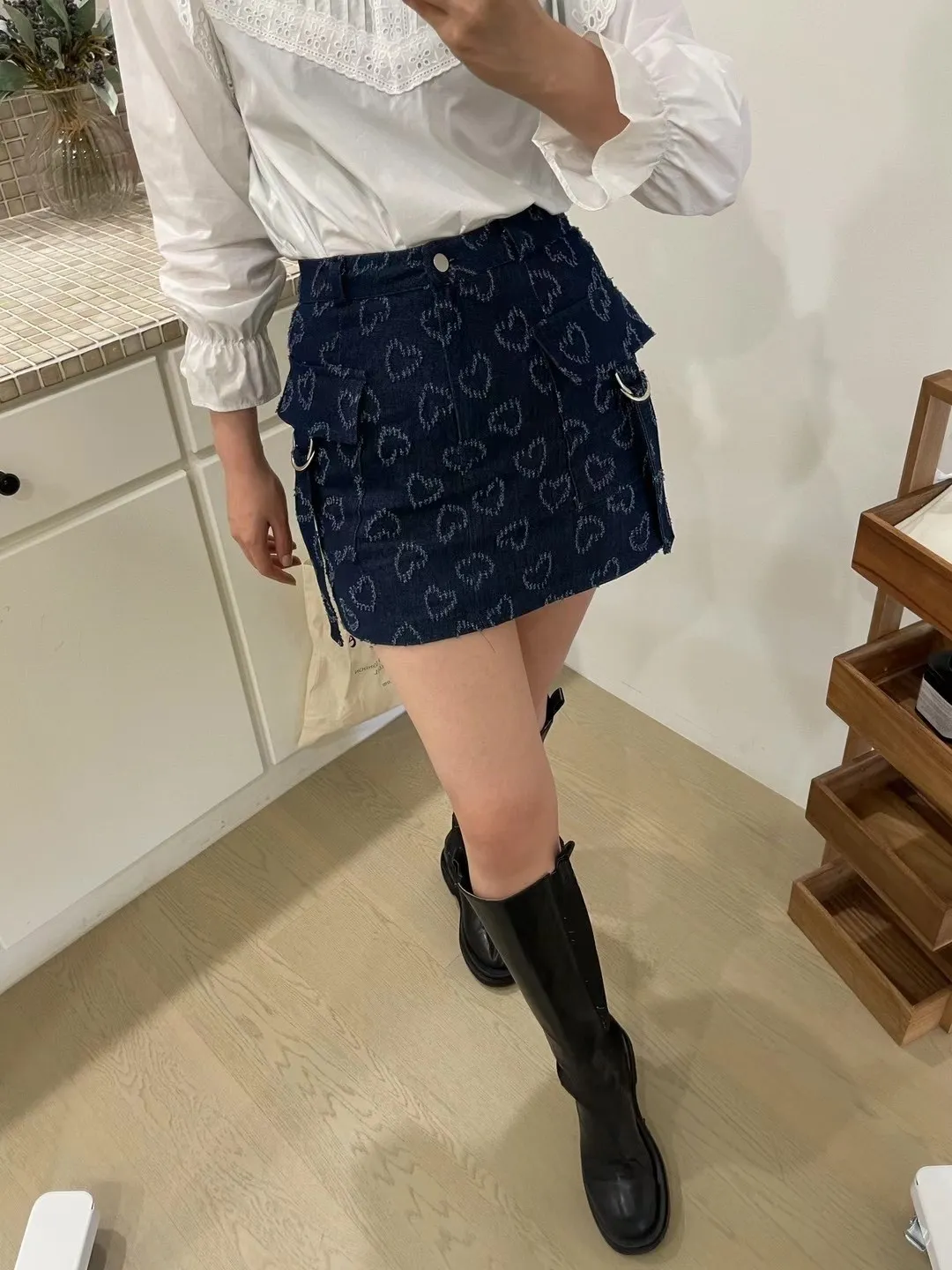 薄款牛仔棉,厚度1.5 有口袋 刺繡精緻愛心
