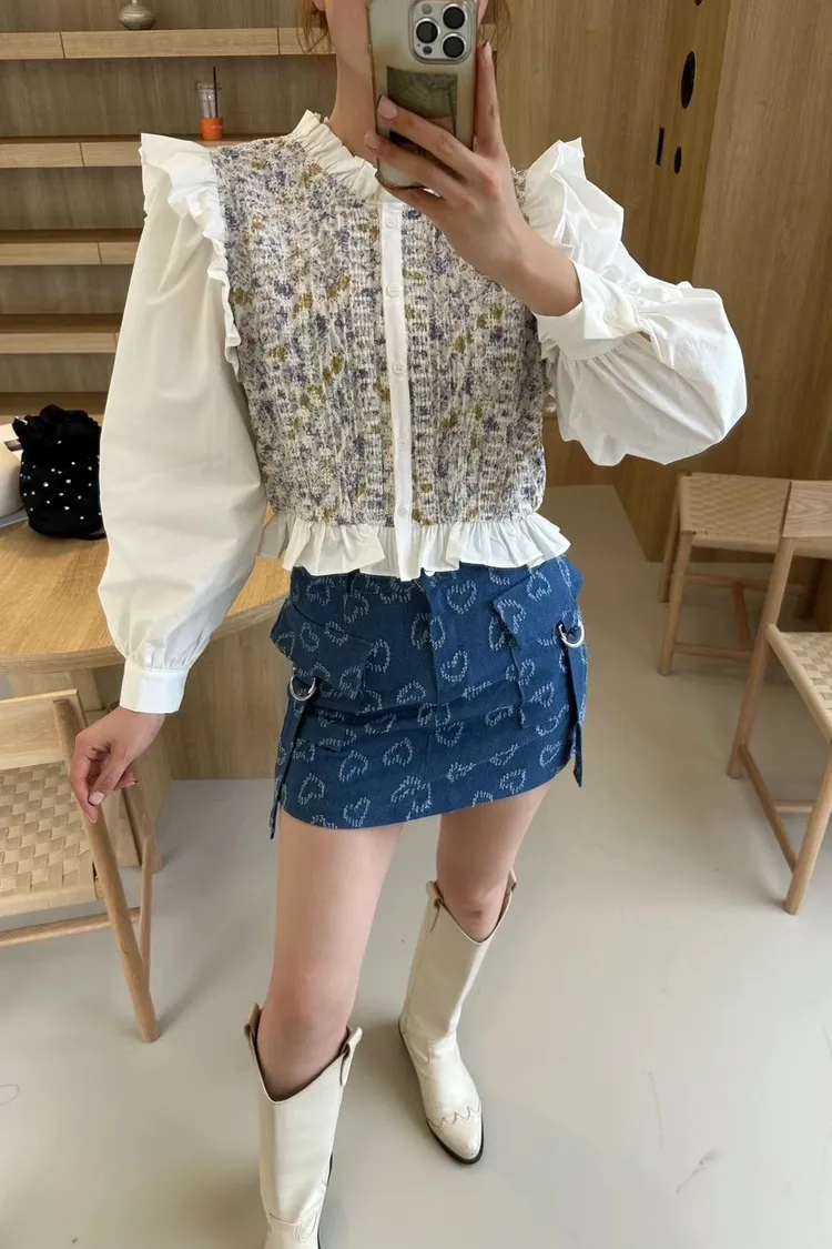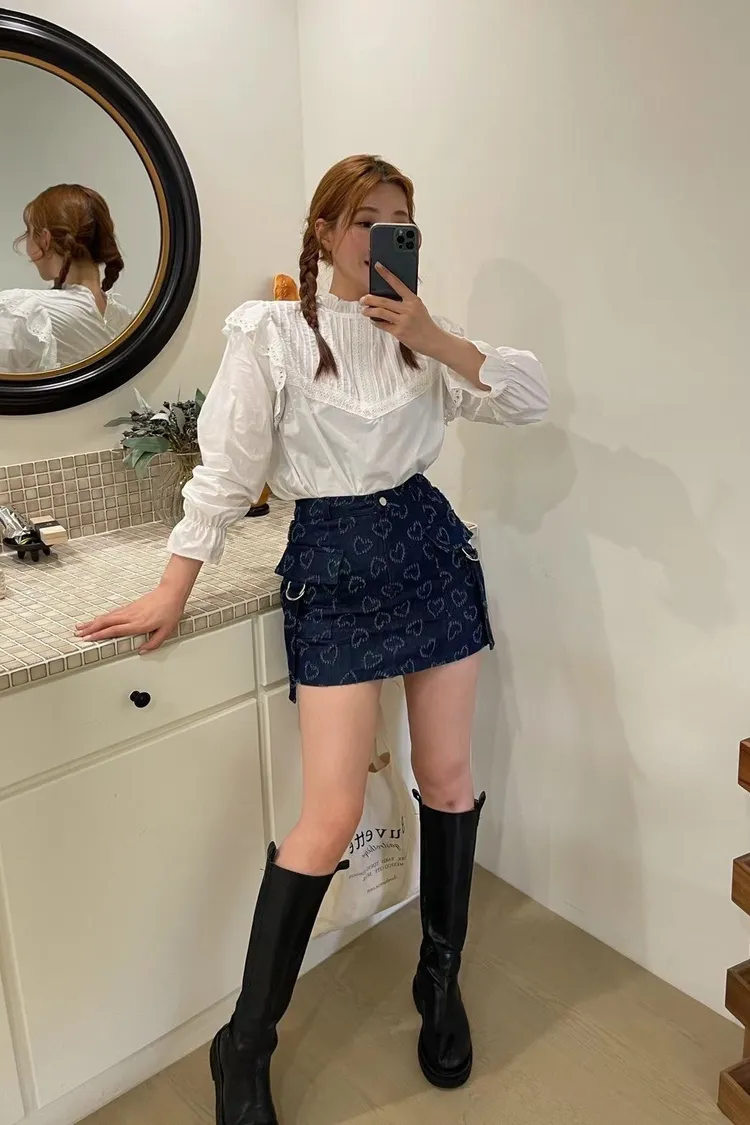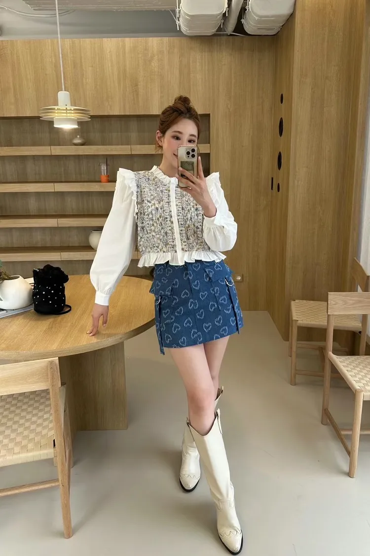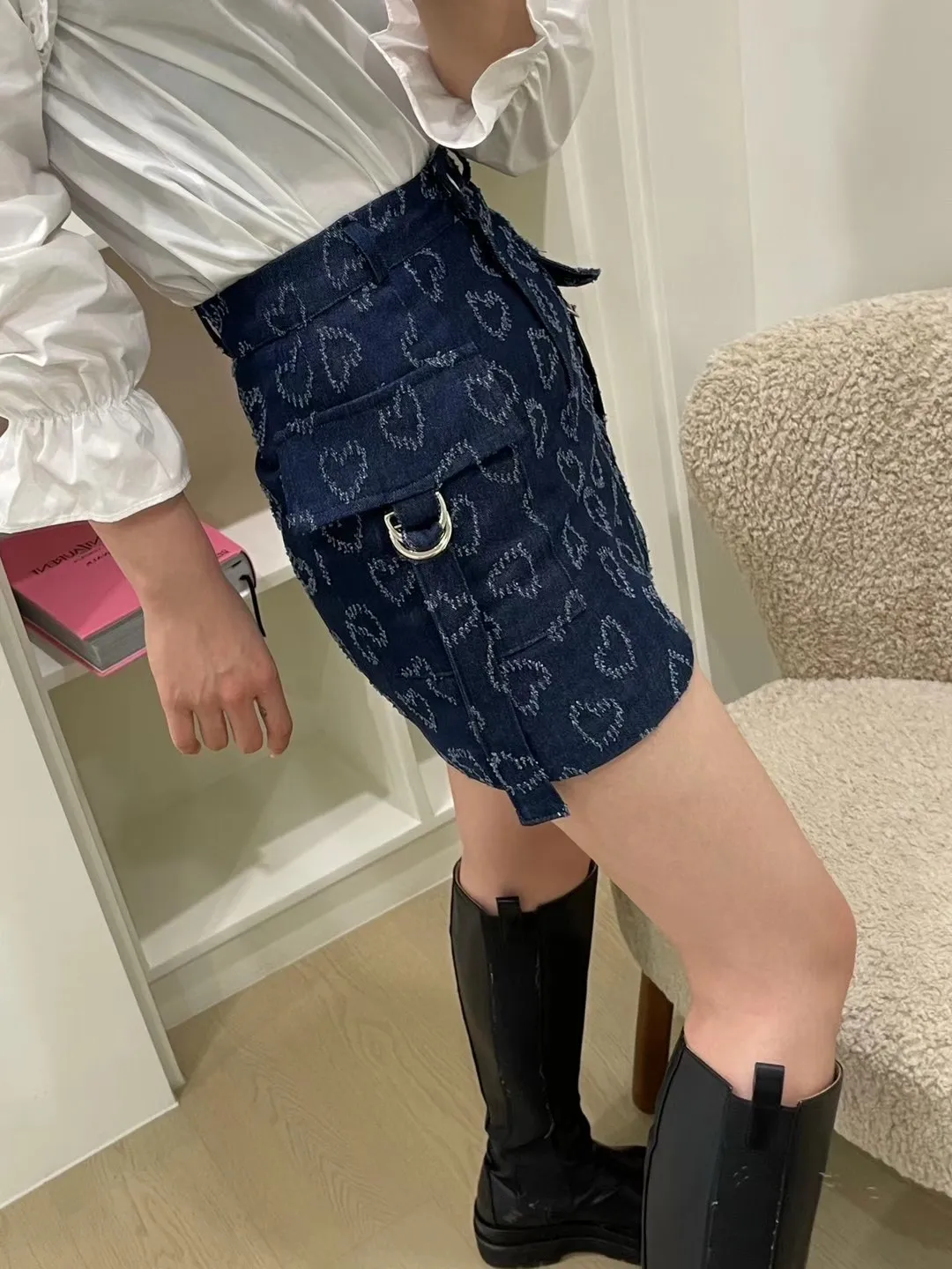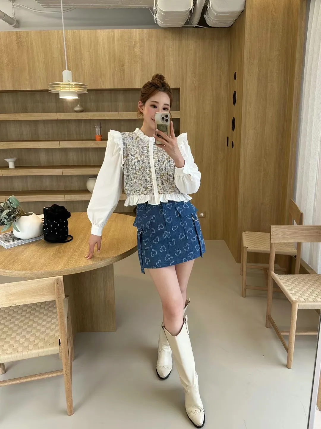 薄款牛仔棉,厚度1.5 有口袋 刺繡精緻愛心