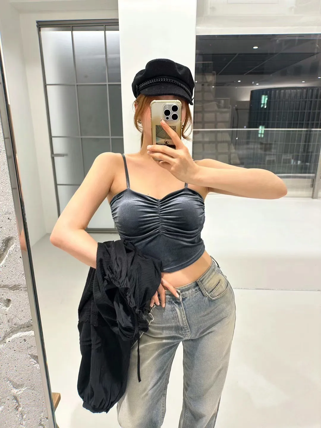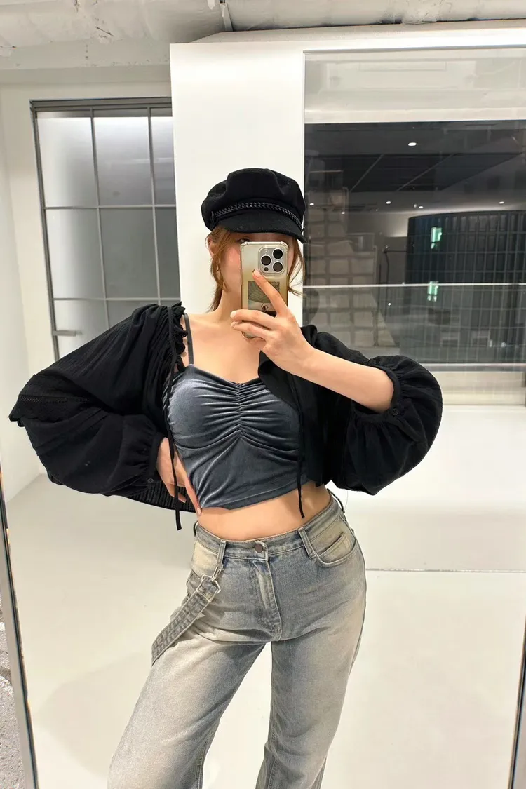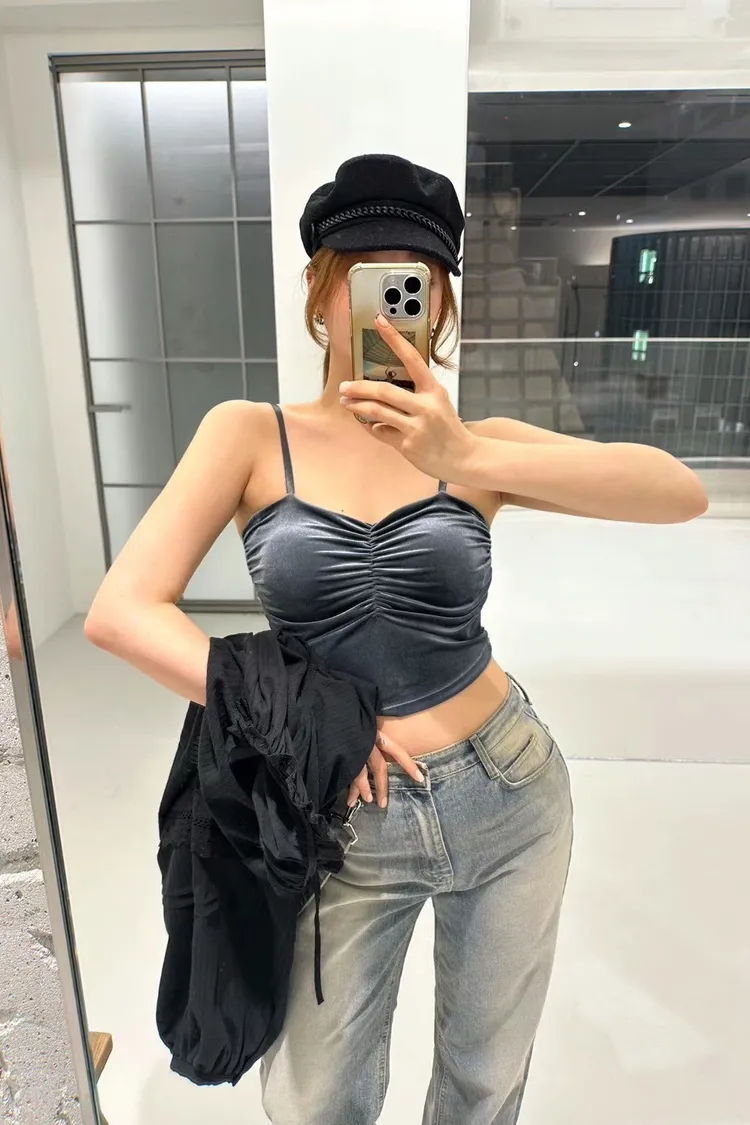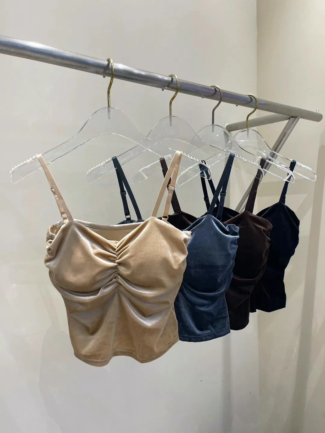 CS082桃心領胸抓皺up絨面光澤小可愛 咖 藍 黑 奶茶 線上價$410 回放價$460